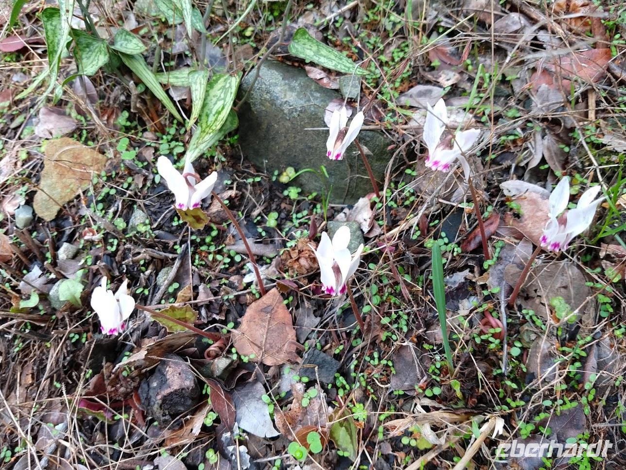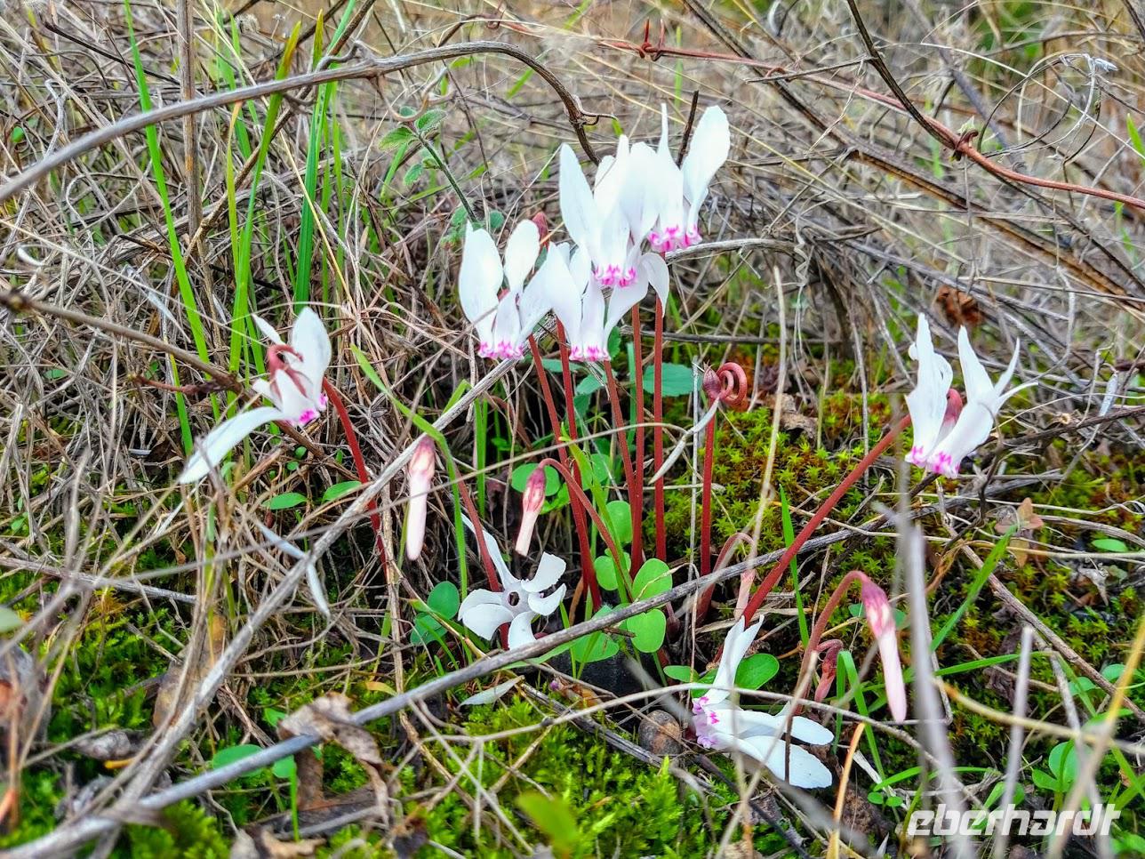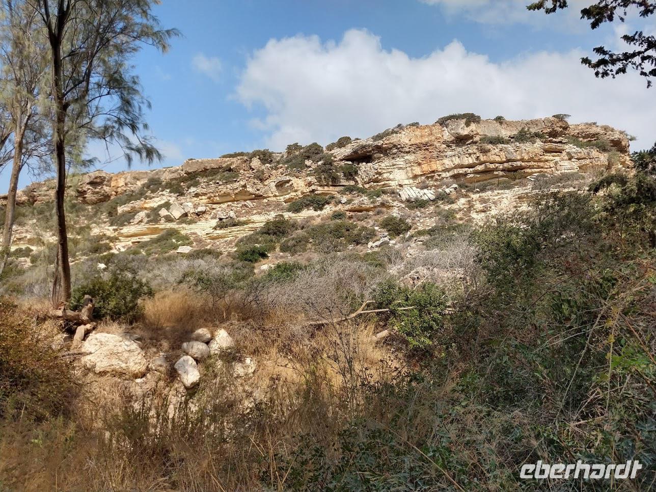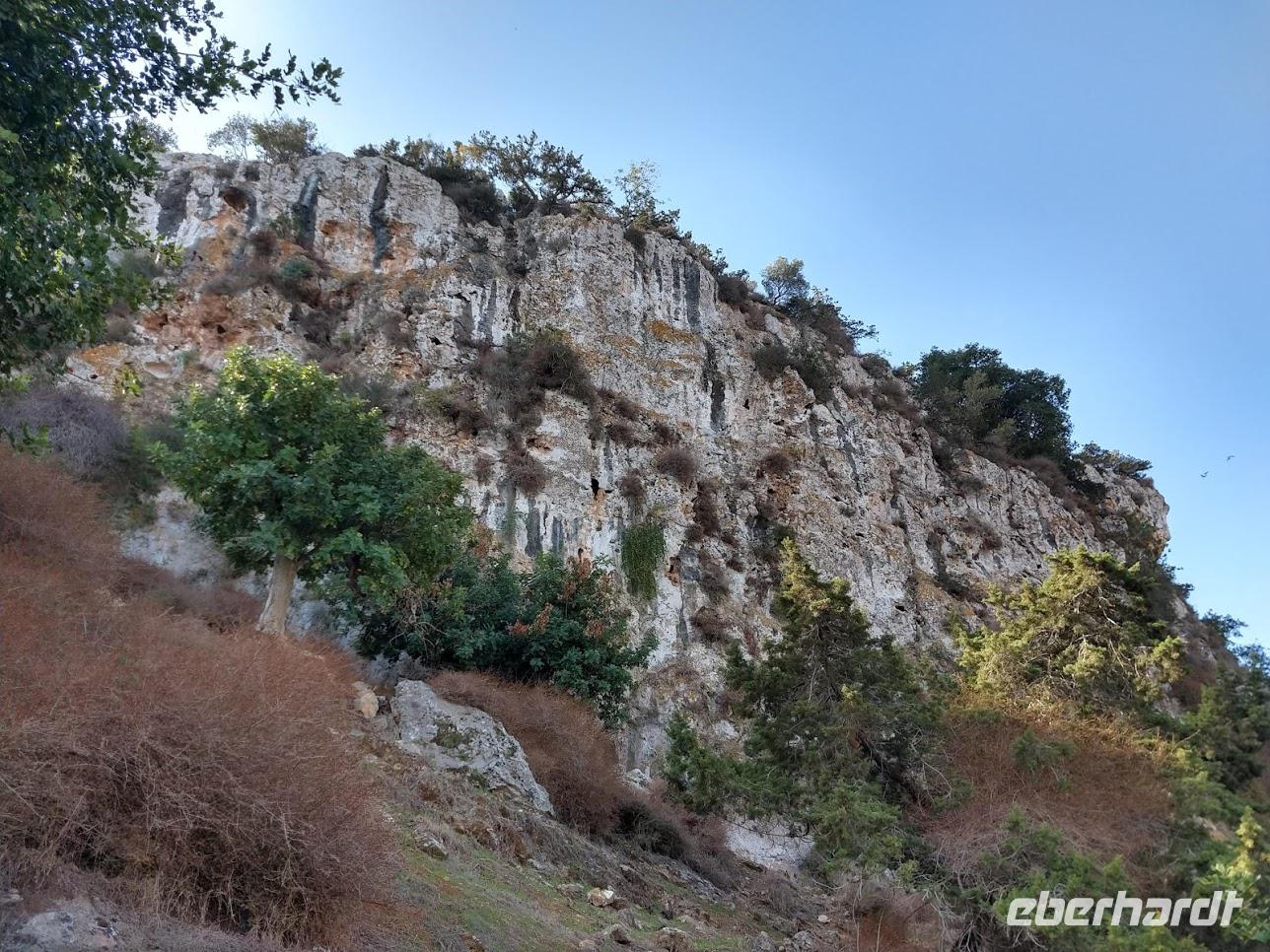 Vom Kalksteinplateau von Laona ist Ausgangspunkt unserer Wanderung. Leider bieten sich im ersten Abschnitt durch das trübe Wetter keine perfekten Aussichten auf die eigentlich nahe Küste. Erst durch Plantagen, dann auf alten Ziegenpfaden nähern wir uns Zyperns bekanntestem Canyon. Der Schluchtbereich ist dann auch sehr interessant. Sowohl die Felsformationen, die Tiefblicke in die Schlucht und als auch die Pflanzenwelt sind sehenswert. Wir identifizieren Herbstblausterne und blühende Meereszwiebeln.