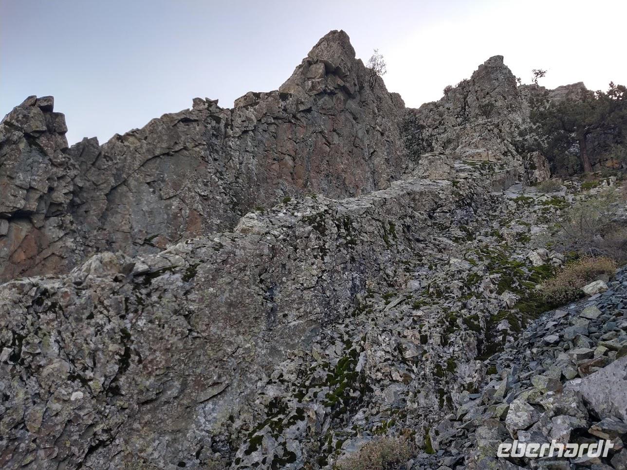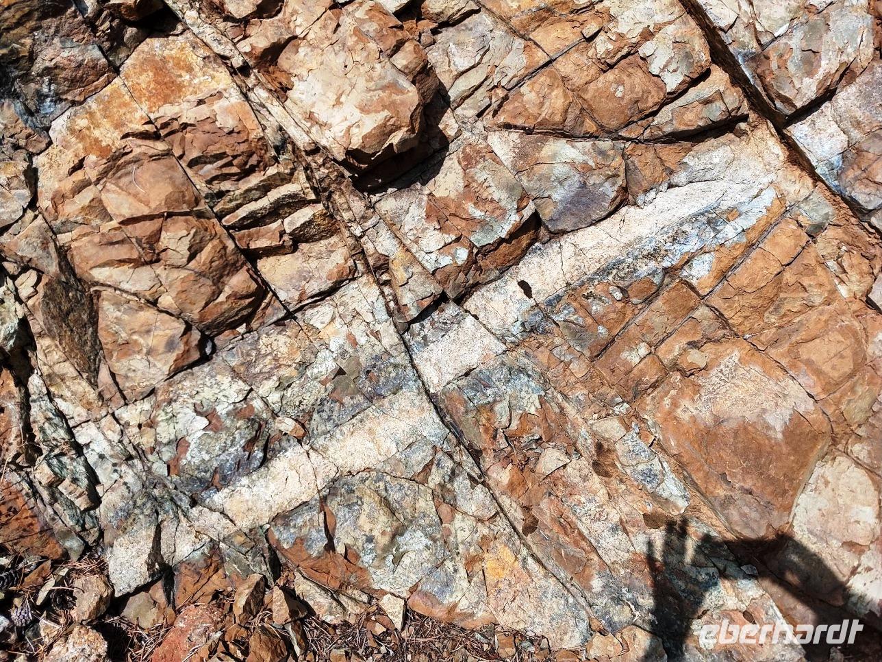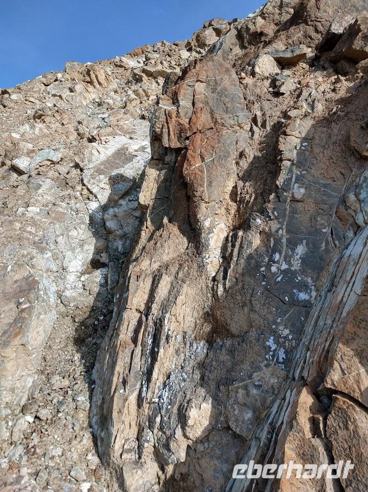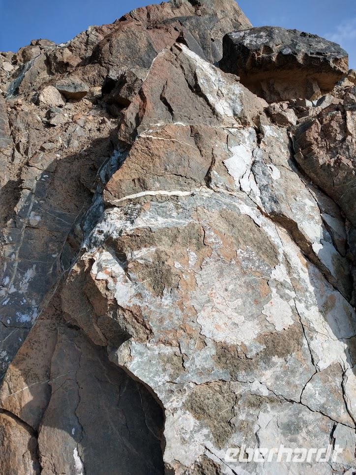Nach dem Frühstück stiegen wir wieder bei herrlichem Wetter in unseren Bus, der uns auf den östlichen Teil des Madaris hinaufbrachte. Auf dem Geotrail ging es nun abwechselnd leicht bergauf- und bergab um das Bergmassiv mit seinen schönen geologischen Formationen. Dazu zählen zum Beispiel die vulkanische Teufelsmauer, aber auch interessante Kliffs aus verschiedenen Sedimentgesteinen, die der Vulkanismus bei der Entstehung der Insel aus den Tiefen des Meeres an die Oberfläche beförderte.
