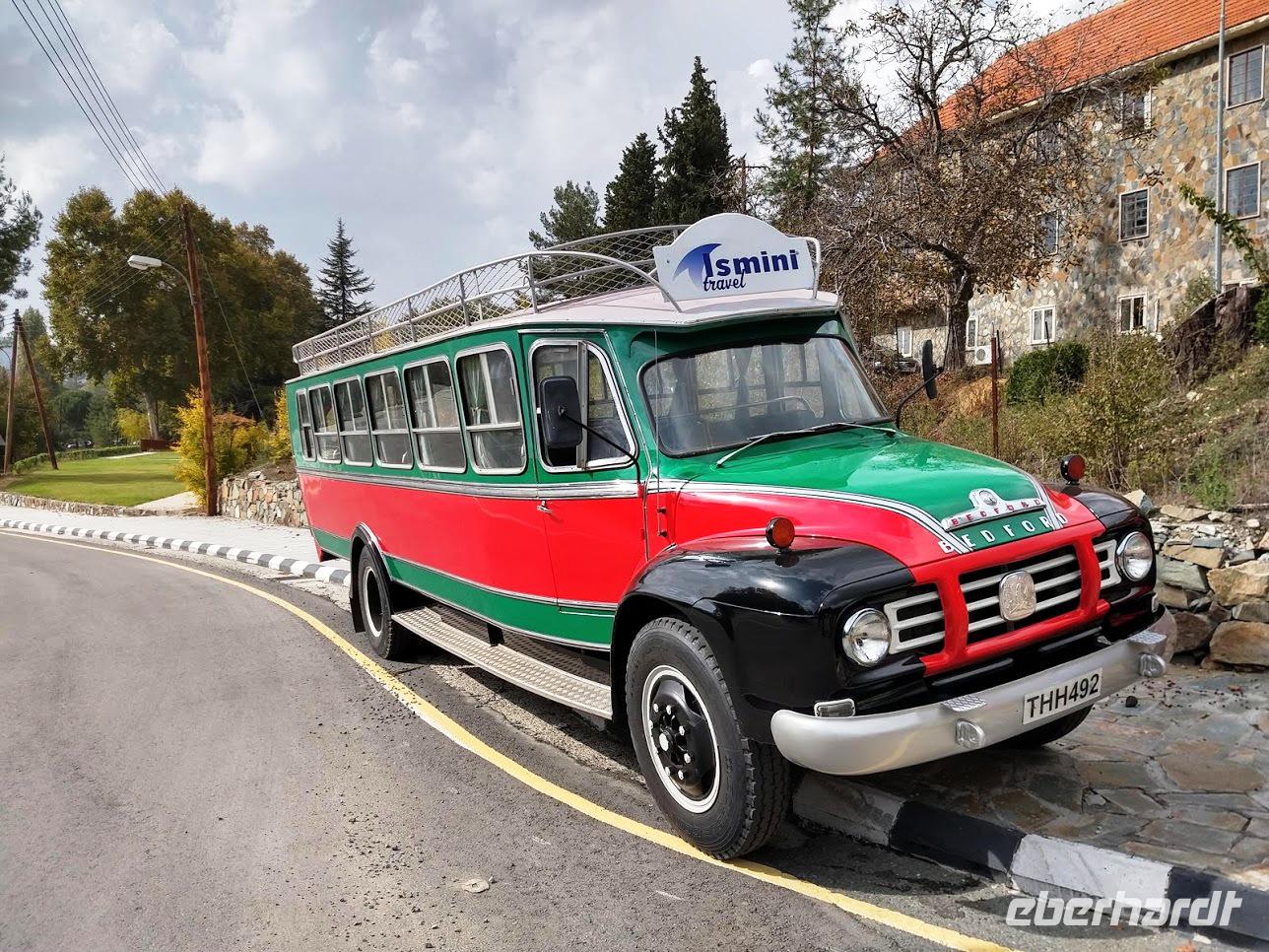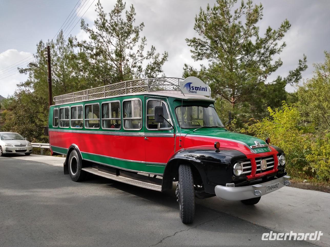 Unser Bus hatte ein Batterieproblem, deshalb holte uns ein toller Oldtimerbus ab.