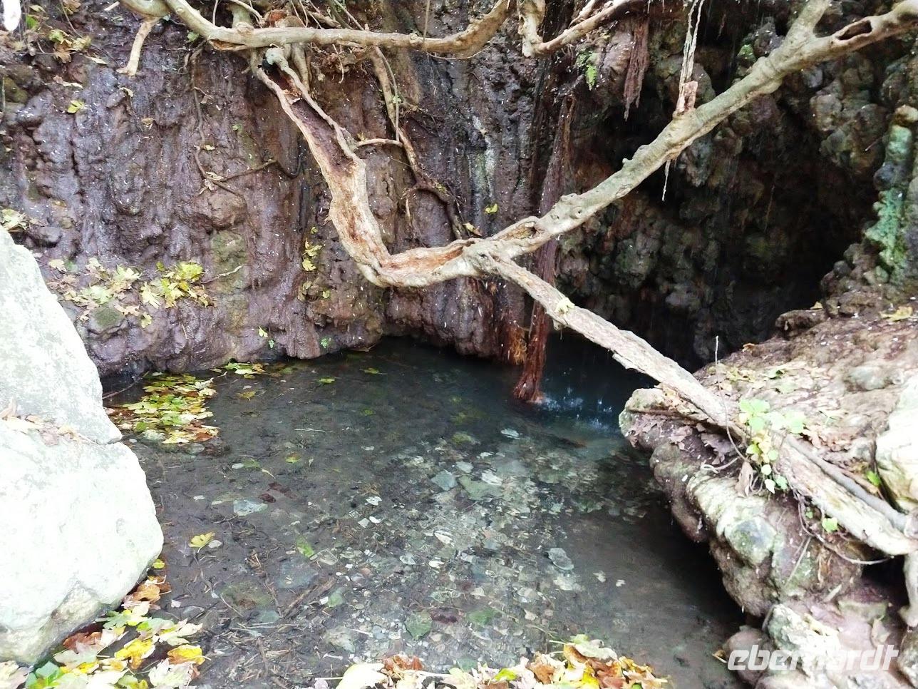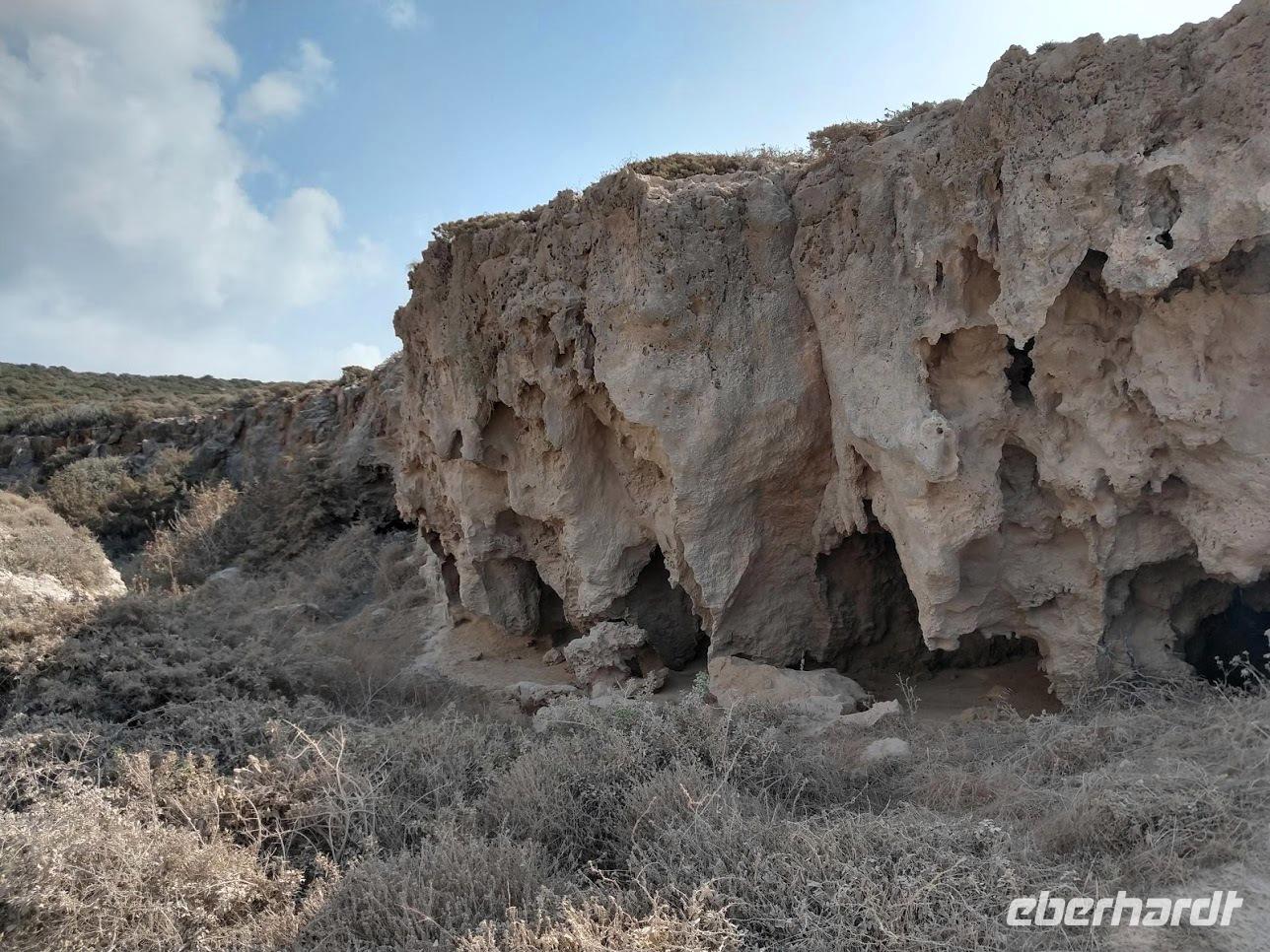Nach dem Abstieg erfolgt der Rückweg auf einem Pfad oberhalb der Küste bis zu den Bädern der Aphrodite, Karsthöhlen, die stets reichlich Wasser führen.