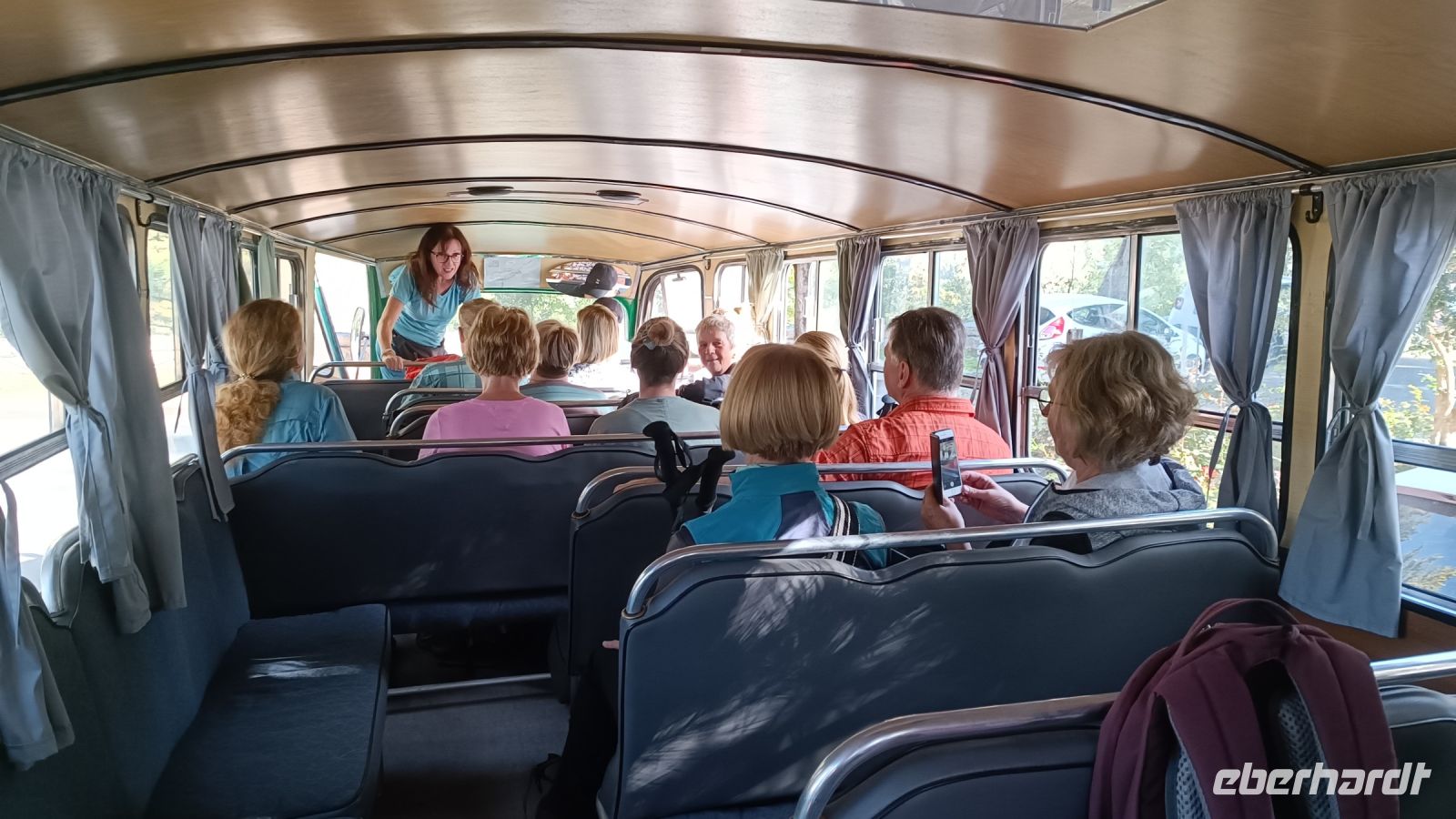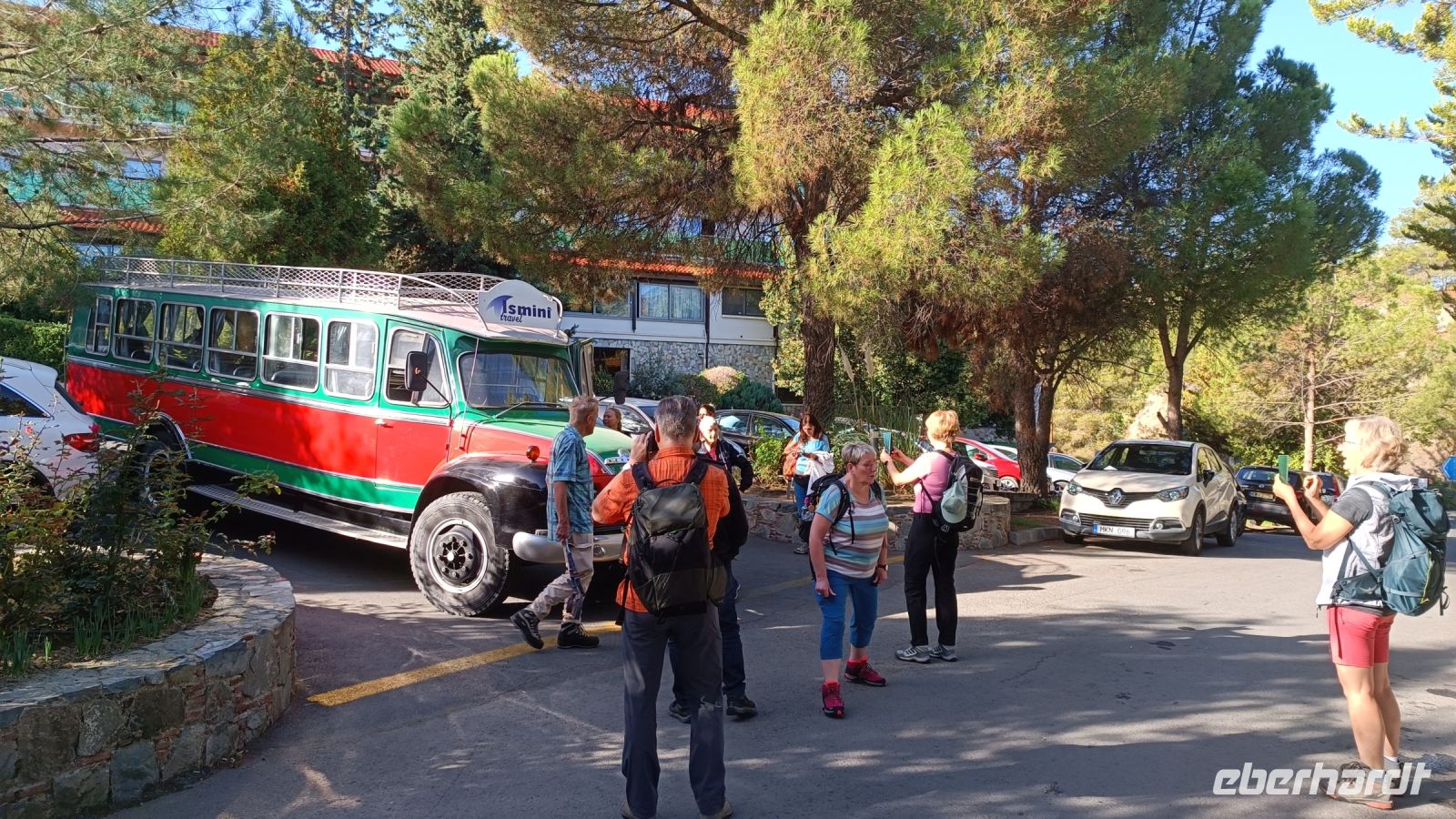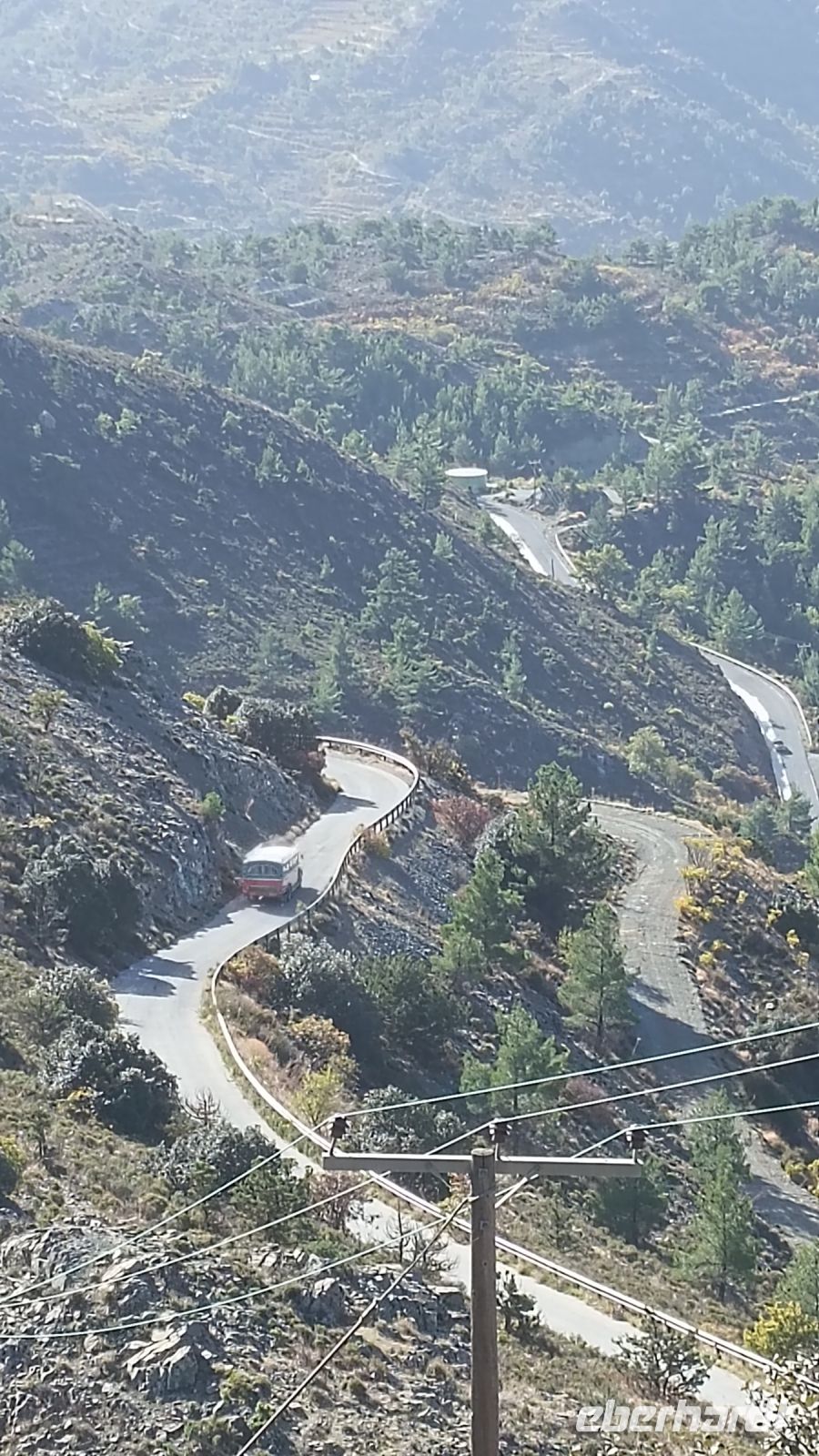 Gleich zu Beginn des Tages erwartete uns der erste Höhepunkt des Tages. Eine Fahrt im Oldtimerbus in eine der einsamsten Gegenden Zyperns. Manchmal hatte unser 6 Zylinder Bedford Bus, vom 8.4.1979, schon seine Mühe die steilen Bergstraßen hinauf auf 1600m zu bewältigen. Wer im hinteren Teil des Busses saß, konnte sich vom Komfort der herrlich harten Federung überzeugen.
