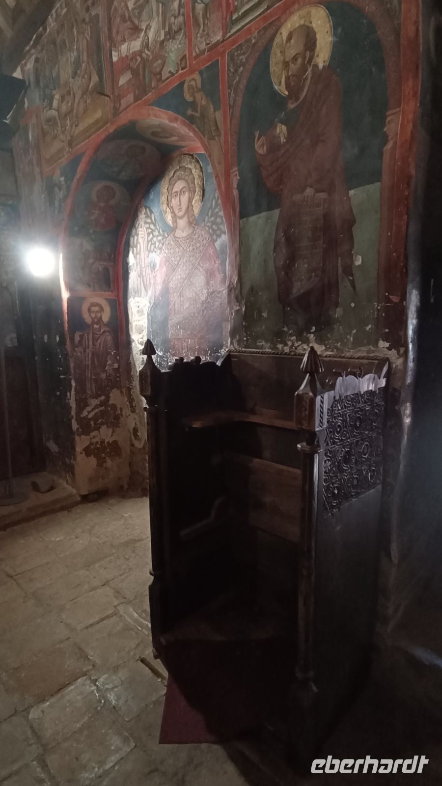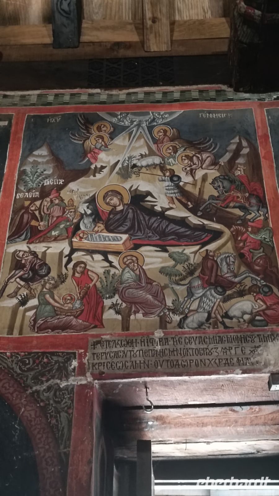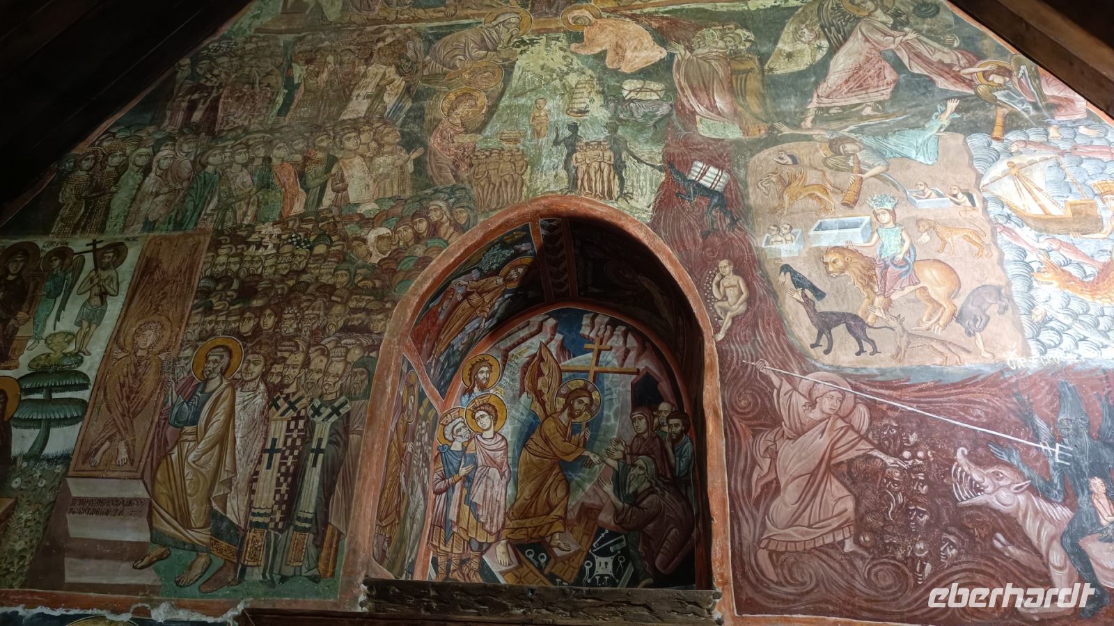 Wir erreichten unser erstes Ziel, die Scheunendachkirche aus 1493. Die Fresken innen, original erhalten und in einem erstaunlich guten Zustand, als wären sie eben erst frisch gemalt worden.