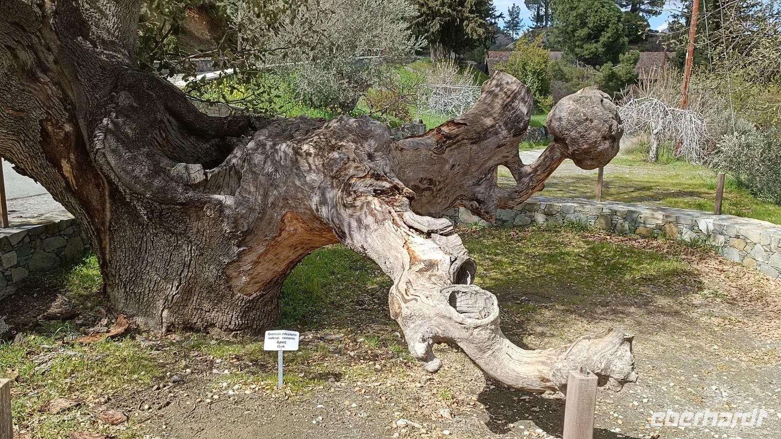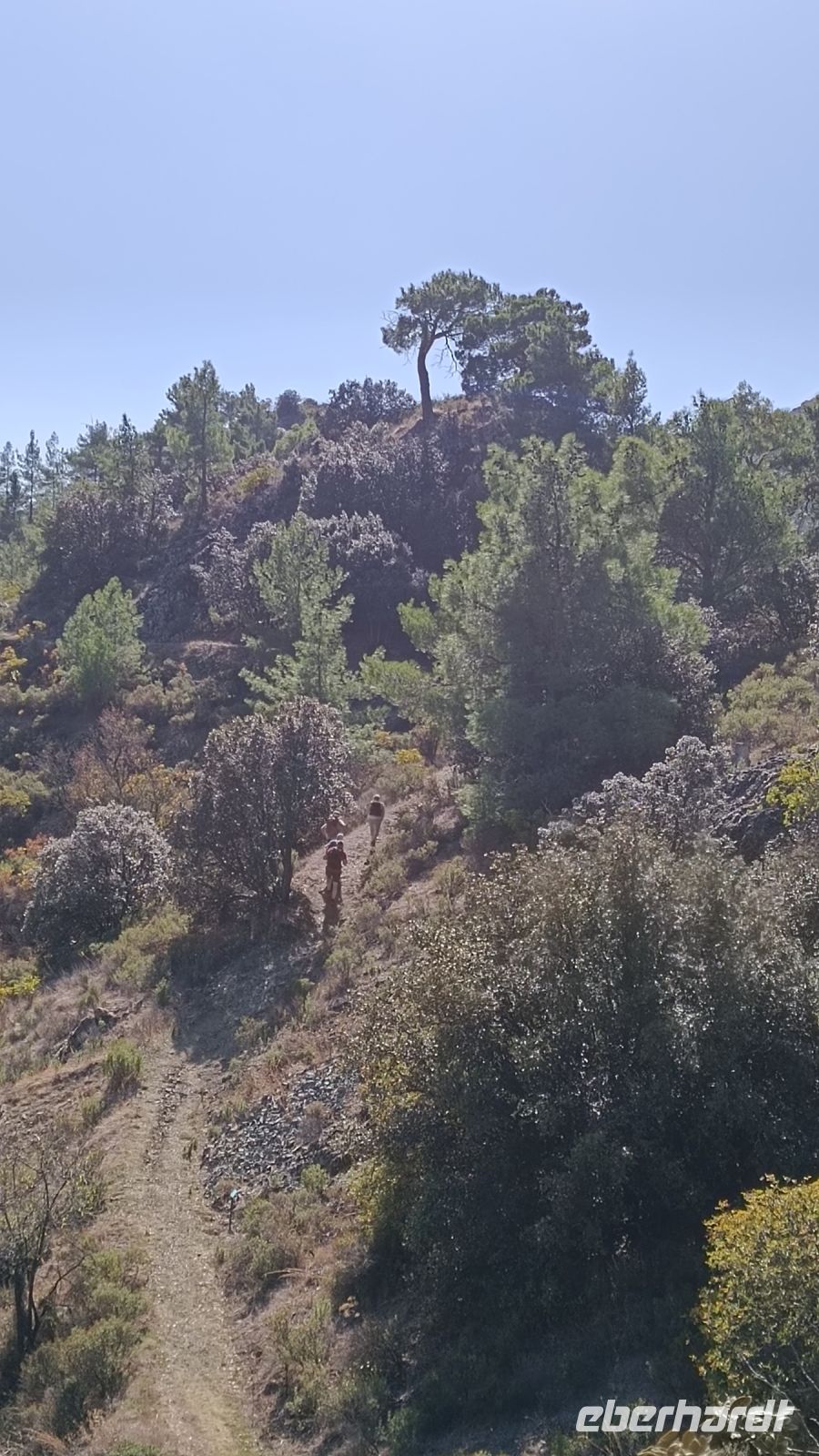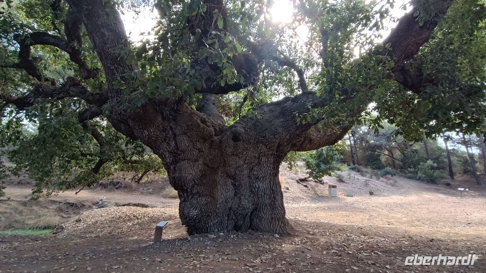 Unser Wanderweg führte uns heute entlang der Bezirkgrenze Limasol im Süden und Nikosia im Norden um den Berg Madari herum. Die reiche Vegetation setzt sich aus Schwarzkiefer, Aleppo Pinien, zyprischen Zedern und Goldeichensträucher zusammen. Wie Protagonisten eines Märchens konnte man sich fühlen, als wir den „Zauberwald“ aus dichten Goldeichensträucher durchquerten. Abermillionen von Flechten hingen wie Tropfsteine von den Ästen und in der Sonne leuchteten die Blätter an der Unterseite der Eichen goldgelb, was zur Namensgebung führte und uns in eine andere Welt eintauchen ließ.