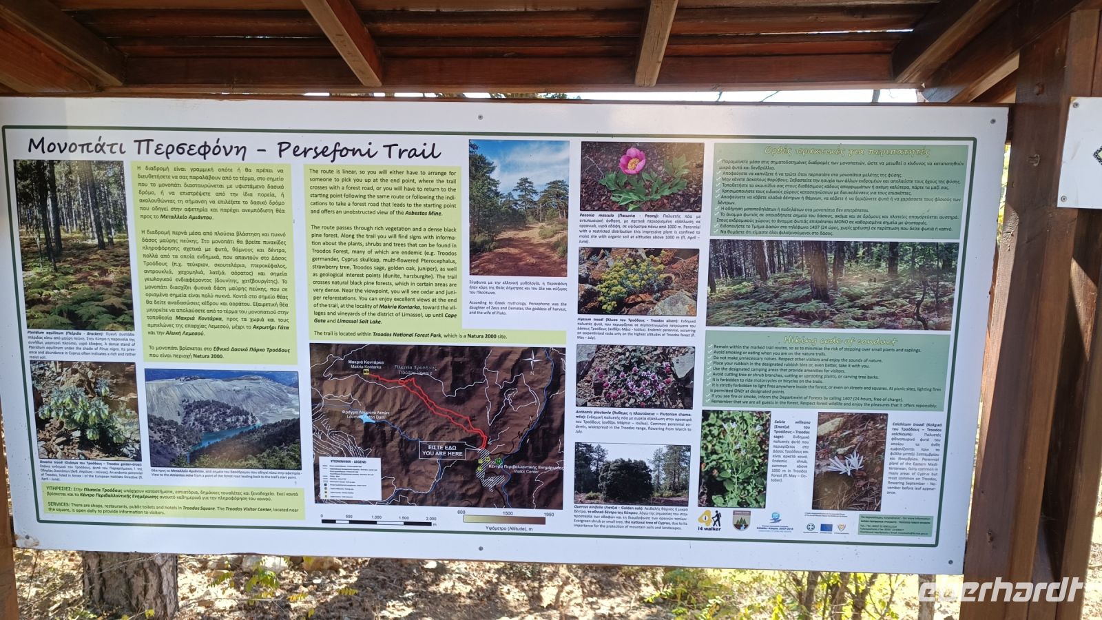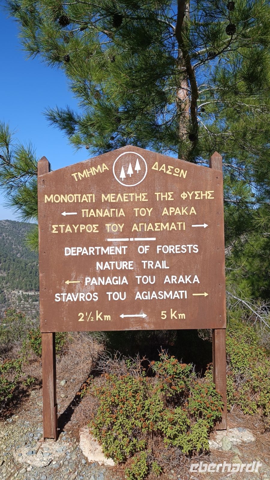 Unser Weg begann auf 1700 m Höhe, der nach der Frühlingsgöttin Persephoni benannt ist. Ein leichter Wanderweg durch Pinien, Kiefern und Zedernwälder. Hinweistafeln erklärten die einzelnen Baumarten.