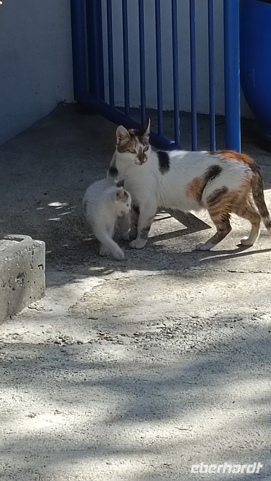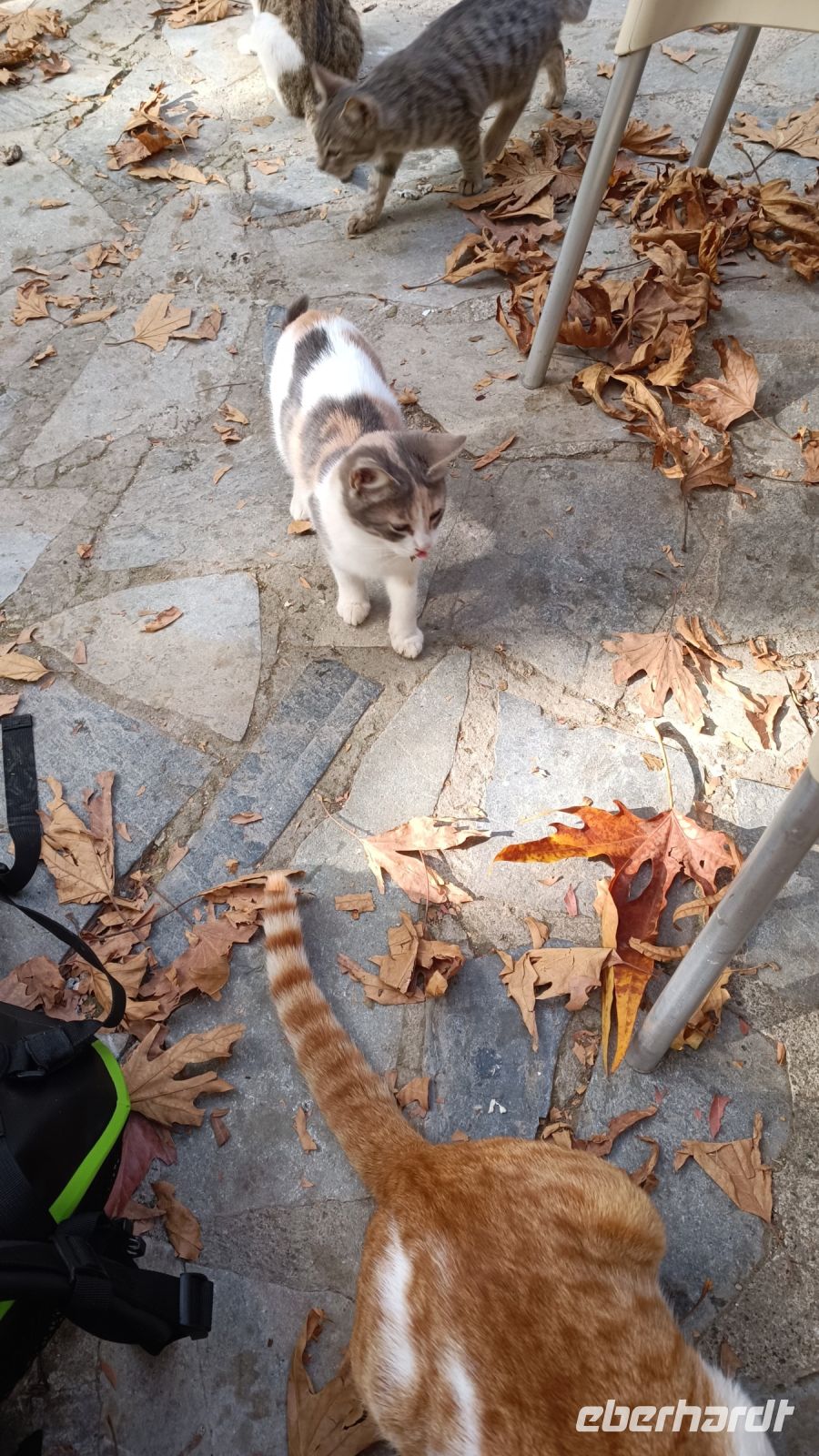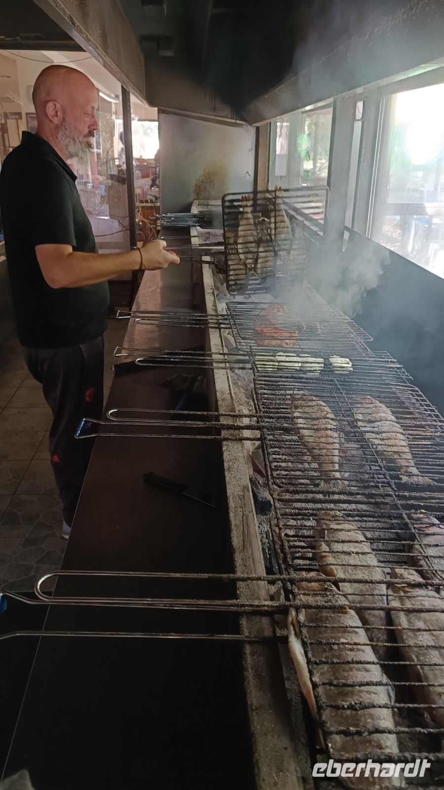 Hier wurden wir bereits erwartet. Heute gab den obligatorischen Salat mit Zaziki ohne Knoblauch als Vorspeise, Als Hauptspeise gefüllte Tomate, Zucchini und Aubergine mit Pommes und als Nachspeise frische Mandarinen aus dem Garten des Lokalbesitzers mit einem kleinen Stück Kuchen.