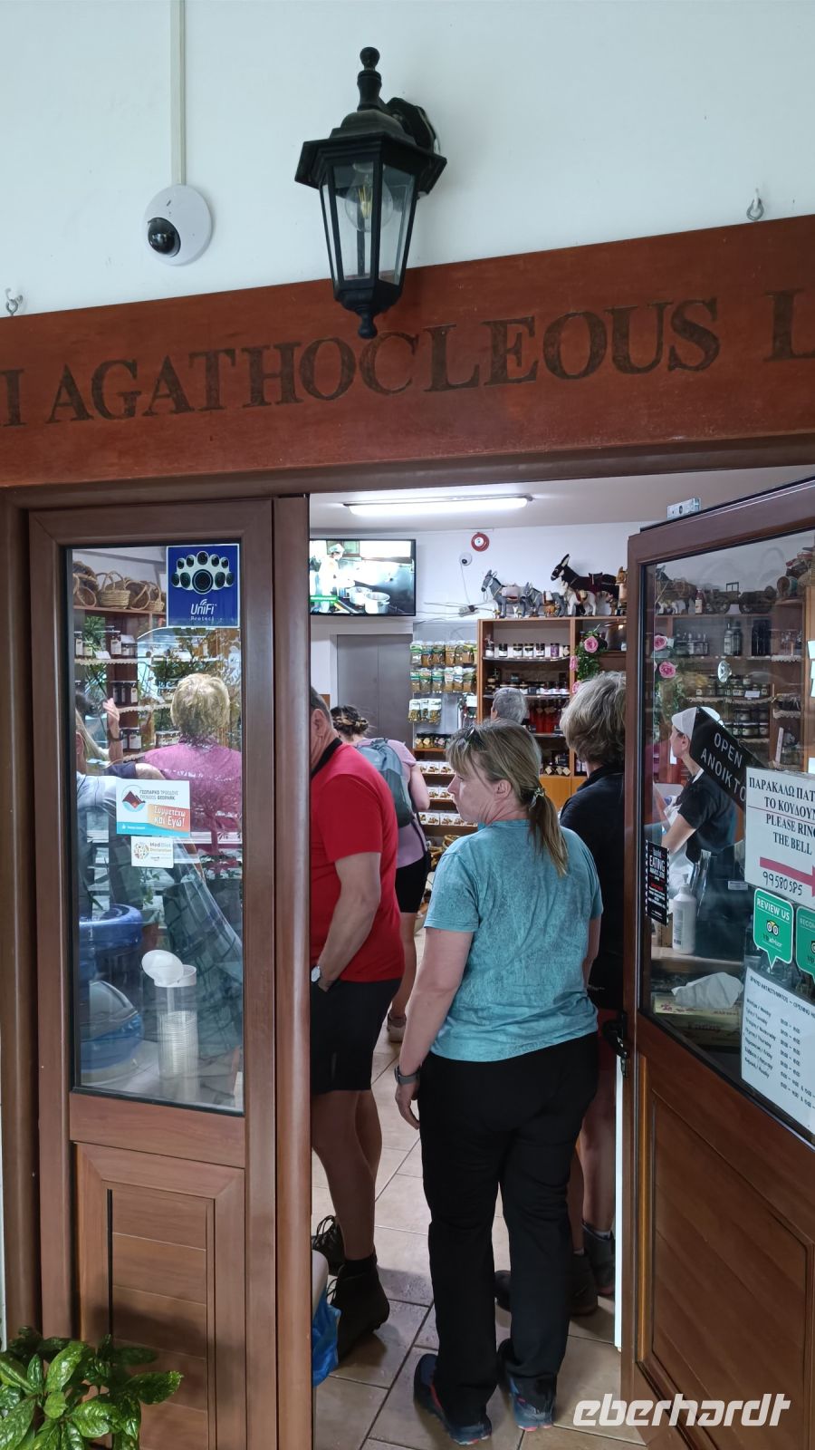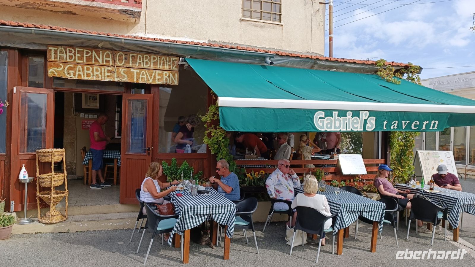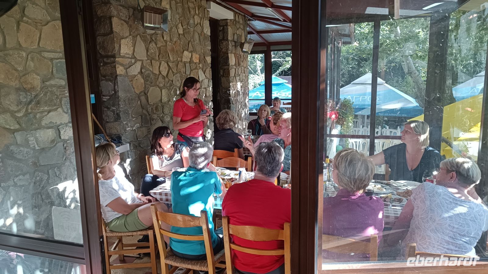 In der Taverne Koilada in Agros trafen wir wieder auf unsere Rundreisegruppe mit unseren beiden ausgeliehenen Damen. Es schien ein angenehmer Ausflug für die beiden gewesen zu sein.