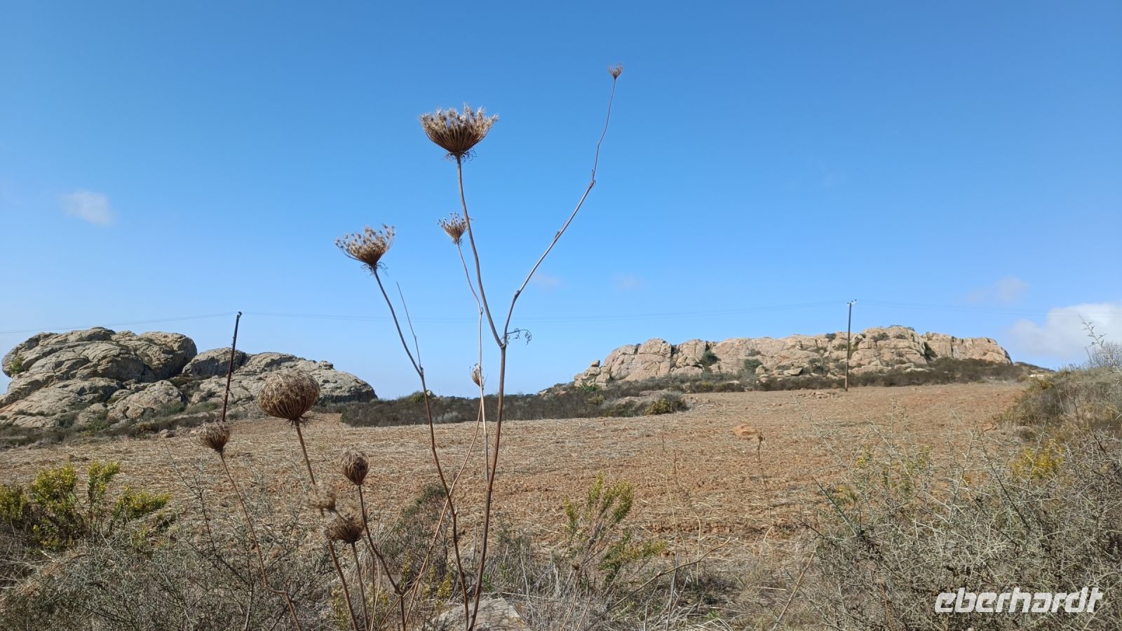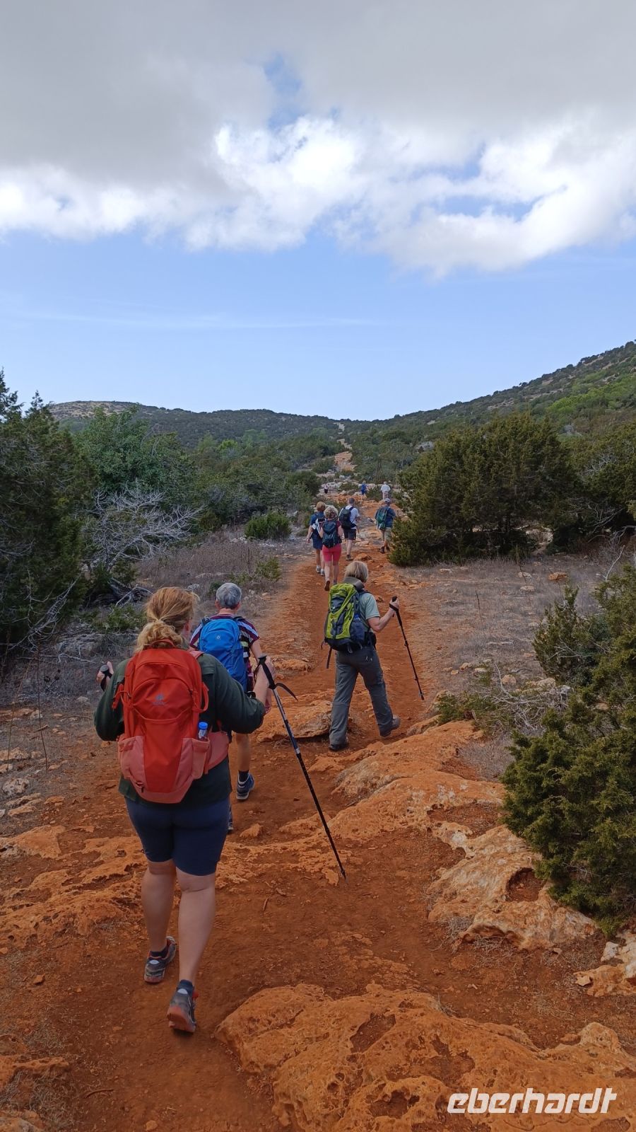 Der Weg führte uns zunächst stetig leicht bergauf durch die typische Macchinalandschaft, mit niedrigen Kiefern, Wacholder und den bodendeckenden verschiedenen Kräutern.