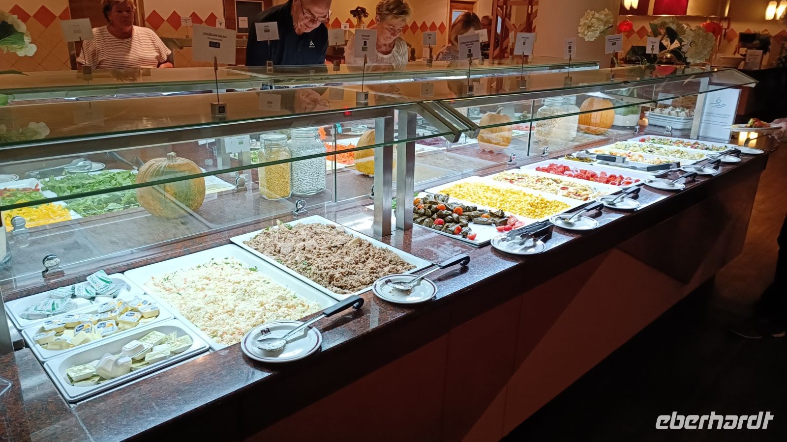 Im Adventure Restaurant trafen wir wieder mit unseren beiden Damen zusammen, die bereits gemütlich in der Sonne saßen und ihren Cappucchino genoßen.