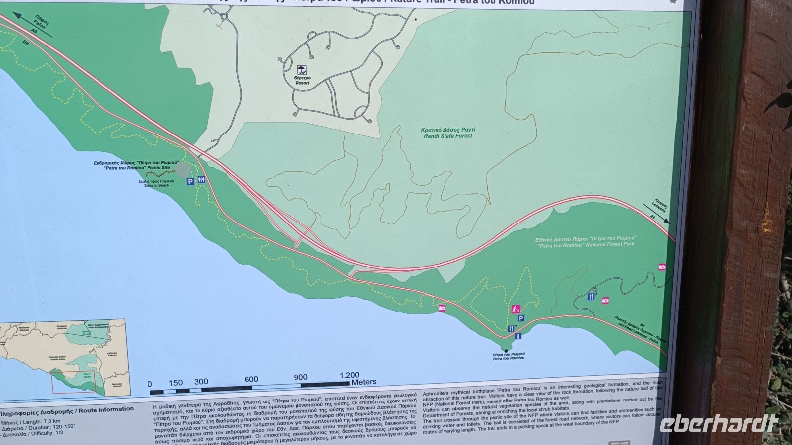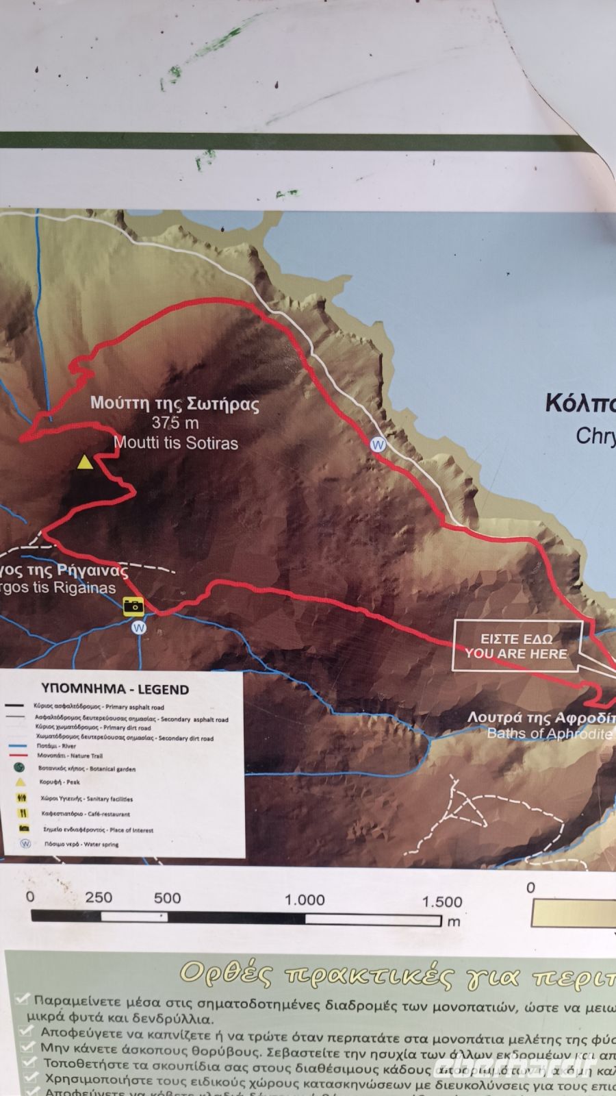 Sowohl der Ausgangspunkt als auch der Endpunkt der Wanderung bildete der Parkplatz am Bad der Aphrodite, wo die Schönste aller Schönen ihr tägliches Bad in einer erfrischenden kleinen Quelle nahm.