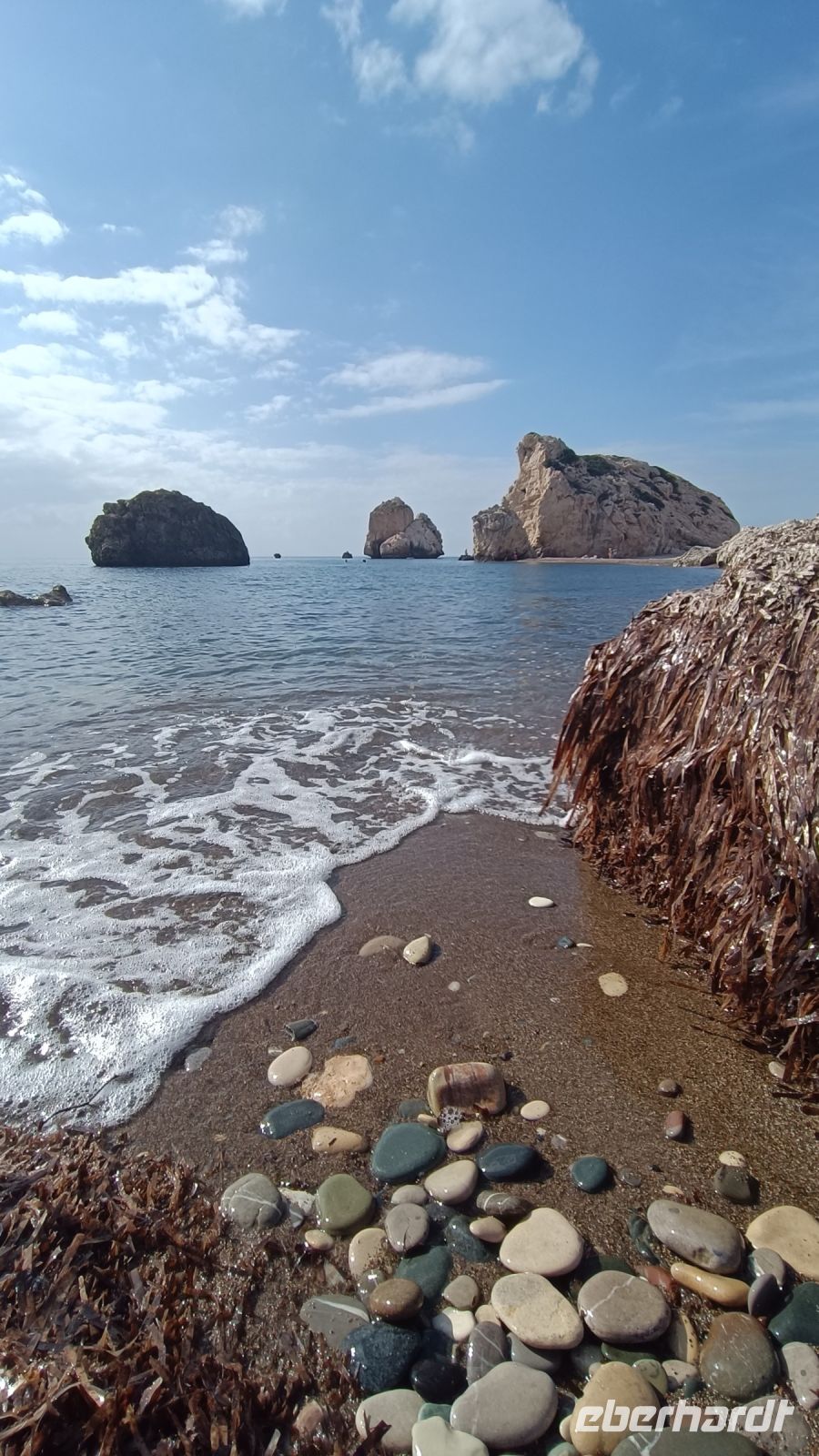 Während der Fahrt hinaus zum Felsen der Aphrodite, wo sie einst aus dem Schaum des Meeres geboren wurde, erzählte uns Pantelis einiges über die geteilte Insel.
