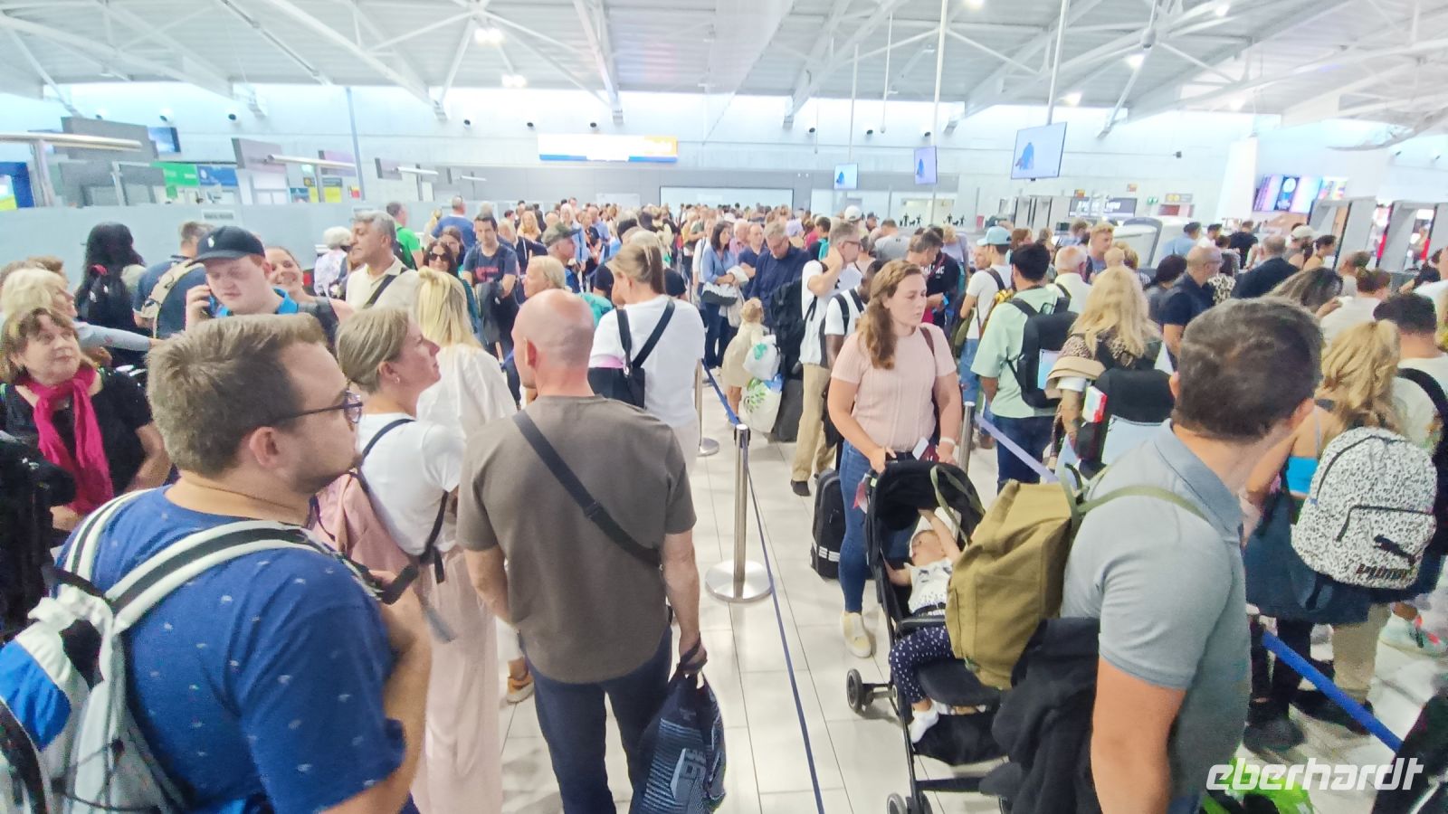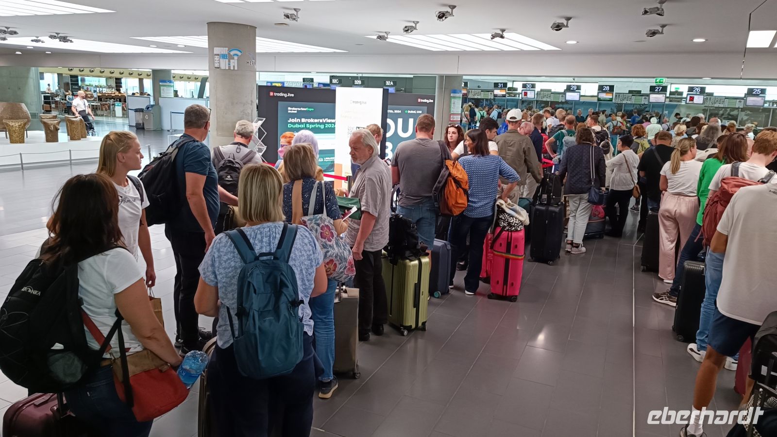 Und dann kam das was keiner wollte, aber jeder befürchtet hatte. Die ewig langen Schlangen am Flughafen und die wenig geöffneten Check-In Schalter.