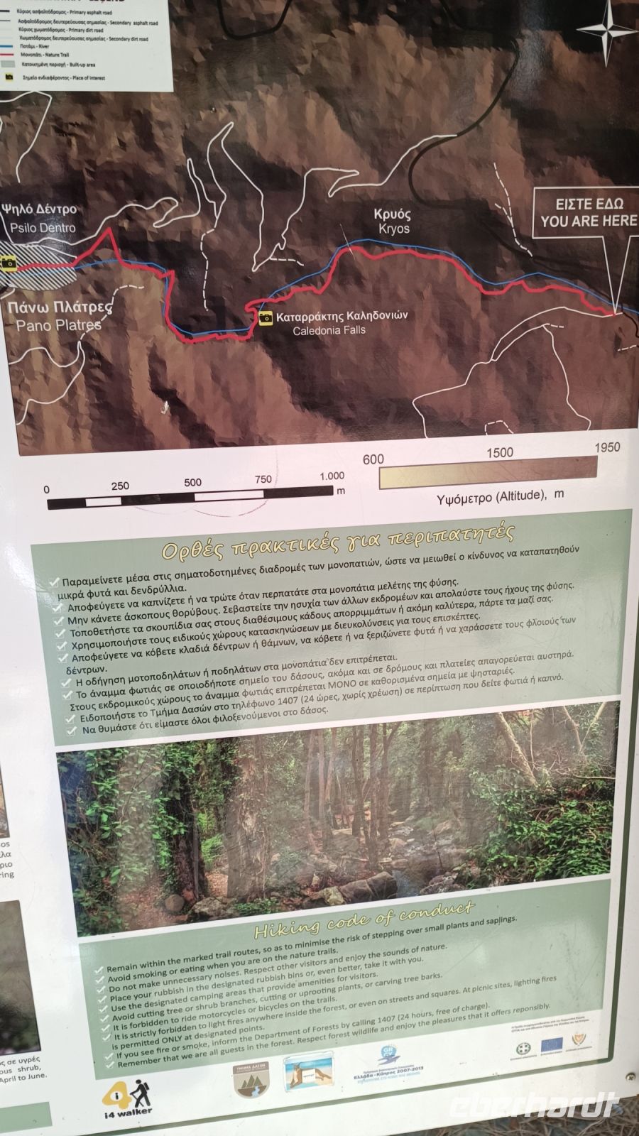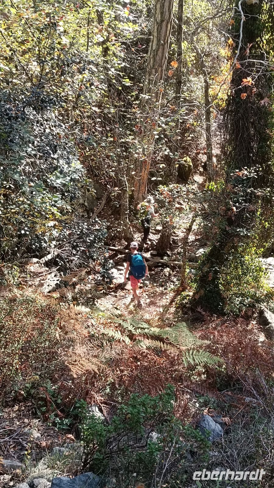 Ein schmaler Pfad, durch die dichten Wälder mit Erdbeerbäumen, Kiefern und Platanas, führte uns bei etwa 28 Grad Lufttemperatur hinunter zum Caledonia Wasserfall und dann weiter nach Pano Platres.