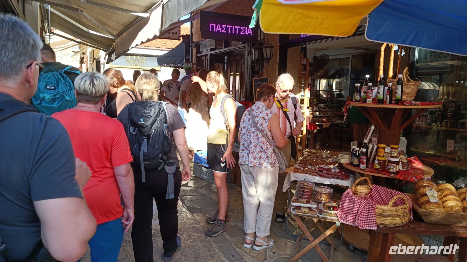 Auf der Fahrt hinauf zum Hotel stellte sich heraus, dass Ismini in Dresden aufwuchs im Zuge des Projektes „Freies Griechenland“ in den 1970iger Jahren. Und da wir Gäste aus Dresden an Bord hatten, ergab sich eine völlig neue Situation…..schon fast eine familiäre. Die Betroffenen haben beschlossen, in diese Geschichte während unserer Wandertage tiefer einzutauchen.