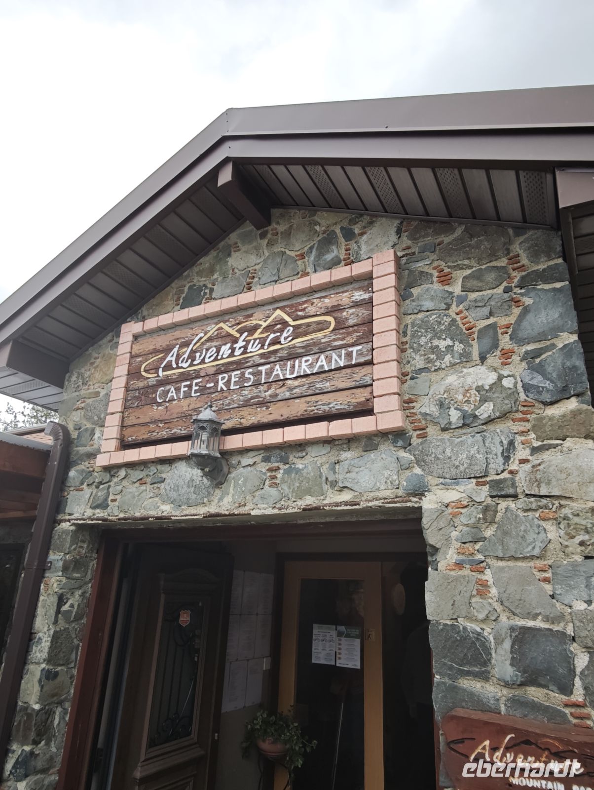Als Mittagsessen hatten wir ein Lunchpaket dabei, da es aber wieder in strömen regnete, fuhren wir in die Taverne von den Schwiegereltern von Jenny. Dort aßen wir unser Sandwich, zu dem gab es ein Freigetränk auf Kosten von Eberhardt Travel und die Schwiegermutter von Jenny hat Kuchen gebacken und spendiert.