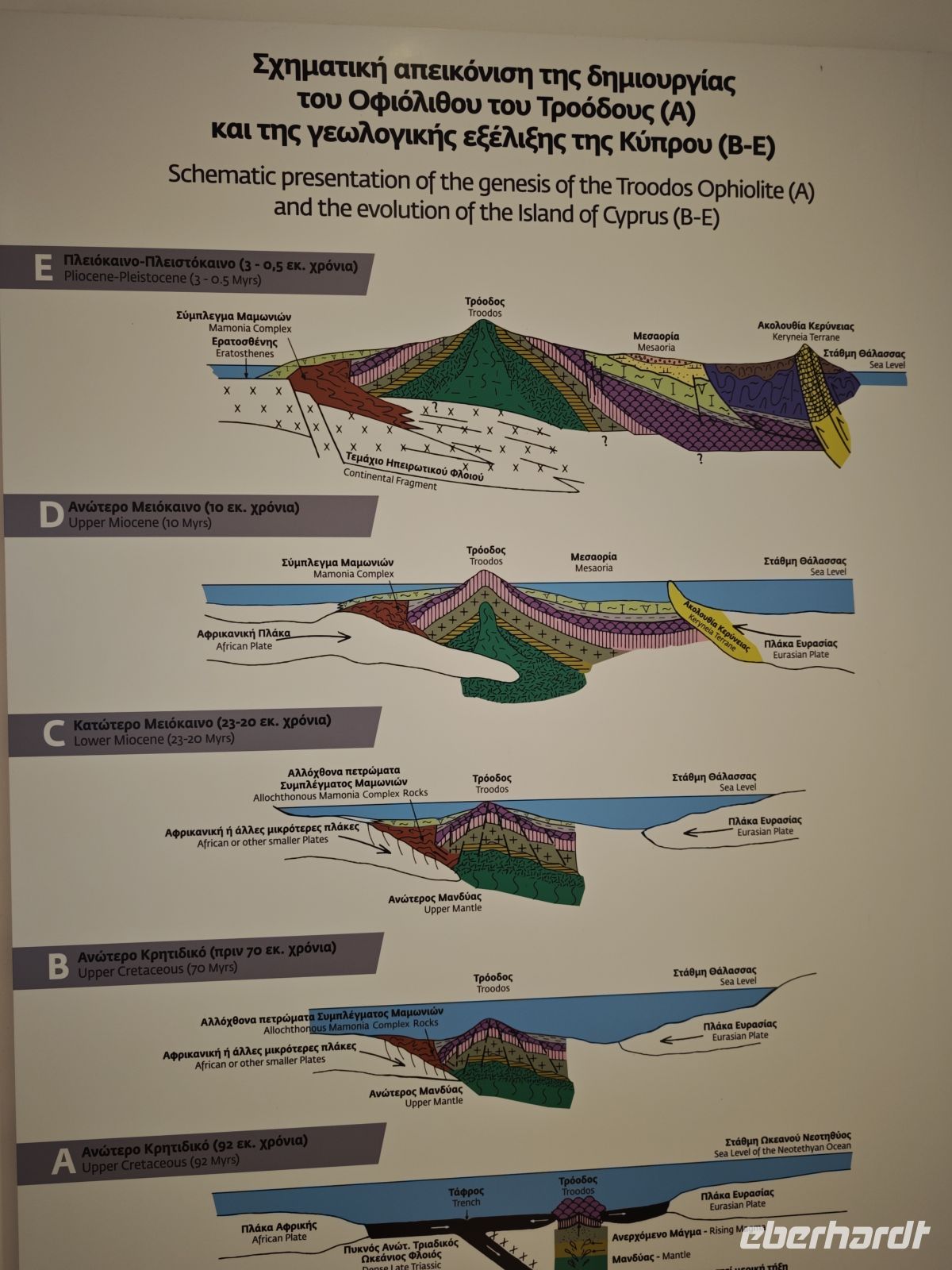 Der Bus brachte uns dann zur Mittagszeit in die Taverne, wo es ein Meze-Essen gab. Gut gestärkt bestiegen wir wieder den Bus und fuhren in den Troodos GeoPark, das in einem ehemaligen Asbestabbaumine befindet. Hier haben wir viel über die Entstehung der Insel Zypern erfahren und über die Vorkommen der vielen Bodenschätze.