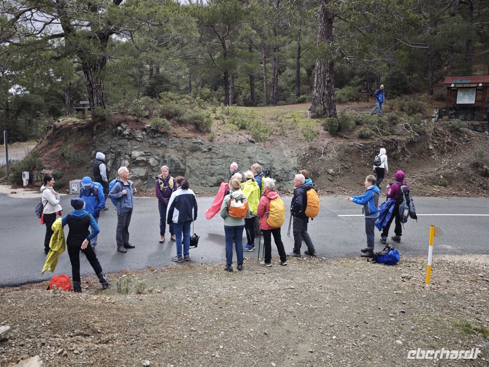 Alles richtig gemacht. Bei aller Besten Wetter ging mit dem Bus um 8.30 Uhr los. Wir fuhren nur einen kurze Wegstrecke und begannen die Tour auf am Einstieg vom Adonis Nature Trail. Es ging stetig bergauf vorbei an typischen Pflanzen von Zypern. Bei einer Trinkwasserquelle machten wir die erste Rast und konnten bereits das Zwischenziel den Aussichtsberg Moutti tis Soutiras sehen.