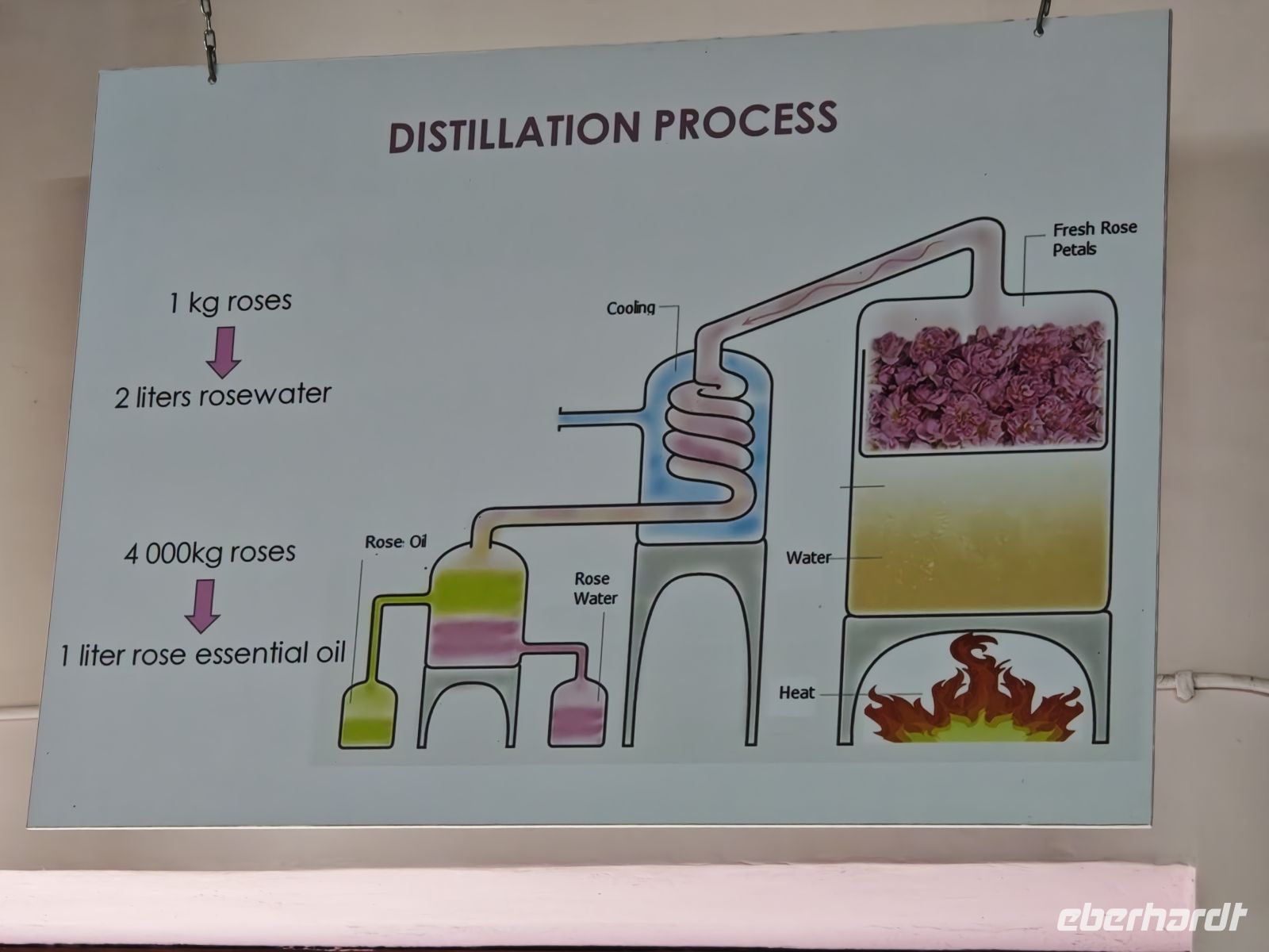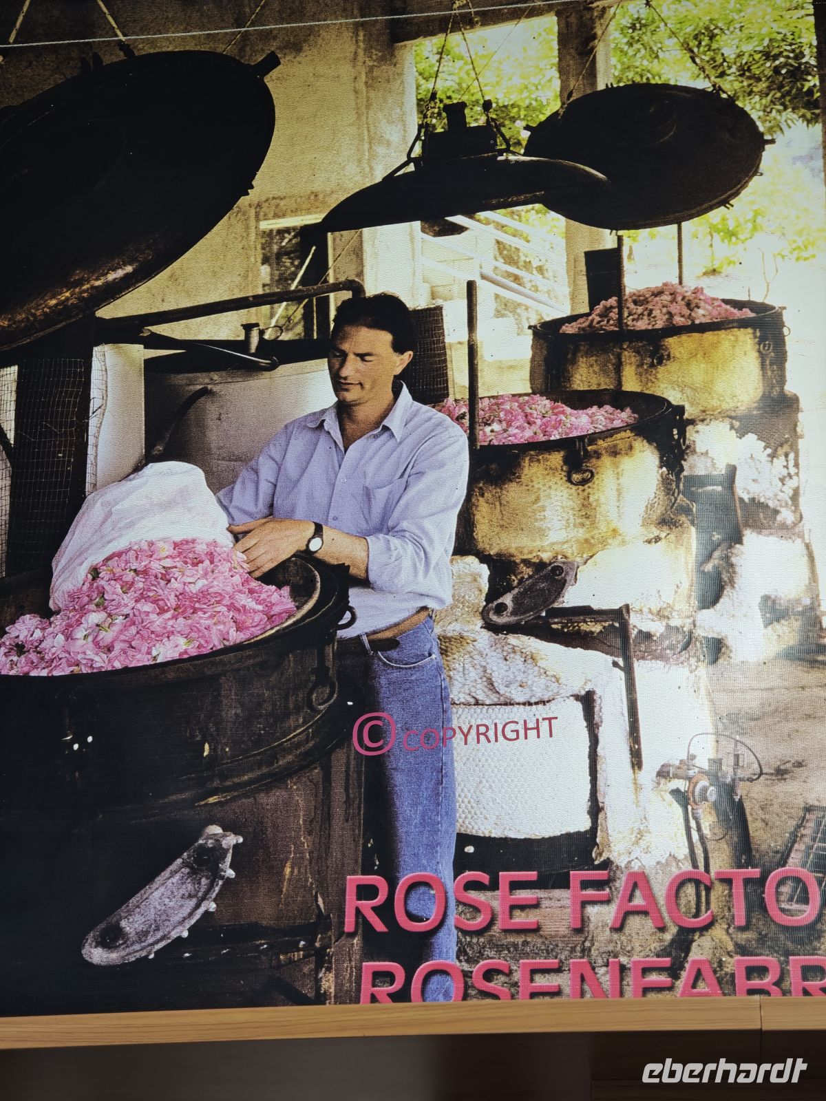 Gut gestärkt besichtigen wir die Rosenmanufaktur (Herstellung von Rosenöl) mit Einkaufsmöglichkeit, sowie dann zur Niki, wo kandierte Früchte und Marmeladen hergestellt werden.
