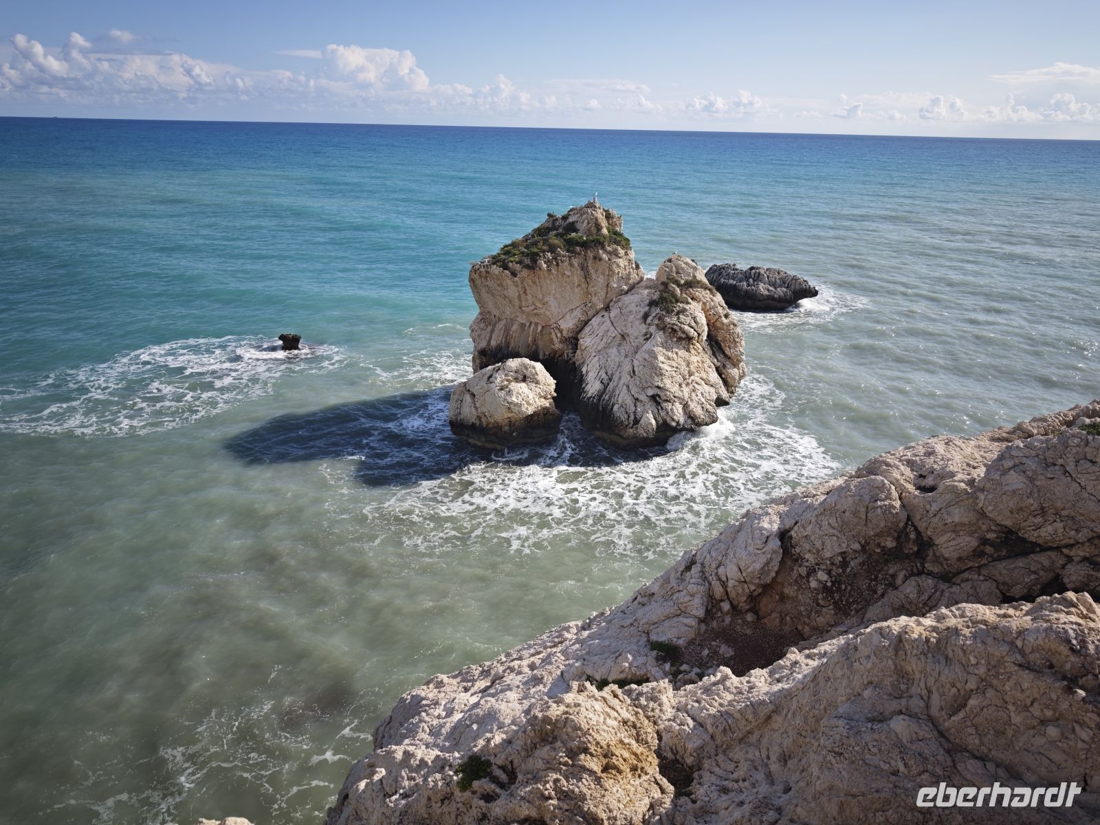 In der Nähe des Felsen der Aphrodite begann die Wanderung. Nach einem kurzen Regenguss wurde das Wetter zunehmend besser und wir hatten das erste Mal richtig Sonnenschein.Immer Entlang der Klippen verlief die Wanderung mit tollen Ausblicke auf die weißen Kalkfelsen, die den Wellen des Mittelmeeres trotzen. Entlang des Wegs konnten viele schöne Blumen erstaunt werden.