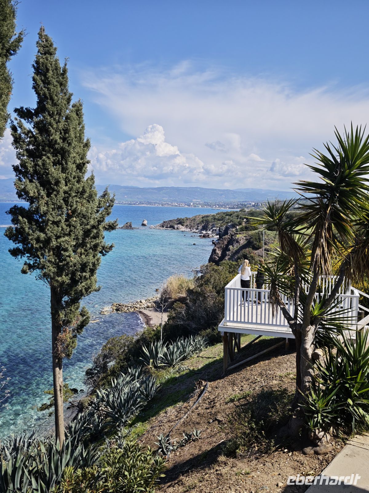 Der Weg ist gut angelegt und beschildert. Wir erreichten den den Gipfel und hatten ein WOW, was für eine gigantische Aussicht auf die Halbinsel und die Küstenlinie mit ihren Buchten. Das Wasser schimmerte in den schönsetn Farben von Türkis bis Dunkelblau. Wir hatten einen super Tag erwischt für die Wanderug, die wir als Krönung unseres Zyperaufenthalt bezeichnen konnte. Alle waren begeistert und wir konnten uns nicht satt sehen an diesen herrlichen Weitblicken. Auch der Weg nach unten über den Aphrodite Trail bot uns immer wieder diese tolle Weitblicke.