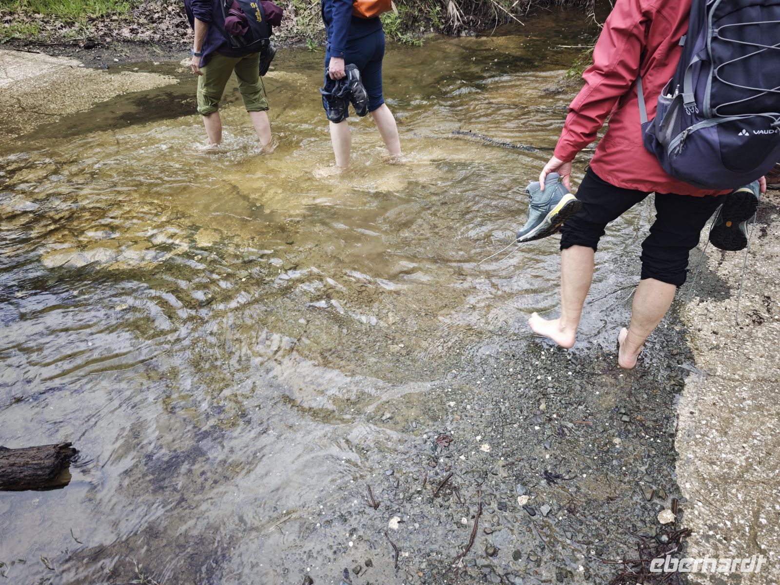 Während die Brote im Ofen waren, starteten wir unsere Wanderung. Diese führte oberhalb des Dorfen entlang eines alten Bewässerungssystem. Ein kleines Hinternis gab es zu überwinden. Ein Bach, der solange Jenny die Wanderung kennt, noch nie Wasser führte,musste überquert werden. Es blieb uns nicht weiter übrig als die Schuhe auszuziehen und barfuß den Bach zu durchqueren. Das war aufregend und bot Abwechslung.