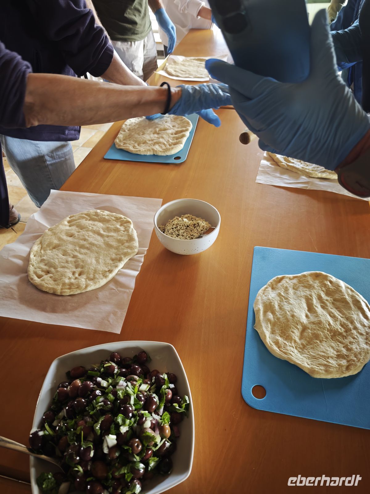 Jetzt hatten wir den richtigen Appetit zum Mittagessen. Wir hatten ein leckeres Essen in der Taverne, wo wir auch unser Olivenbrot gebacken hatten, das wir anschließend mitnehmen konnten.