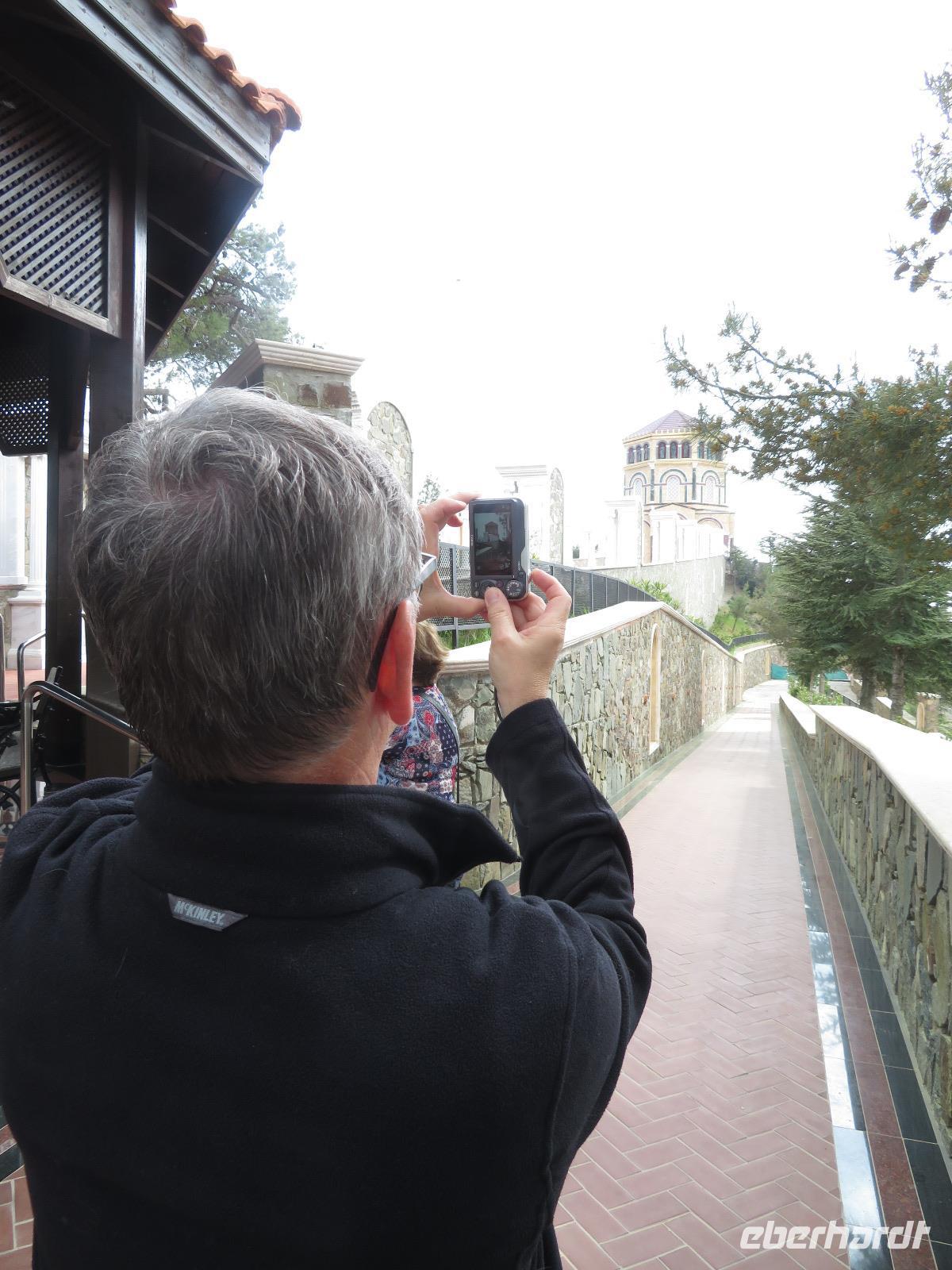 Die ersten Sonnenstrahlen hatten es schon über die Berge bis in unser Dorf geschafft, da starteten wir unseren Ausflug in Richtung der Hauptstadt Lefkosia. Doch bevor wir die geteilte Hauptstadt erreichten, besuchten wir noch die Kupfermine Skourriotissa und Antoni erklärte uns anhand der unterschiedlichen Gesteinsschichten die Entstehung der Insel Zypern. Entlang der Mesaoria-Ebene setzten wir dann anschließend unsere Fahrt fort. Die Mesaoria-Ebene befindet sich zwischen dem Troodosgebirge im südlichen Teil und dem Pentadaktilosgebirge im nördlichen Teil. Der fruchtbare Boden auf dieser Ebene wird vorallem für die Landwirtschaft genutzt. Durch die Mesaoria-Ebene verläuft ebenfalls die Demarkationslinie, auch grüne Linie genannt. Sie teilt die schöne Insel seit des Putschversuches der griechischen Regierung und der Besetzung des nördlichen Teils durch die Türkei im Jahre 1974 in Nord- und Südzypern. Getrennt sind die beiden Teile durch einen Zäune, Mauern und Sperrgebiete. Blauhelmsoldaten der UNO sind ebenfalls mit vor Ort und überwachen die politischen Spannungen. Denn die Bevölkerungen beider Landesteile verstehen sich sehr gut und wünschen sich eine Wiedervereinigung sehr. Leider sind auch bisher alle Gespräche über eine Wiedervereinigung gescheitert. In der Hauptstadt Nikosia stiegen wir dann an der venezianischen Mauer aus und schlenderten bis zum Präsindentenpalast. Nach einem Besuch der Agio Ioannis Kirche spazierten wir entlang der Demarkationslinie und die Altstadt zur Lidra-Straße, der Haupteinkaufsstraße von Lefkosia. Hier befindet sich auch einer der Grenzübergänge, bei denen man die Grenze zu Fuß übertreten kann. Nach unkomplizierter Passkontrolle besuchten wir dann im Nordteil die ehemalige Sophienkathedrale, die seit der osmanischen Zeit auf der Insel eine Moschee ist und die Kawanserei Buük Han. In dem belebten Treffpunkt probierten wir leckere handgemachte und mit Käse gefüllte Börek und genossen anschließend noch ein leckeres Eis in einem der zahlreichen Eiscafes. Nachdem wir dann wieder die Grenze überquert hatten, nahmen wir den Aufzug hinauf zum Observatorium der Stadt und genossen bei klarem Blick den weiten Blick über die Hauptstadt bis hin zum Pentadaktilosgebirge. Am Nachmittag erwartete und dann Jorgo mit unserem Bus und wir fuhren entspannt zurück ins Troodosgebirge nach Kalopanayiotis, wo uns wieder ein abwechslungsreiches und seht schmackhaftes Menü zum Abendessen erwartete.