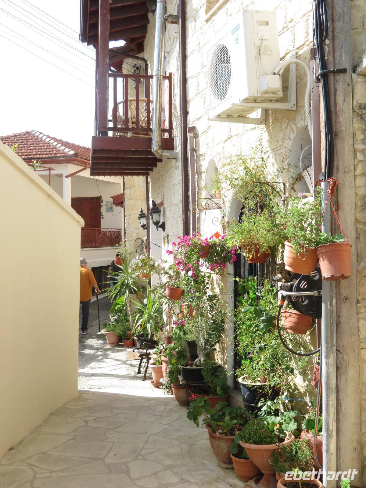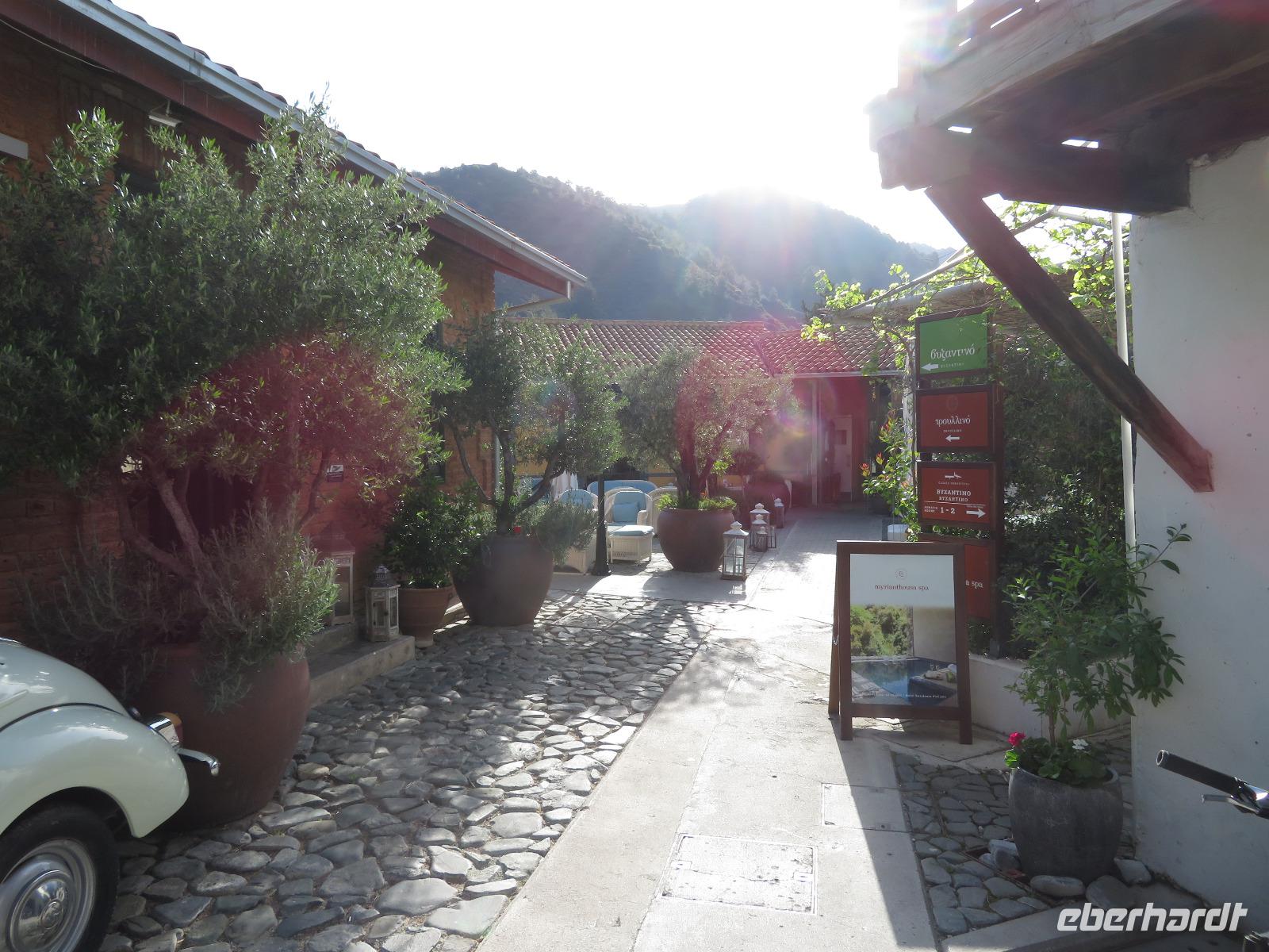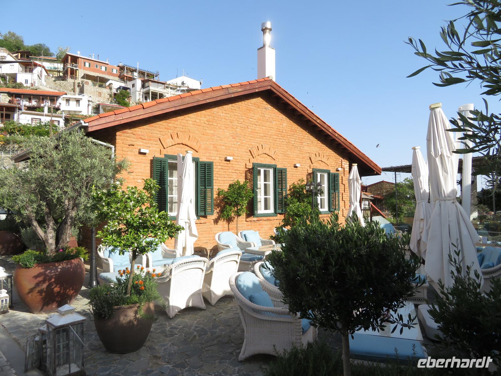 Am Abend landeten wir dann auf dem Flughafen von Paphos und unser Reiseleiter Antoni und Busfahrer Jorgo erwarteten uns bereits. Nachdem wir die Koffer im Bus verstaut hatten, fuhren wir in Richtung Troodosgebirge zu unserem Hotel nach Kalopanayiotis. Das Agrotourismusdorf präsentierte sich fein herausgeputzt und wir übernachteten in hochwertigen und Schicken kleinen Appartments mit tollem Blick in das Dorf und in die Berge.