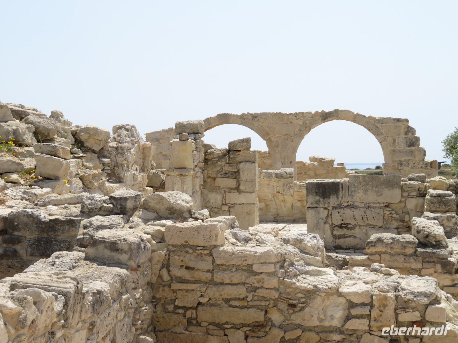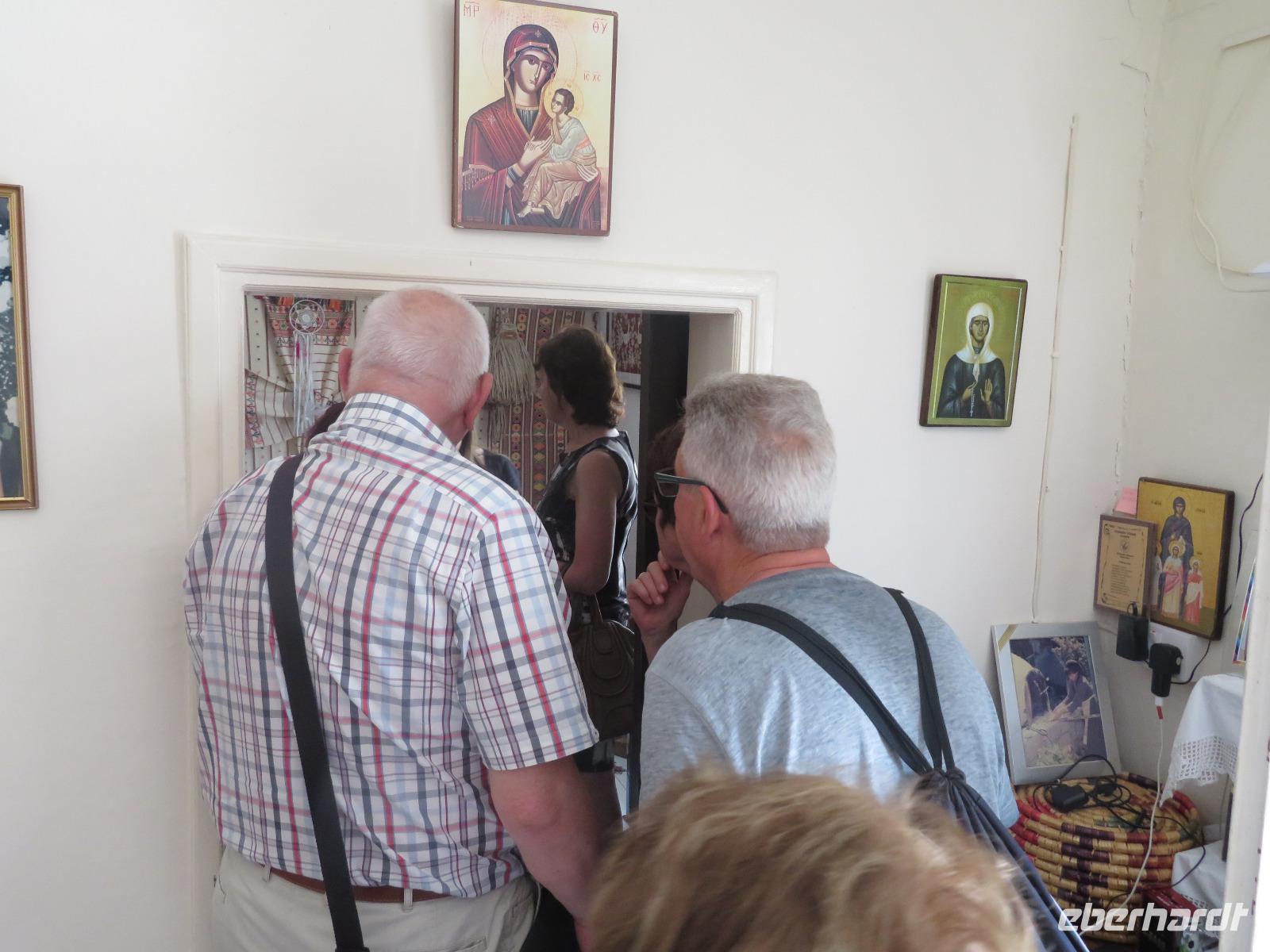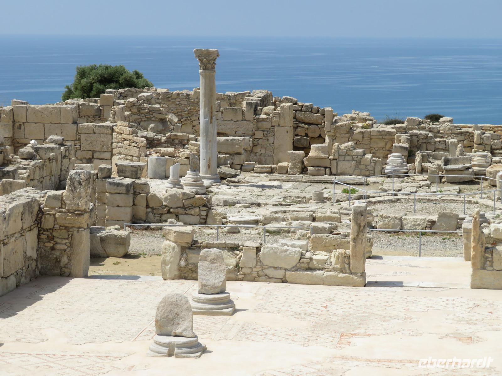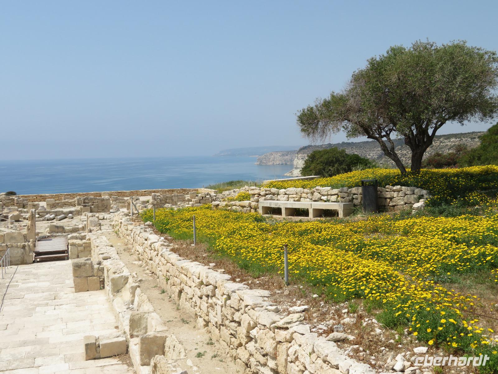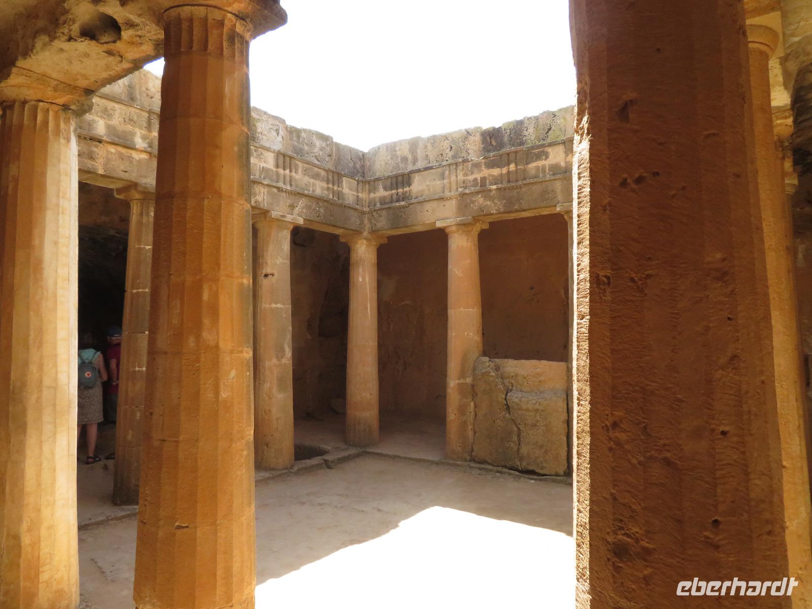 Nach dem Frühstück mit Meeresrauschen begann unser Ausflug. Zunächst fuhren wir zum nur wenige Kilometer außerhalb von Paphos gelegenen Kloster des heiligen Neophytos bei Mesogi. Dort stiegen wir die wenigen Stufen zur Eremitenhöhle und zur Höhlenkapelle hinauf, die der heilige Neophytos im 12. Jahrhundert eigenhändig errichtete und über 50 Jahre dort allein lebte. Zu seinen Ehren wurde nach seinem Tod in unmittelbarer Nähe das gleichnamige Kloster errichtet, dessen Kirche wir mit seinen zahlreichen Ikonen ebenfalls besuchten. Anschließend fuhren wir wieder zu den etwas außerhalb von Paphos gelegenen Königsgräbern, die aus dem 3. Jahrhundert stammen. In diesen historischen und begehbaren Ruhestätten wurden allerdings wahrscheinlich nie Könige beigesetzt, sondern sie wurden von der Oberschicht genutzt, weil es zu dieser Zeit keine Stadtkönige mehr auf Zypern gab. Nach nur wenigen Minuten Busfahrt erreichten wir dann die herausgeputzte Innenstadt von Paphos. Die Stadt war im vergangenen Jahr gemeinsam mit der dänischen Stadt Aarhus „Kulturhauptstadt Europas" und es fanden zahlreiche kulturelle Veranstaltungen vor den Kulissen des historischen Hafens und des archäologischen Parks statt. Den Archäologischen Park der Stadt Paphos, der sich unweit des Hafens befindet besuchten wir dann anschließend. Dort steht das Haus des Dionysos mit seinen Bodenmosaiken, geschützt von einem nachträglich errichteten Pavillon. Die Mosaiken aus dem 2. Jahrhundert n. Chr. wurden 1962 bei Bauarbeiten entdeckt und freigelegt. Es ist immer wieder beeindruckend, mit welcher Genauigkeit und ohne moderne Hilfsmittel die Menschen damals die Mosaike gesetzt haben. Im Anschluss bummelten wir noch entlang des Hafens, bevor wir die Stadt verließen und in dem kleinen Ort Kouklia noch ein leckeres Souvlakia Essen genossen. Am Nachmittag konnte dann jeder die Annehmlichkeiten des Hotels genießen oder die angenehme Kühle des Mittelmeeres genießen.