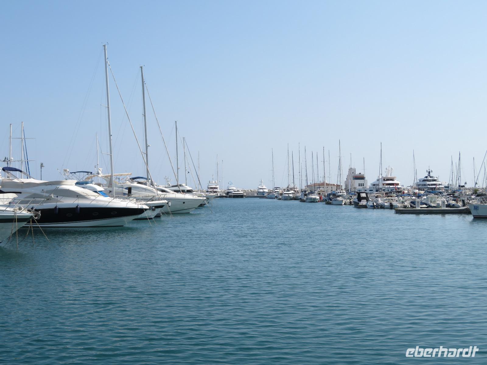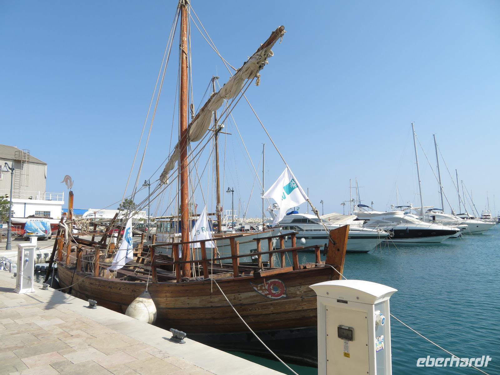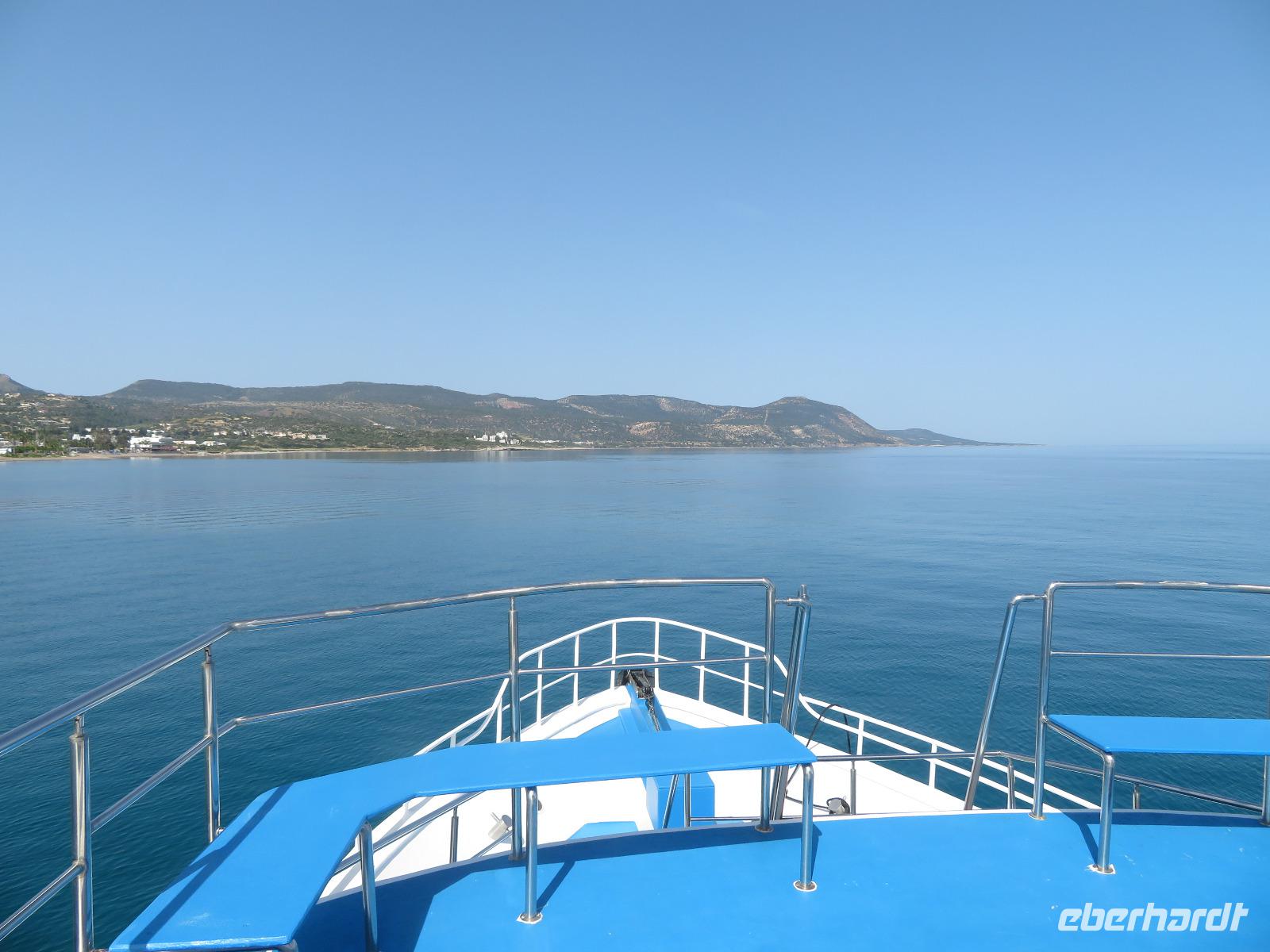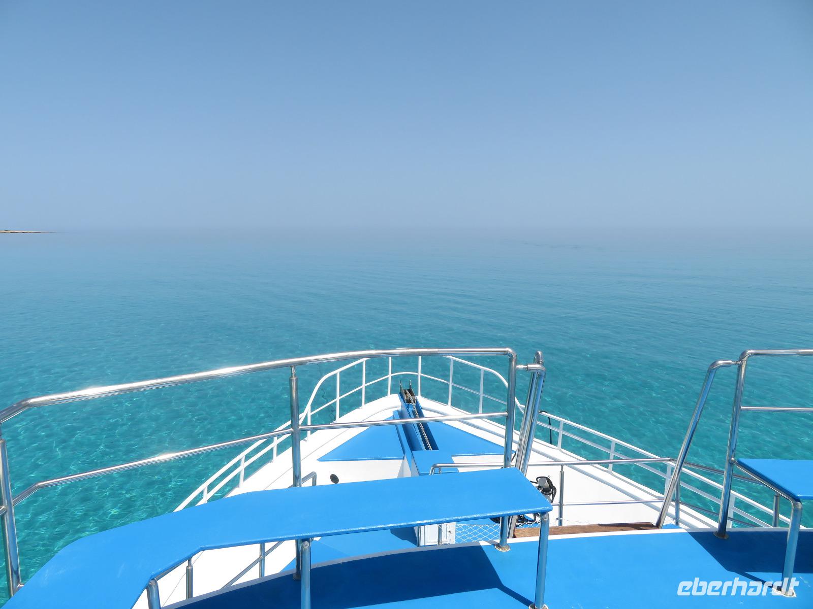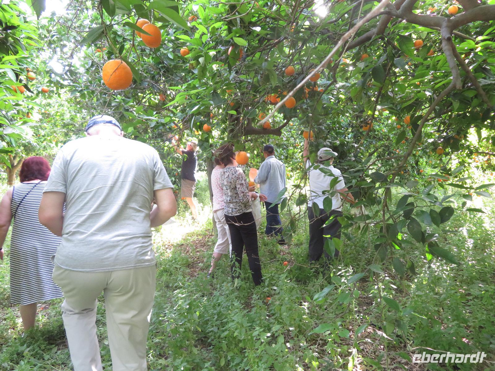 Am Morgen fuhren wir zunächst in Richtung Akamas-Halbinsel, wo uns bereits unser Schiff erwartete. Doch bevor wir auf das Schiff stiegen, hielten wir bei einer der zahlreichen Obstplantagen und konnten frische Orangen und Zitronen pflücken und genießen. In der kleinen Hafenstadt Latchi stiegen wir dann von unserem Bus auf das Schiff um. Die Crew erwartete uns bereits und nachdem wir es uns an Bord bequem gemacht hatten, konnte wir ablegen. Bei ruhiger See und klasklarem Wasser fuhren wir anschließend entlang der Akamas-Halbinsel einem großen Naturschutzgebiet. Nach ca. einer Stunde erreichten wir dann die Blaue Lagune und unser Schiff ankerte in dem türkisblauen Idyll. Außer uns war kein Schiff in der Blauen Lagune, so konnten wir die absolute Ruhe genießen und uns nach Lust und Laune im kühlen Nass erfrischen. Nachdem wir über eine Stunde die Idylle genossen hatten, wurde der Anker eingeholt und wir fuhren zurück nach Latchi. Nachdem wir wieder angelegt hatten, blieb noch Zeit, den malerischen Hafen zu besuchen und enetlang der Geschäfte und Tavernen zu schlendern. Am Mittag besuchten wir dann das Weingut Vasilikon im Dorf Kathikas und genossen nach einer Führung durch die Weinkelterei bei vorzüglichen Weinen den weiten Blick über die Avagasschlucht bis hin zum Mittelmeer.