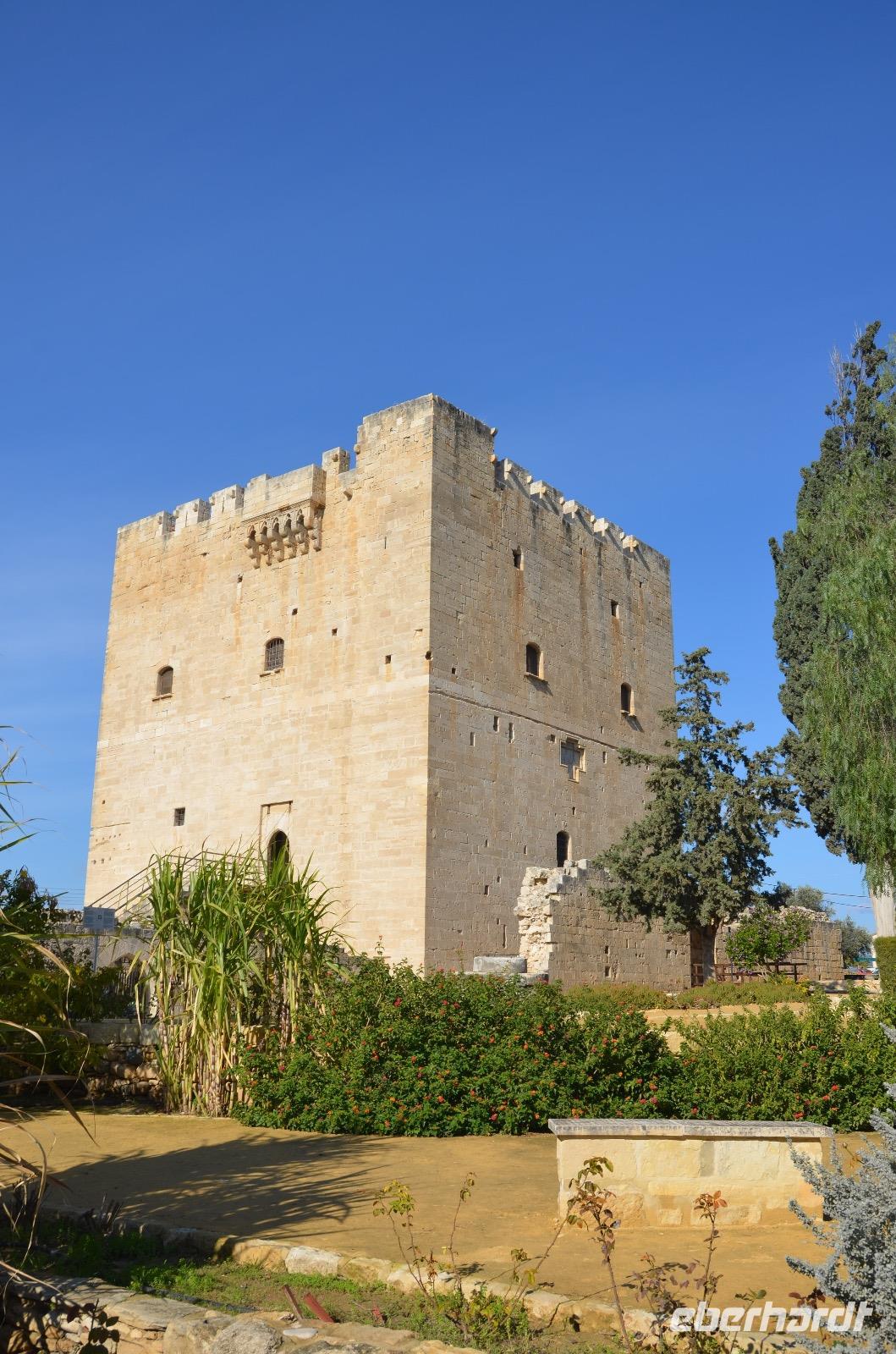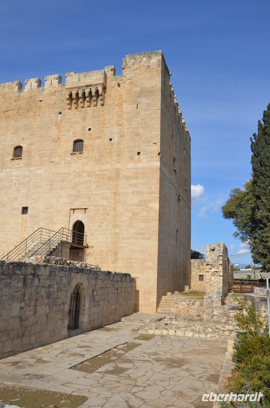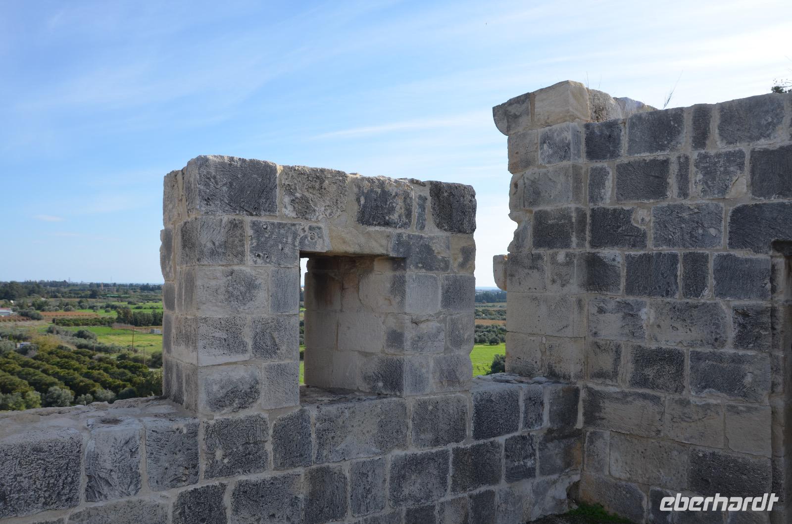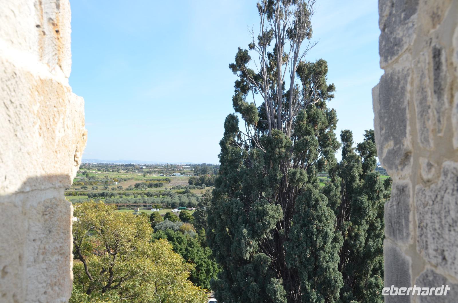 Wir fuhren weiter zur Kolossi-Burg. Die 3-stöckige Johanniterburg besitzt im vorderen Teil eine Zugbrücke, über die wir in das Gebäude gelangten. Hier durchliefen wir zuerst die Küche und danach die Schlafsäle. Auf der mittleren Etage bekam wir den Commandaria zu probieren. Der Name stammt von der Kommandantur der Johanniter. Sie stellten nicht nur den Dessertwein her, sondern bauten ebenfalls Zuckerrohr an. Zypern war der zweite Sitz der Johanniter, nach Jerusalem. Später folgten Malta und Deutschland. Bei dem grandiosen Wetter lohnte sich der Ausblick von der dritten Etage. Wir stiegen die schmale Wendeltreppe empor und genossen die warmen Sonnenstrahlen auf der Burg. Auch die Außenanlage ist einen Spaziergang wert und vorne am Kiosk gab es frisch gepressten Orangensaft, welchen wir uns nicht entgehen lassen wollten.