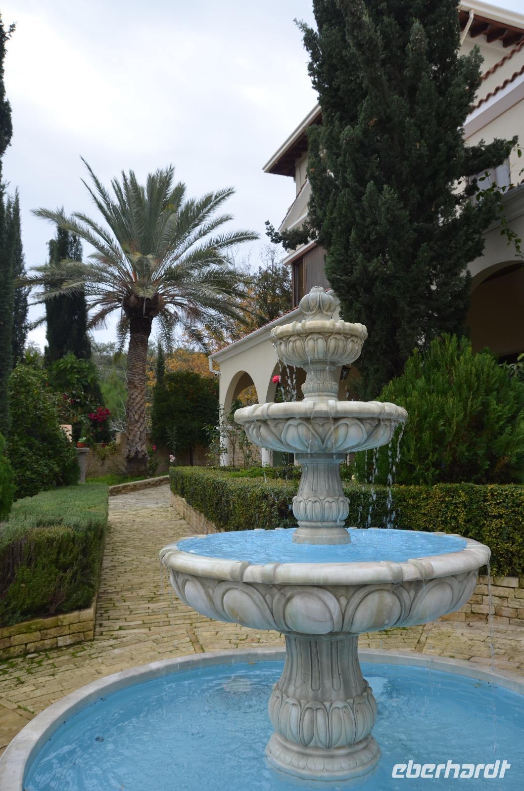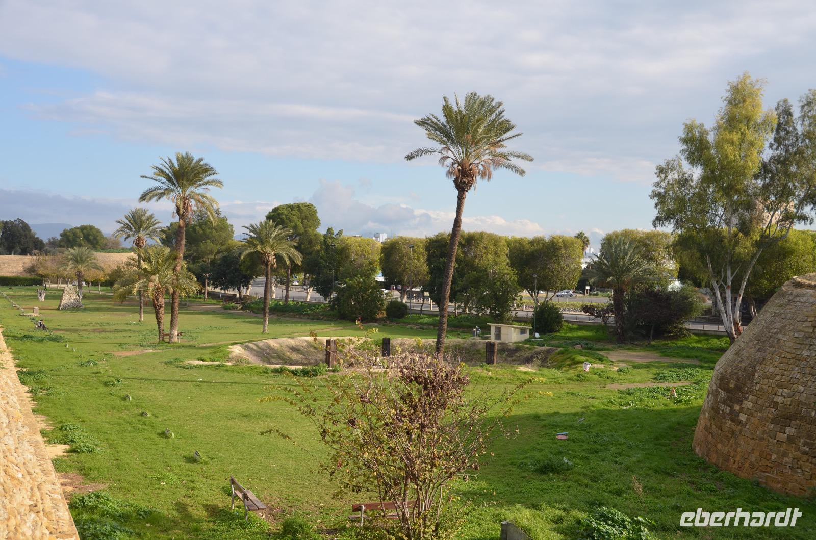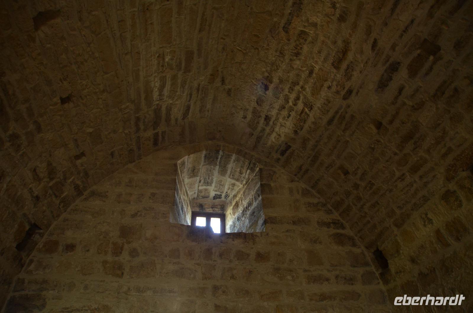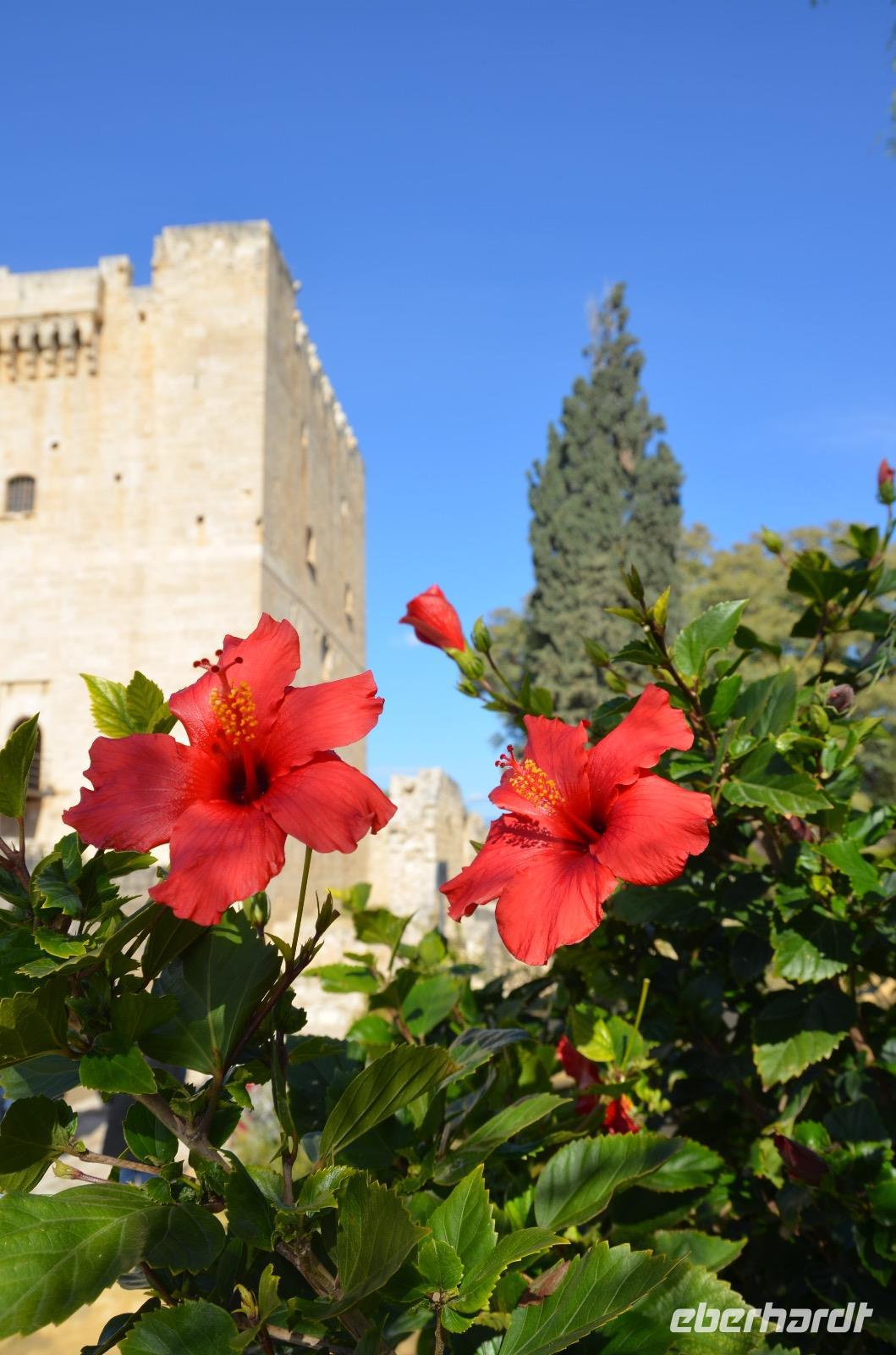 Wir fuhren weiter zur Kolossi-Burg. Die 3-stöckige Johanniterburg besitzt im vorderen Teil eine Zugbrücke, über die wir in das Gebäude gelangten. Hier durchliefen wir zuerst die Küche und danach die Schlafsäle. Auf der mittleren Etage bekam wir den Commandaria zu probieren. Der Name stammt von der Kommandantur der Johanniter. Sie stellten nicht nur den Dessertwein her, sondern bauten ebenfalls Zuckerrohr an. Zypern war der zweite Sitz der Johanniter, nach Jerusalem. Später folgten Malta und Deutschland. Bei dem grandiosen Wetter lohnte sich der Ausblick von der dritten Etage. Wir stiegen die schmale Wendeltreppe empor und genossen die warmen Sonnenstrahlen auf der Burg. Auch die Außenanlage ist einen Spaziergang wert und vorne am Kiosk gab es frisch gepressten Orangensaft, welchen wir uns nicht entgehen lassen wollten.