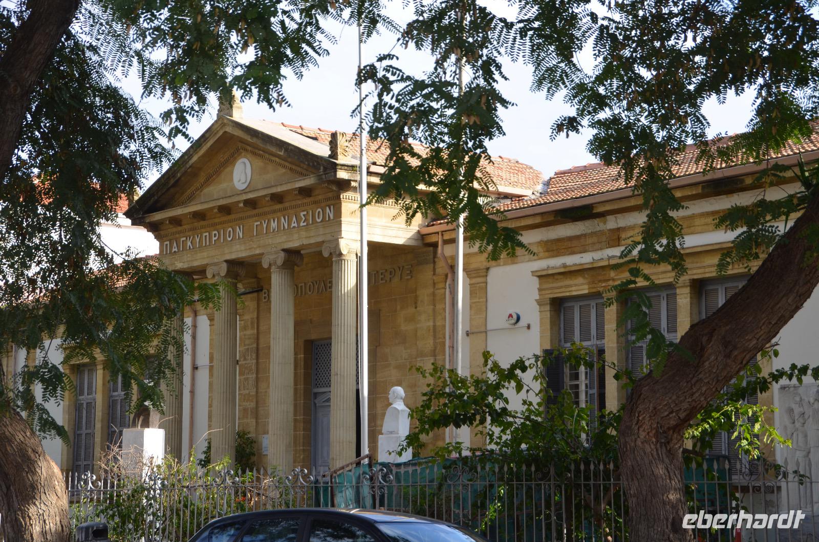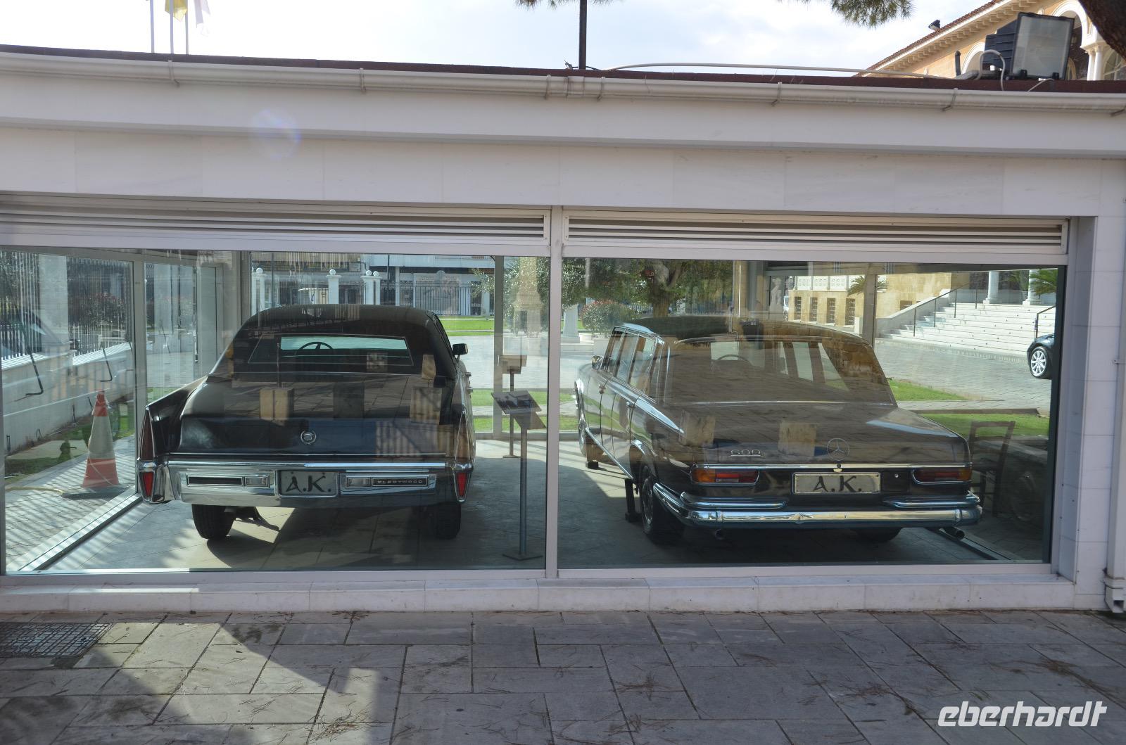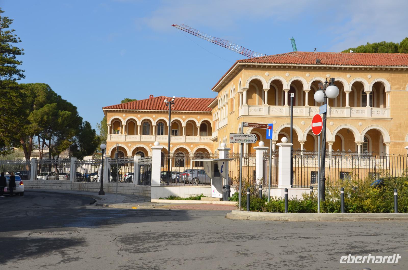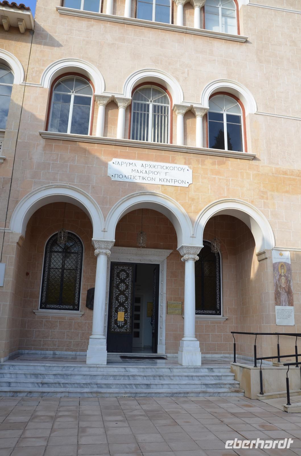 Auch heute noch spielt die orthodoxe Kirche in Zypern eine wichtige Rolle. Eine dieser Kirchen war unser erster Besichtigungspunkt. Wir stiegen an der Stadtmauer von Nikosia aus dem Bus. Vorbei an dem ältesten Gymnasium der Stadt sowie der Bibliothek, gelangen wir zum Erzbistum. Davor die Statue Makarios und vor allem für die Männer unter uns interessant, seine ehemaligen Fahrzeuge.
