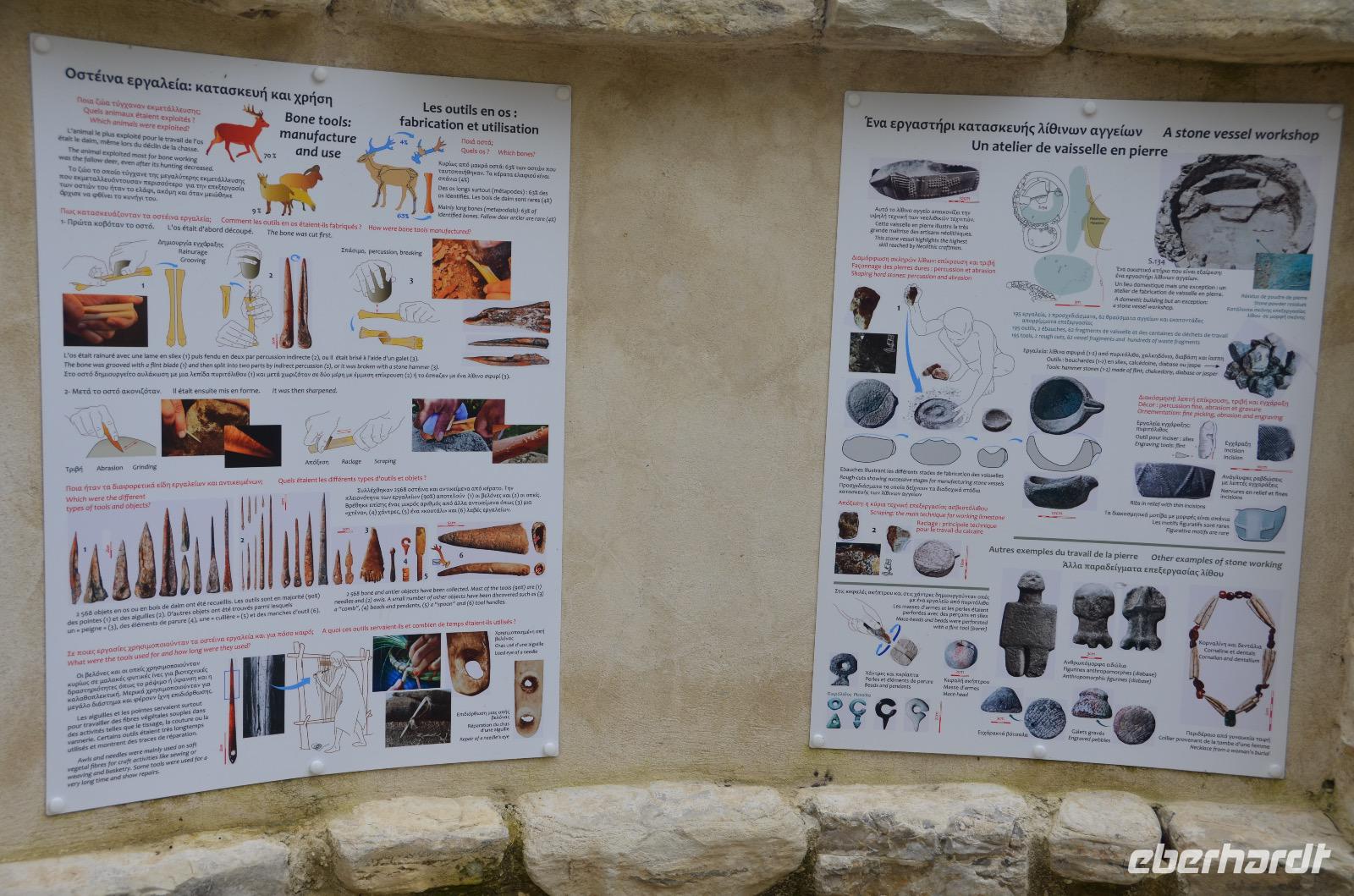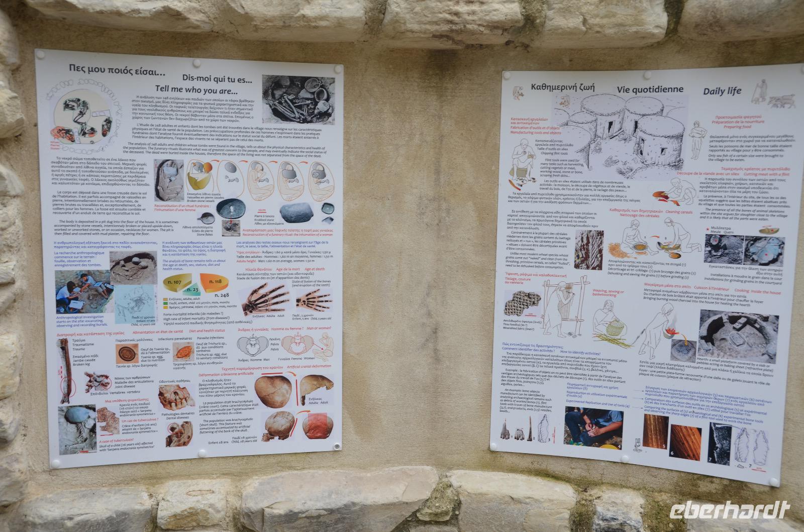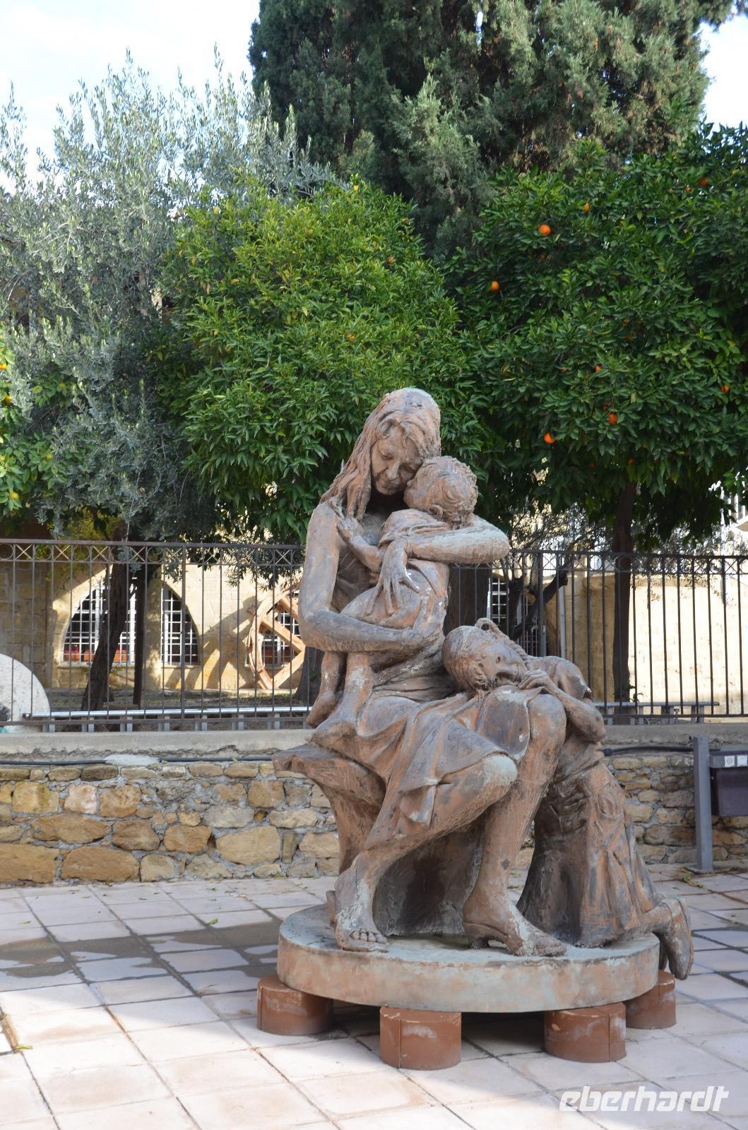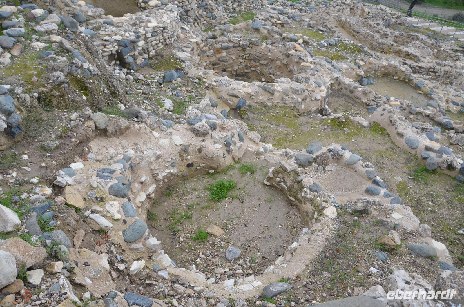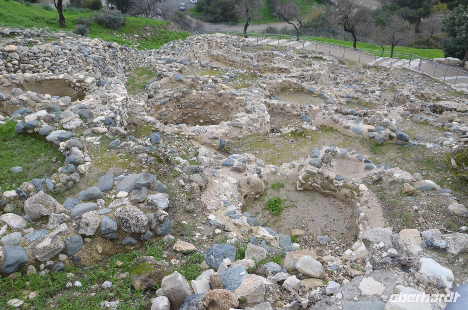 Als erstes besuchten wir heute das Agios Georgius. Das Nonnenkloster verzauberte uns mit seinem Innenhof mit den vielen bunten Blühten und den tragenden Obstbäumen, die ein tolles Fotomotiv boten. Nach dem Besuch der Kirche bekamen wir von einer der Nonnen Gebäck geschenkt, bevor es weiter zu der Jungsteinzeitsiedlung ging. Als wir in Chiroktitia ankamen, besichtigten wir erst die Nachbildung der Siedlung. Die Hütten waren rund und bestanden unten aus Stein und darüber aus Lehm. Bereits 7500 Jahre v. Chr. war dies eine organisierte Siedlung mit Anführer, Haustieren, Getreideanbau und Webstühlen. Man sagt der Ausgrabungsstätte nach, dass hier die erste Katze gefunden wurden sein soll. Die Lebenserwartung eines Menschen betrug damals 30 - 35 Jahre. Die Verstorbenen wurden unter den Häusern gekrümmt und mit einem Stein auf der Brust vergraben. Der Kreis des Lebens sollte somit geschlossen werden. Die embryonale Stellung bildet den ersten Halbkreis, die Position im Grab den zweiten.