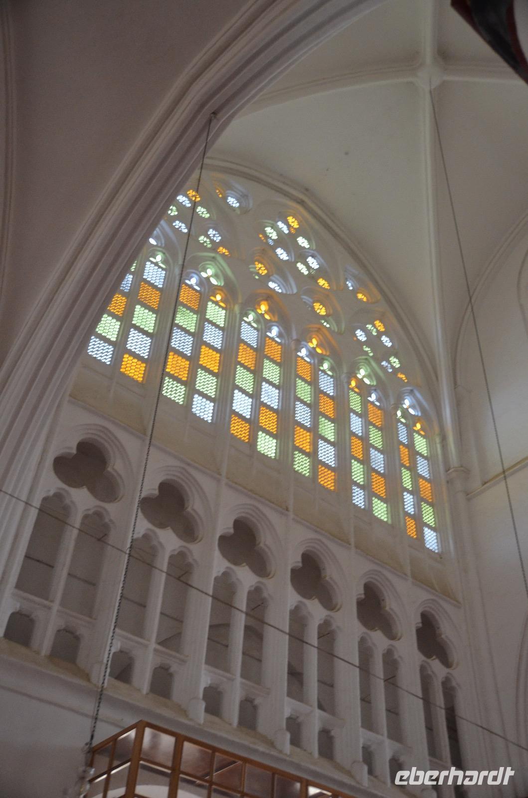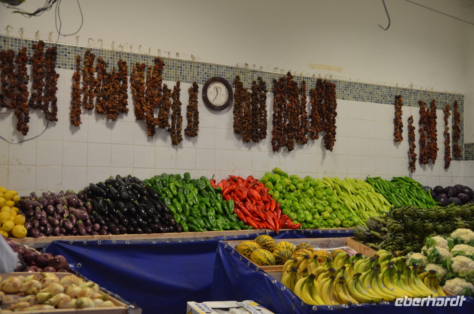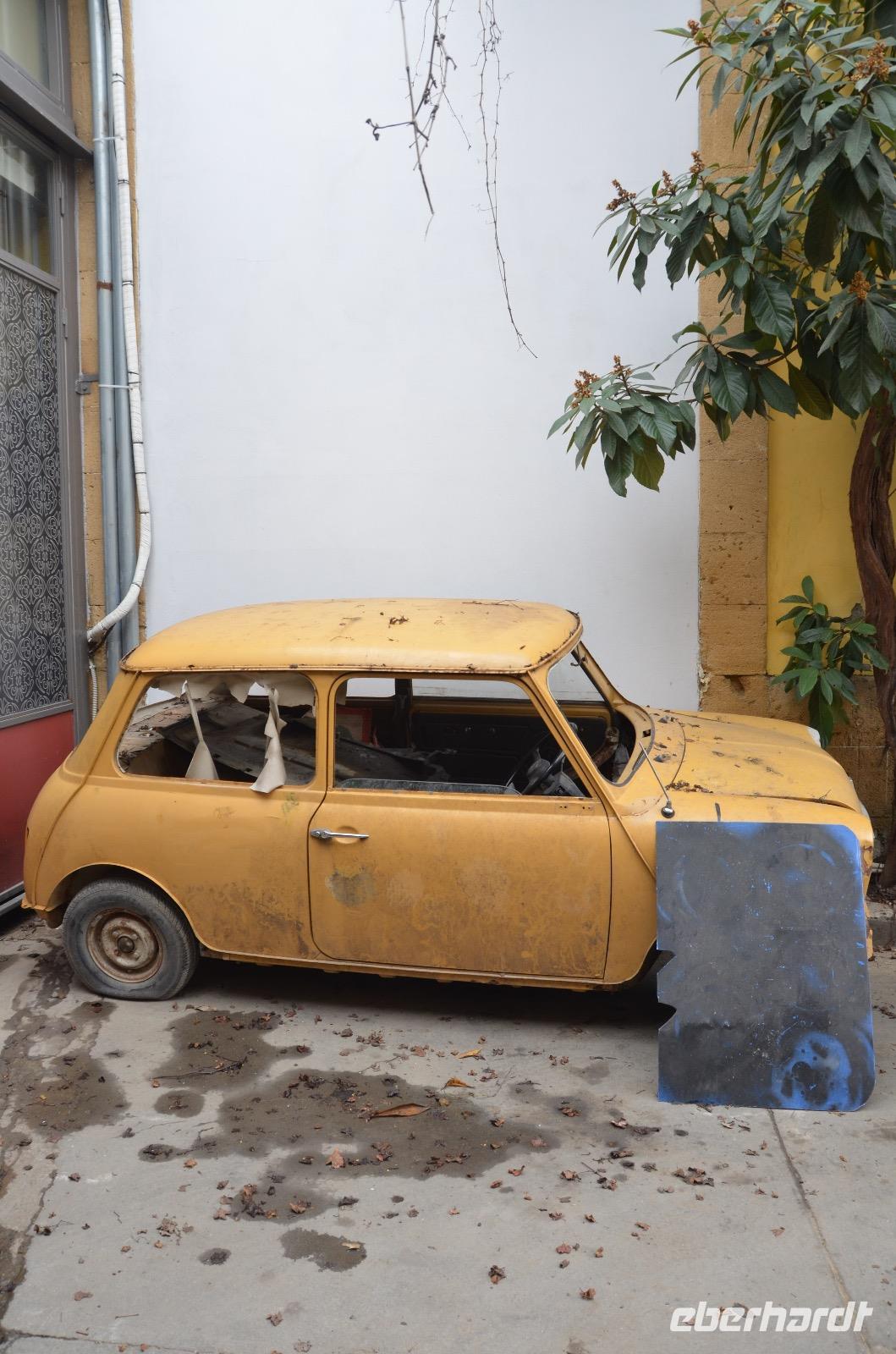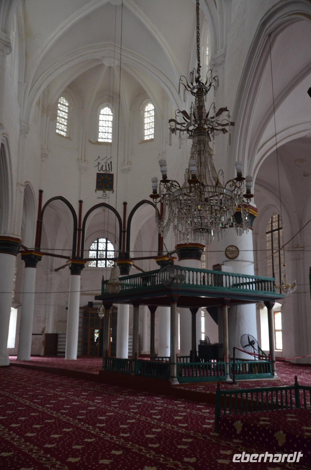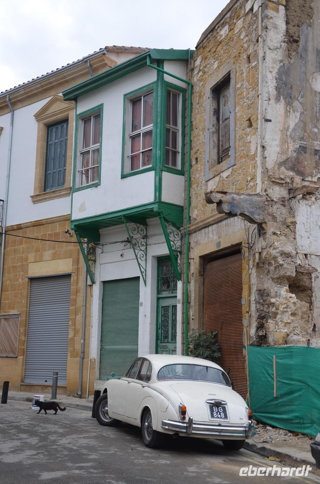 Bedächtigt starteten wir unseren Spaziergang durch Nikosia. Wir bummelten entlang der Ausgrabungen eines französischen Palastes aus dem 12. Jahrhundert, dem neuen Rathaus, welches ein Glasgestell über dem alten Gebäude darstellt und kommen schließlich zur ehemaligen Geschäftsstraße. Sehr verlassen und bedrückend wirken die Gassen. Nur noch ein paar alte Gewerke, wie Tischler haben sich hier niedergelassen. Immer näher kommen wir dem Grenzgebiet und einige fühlen sich an das ehemals geteilte Berlin erinnert. Mittlerweile ist Nikosia die letzte geteilte Hauptstadt Europas. Wir überquerten die Demarkationslinie und befanden uns schließlich im türkischen Teil der Stadt. Hier stieß Cecile zu uns dazu, die uns vorschriftsgemäß in Nordzypern begleiten musste. Auf der Einkaufsstraße entdeckten wir einen Kleidungsladen am nächsten. Das komplette Gegenteil von den grenznahen Straßen im Süden der Stadt. Am Ende der Fußgängerzone imponiert die ehemalige Sophienkathedrale. Wir ließen es uns natürlich nicht nehmen, das beeindruckende Bauwerk auch von innen zu besichtigen. Also zogen wir die Schuhe aus, um die jetzige Moschee zu betreten. Die gotische Kathedrale wurde von 1209 - 1326 erbaut. Als wir den Gebetsraum betraten fiel uns sofort die Einfachheit auf. Als Nikosia 1571 von den Osmanen besetzt wurde, ließen sie die Sophienkathedrale zu einer Moschee umbauen. Dabei wurden die bunten Glasfenster sowie alle Statuen entfernt. Der Fliesenboden wurde mit Teppichboden beklebt und somit zerstört. Die Musterlinie auf dem Stoffbelag weist einem die Richtung nach Mekka. Direkt neben der Moschee befindet sich der ehemalige Gemüsemarkt, der auch heute noch als Verkaufshalle dient. Wir schlenderten entlang der Geschäfte und waren beeindruckt von der Farbvielfalt der Obst- und Gemüsesorten. Von hier aus gingen wir weiter zur Karawanserei. Im Innenhof der ehemaligen Herberge, kamen wir zum ersten Mal in den Genuss von Antonis Schnaps und einer süßen Leckerei. Hier hatten wir Zeit, um ein paar Mitbringsel zu besorgen oder durch die angrenzenden Gassen zu spazieren.