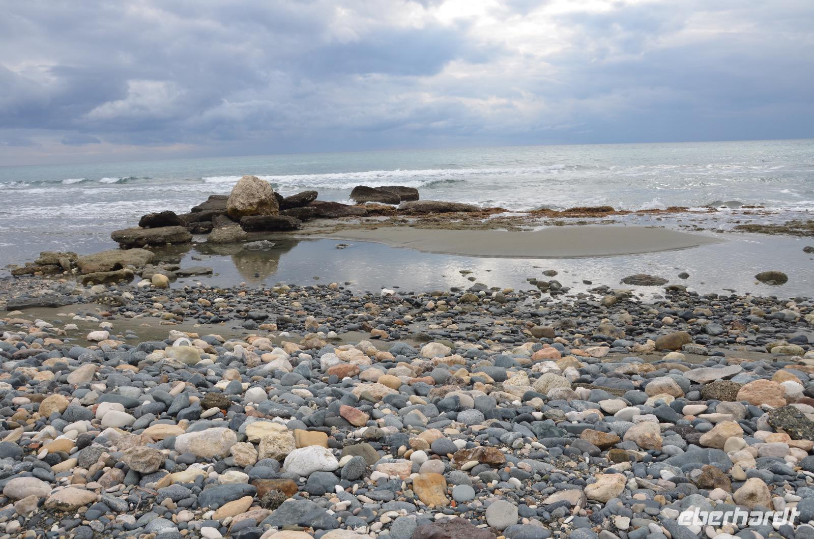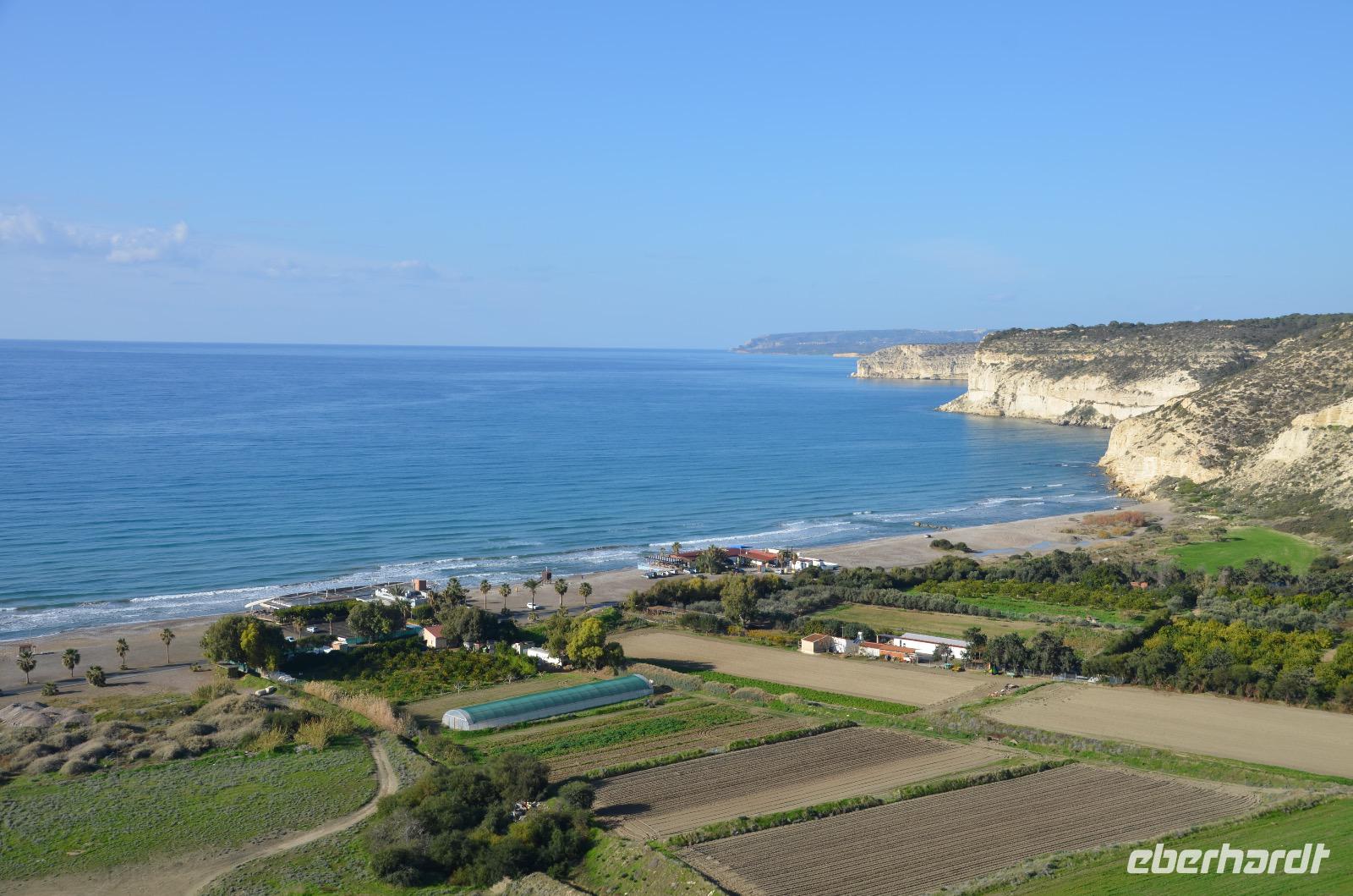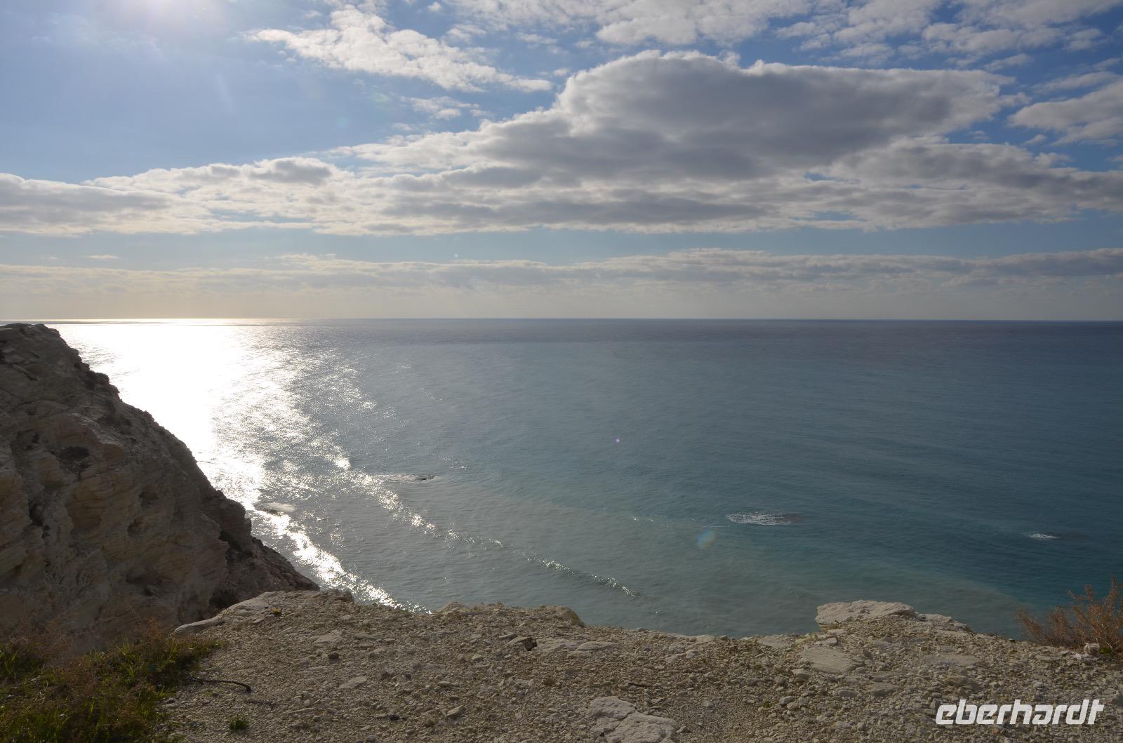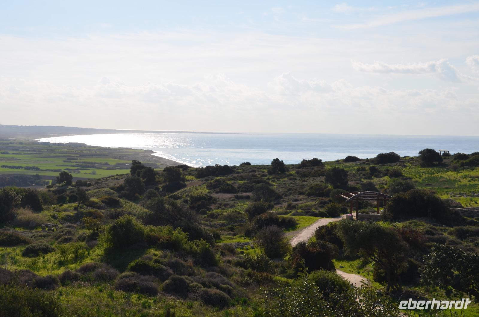 Unser erster Fotostopp heute war der Fels der Aphrodite. Bei strahlendem Sonnenschein hatten wir einen tollen Blick auf den Geburtsort der Göttin der Liebe, Fruchtbarkeit und Schönheit. Die Tochter des Uranus bekam den Namen der Schaumgeborenen, da sie genau an dieser Stelle 8000 v. Chr. aus dem Wasser empor gestiegen sein soll. Der Berühmte Stein stammt ursprünglich aus Afrika, da sich hier vor Zypern die afrikanische Platte immer weiter unter die Insel schiebt.