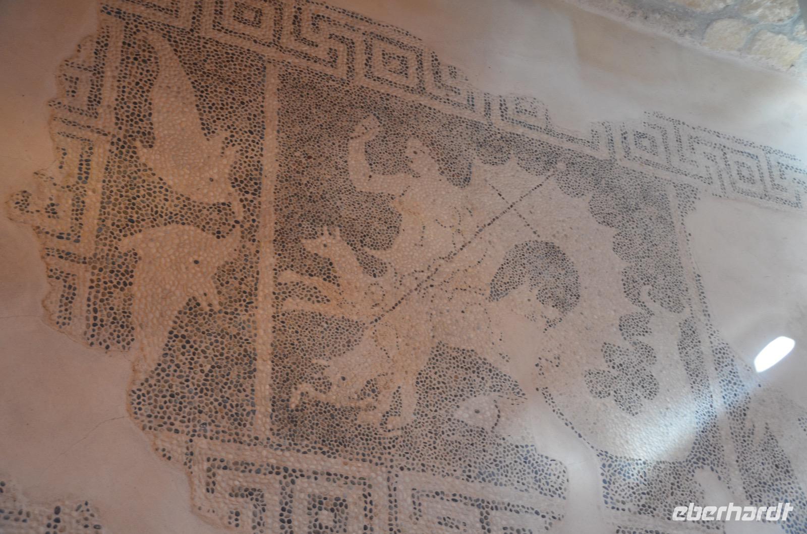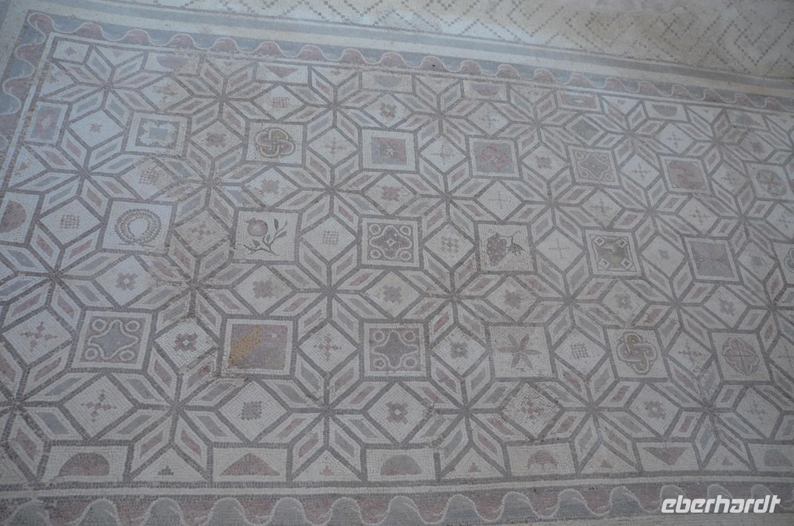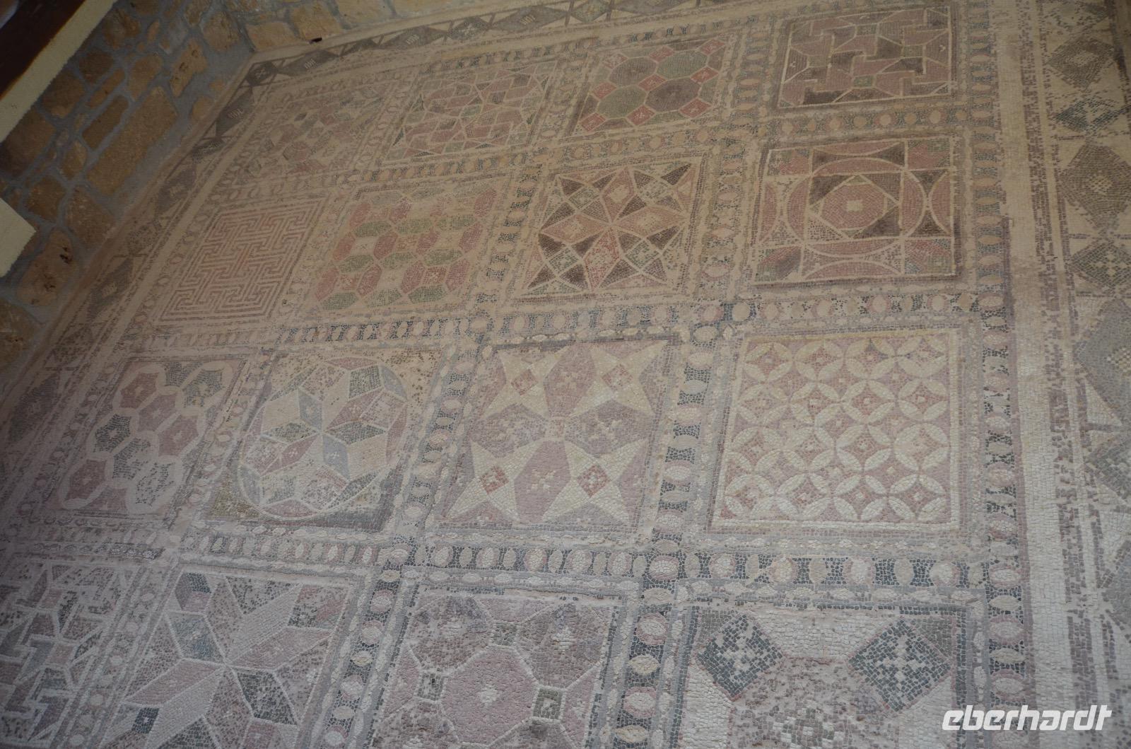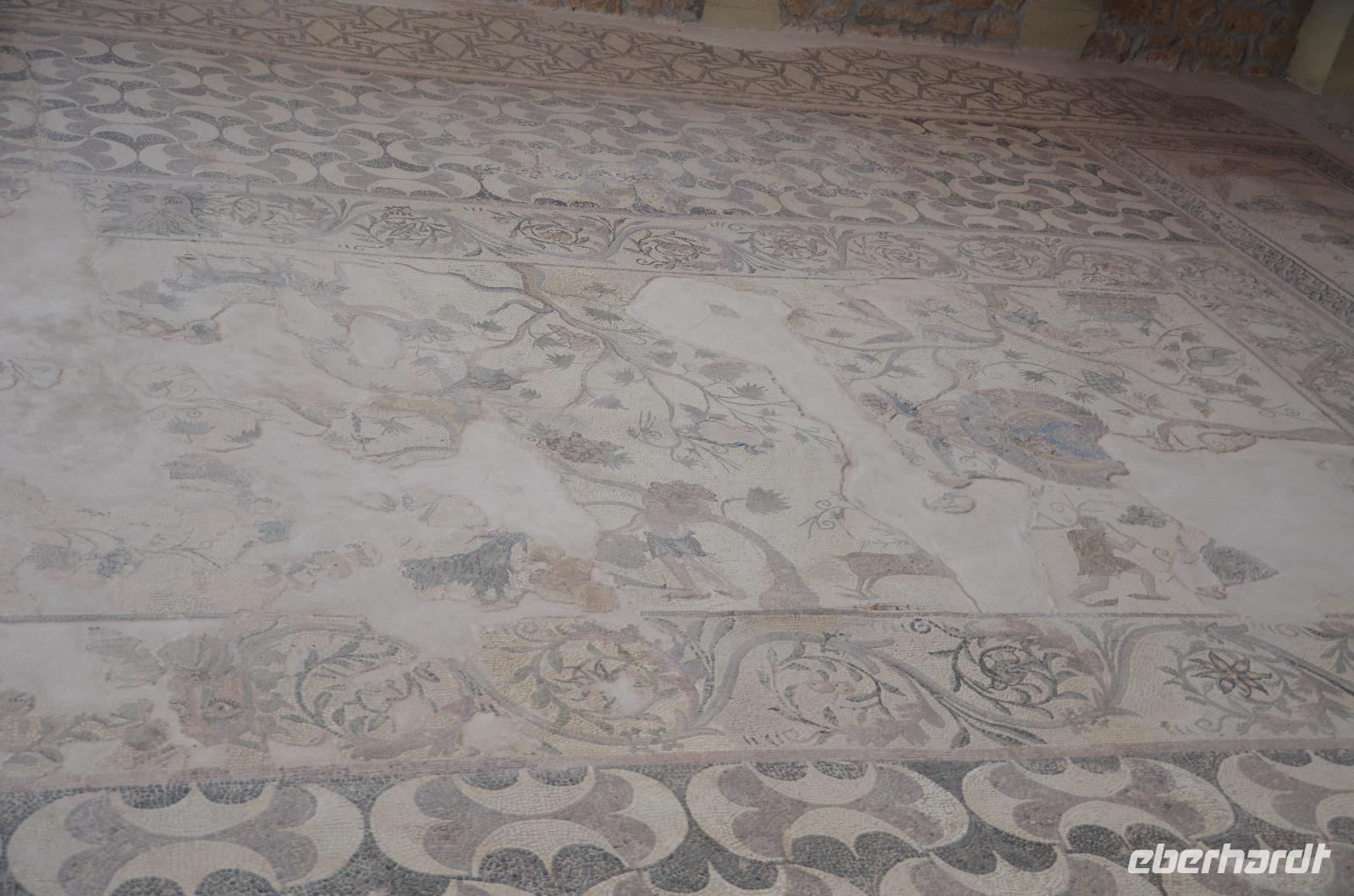 Zum Schluss schauten wir uns die Überreste einer riesigen Villa mit Badekomplex an. Einige der Bodenmosaike waren noch zu erkennen. Eines der Mosaike stammt aus dem 4. Jahrhundert nach Christus und man sagt, dass hier das erste Mal das Wort Christus schriftlich festgehalten wurde.