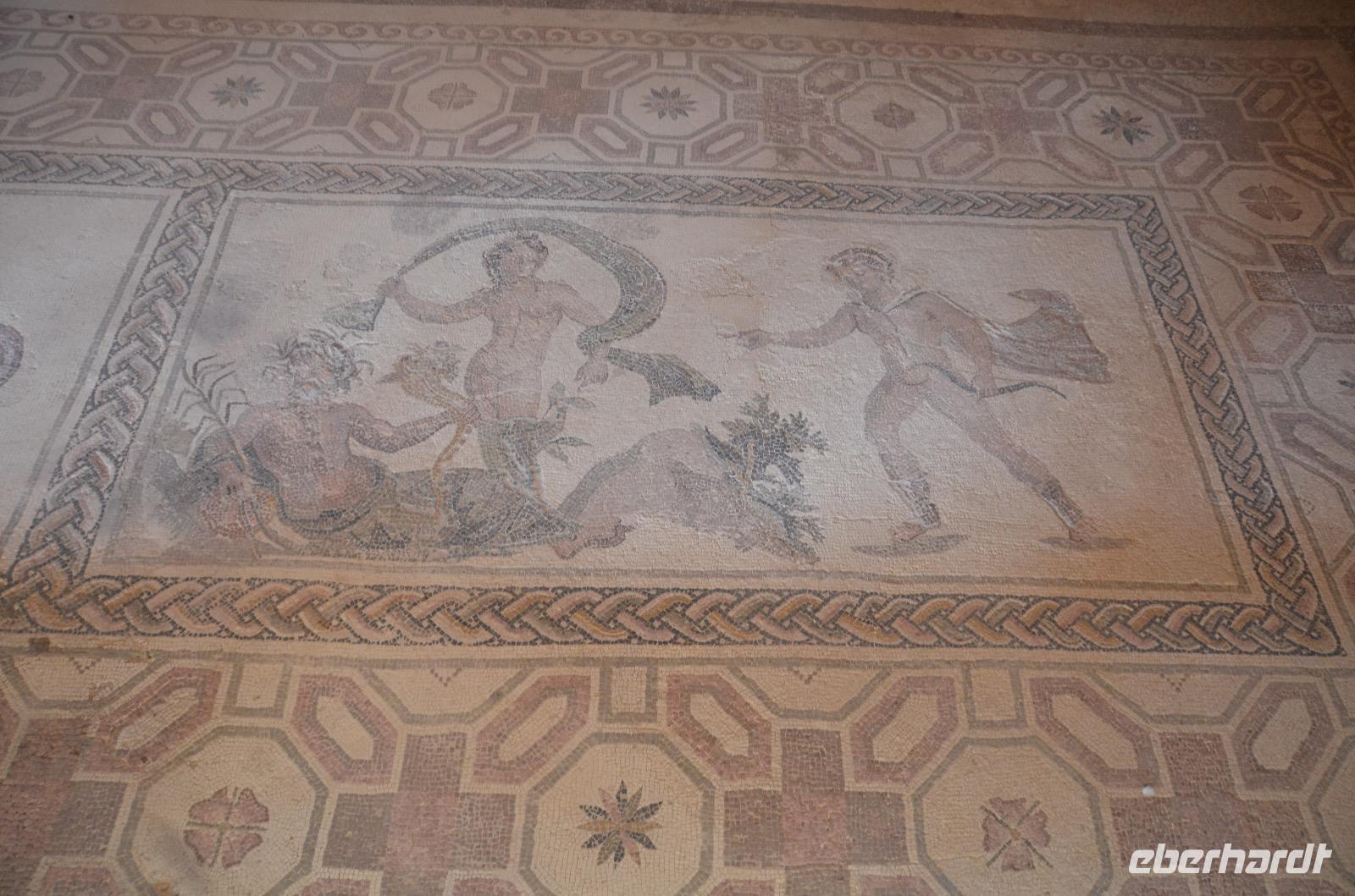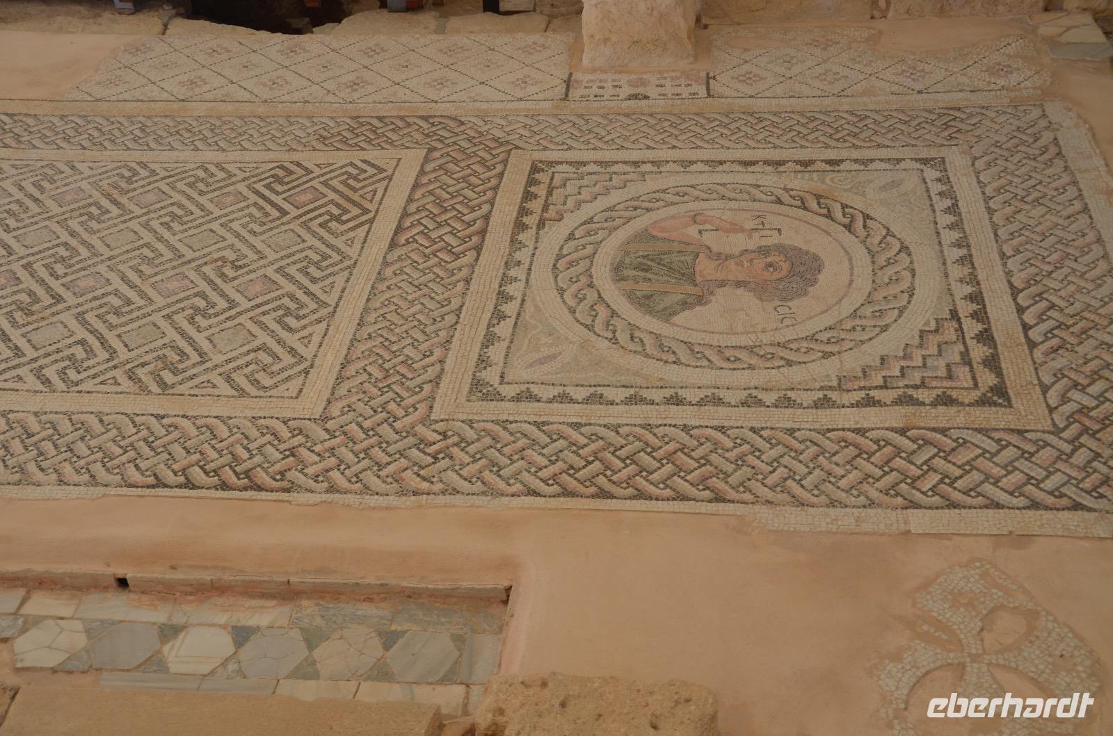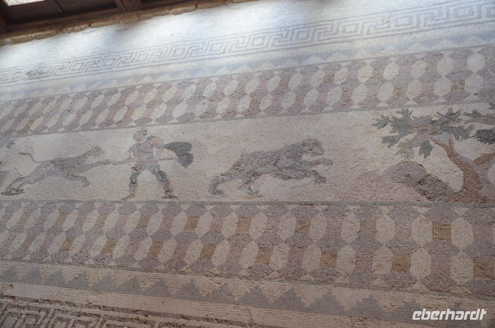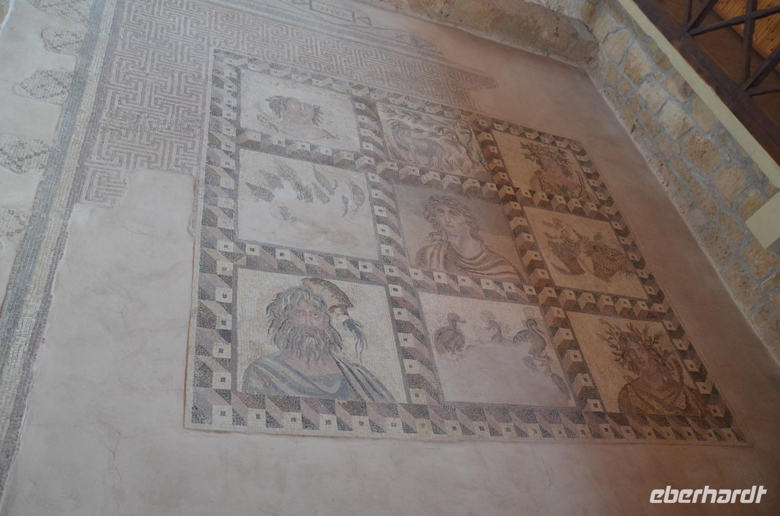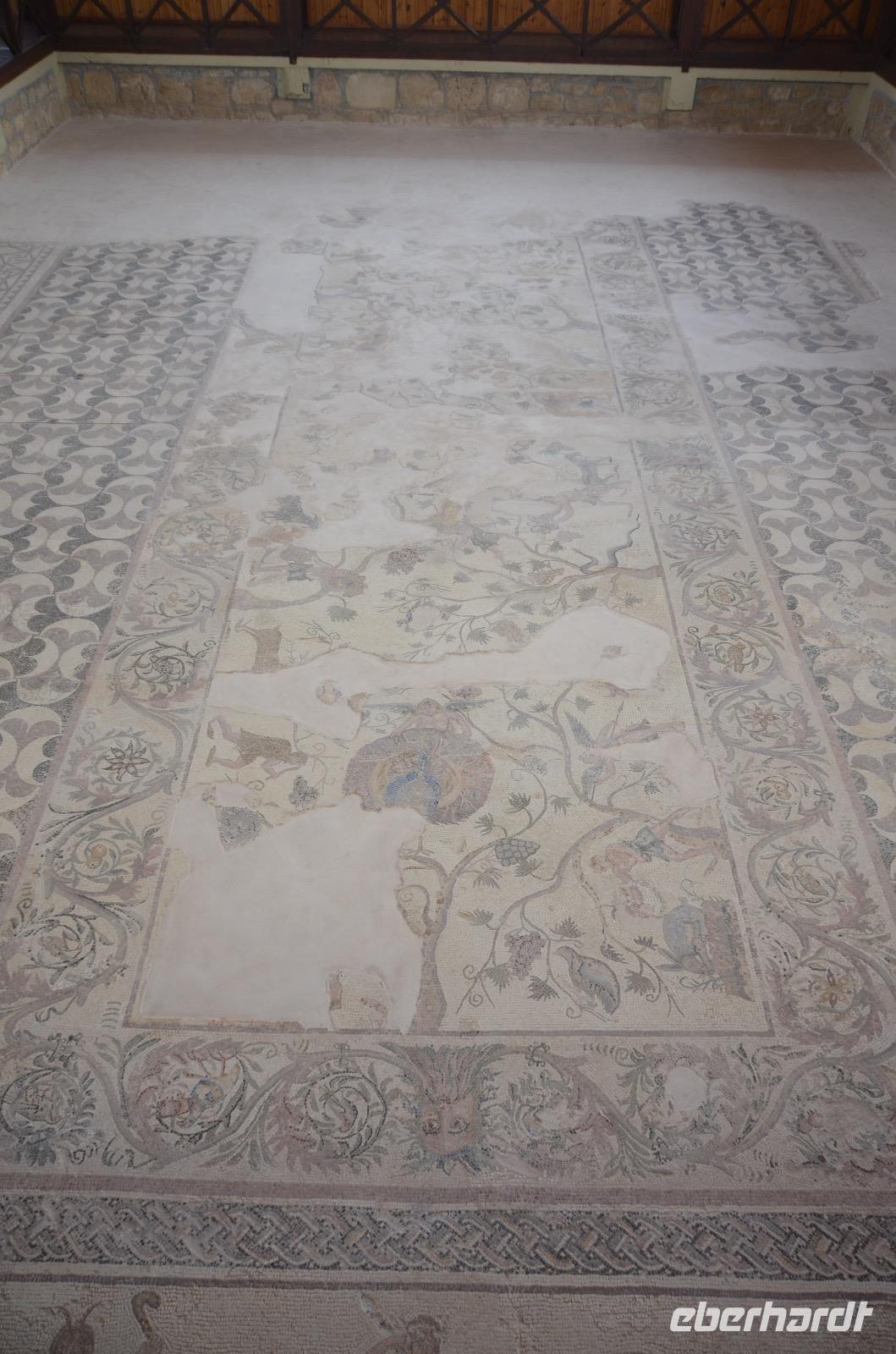 Zum Schluss schauten wir uns die Überreste einer riesigen Villa mit Badekomplex an. Einige der Bodenmosaike waren noch zu erkennen. Eines der Mosaike stammt aus dem 4. Jahrhundert nach Christus und man sagt, dass hier das erste Mal das Wort Christus schriftlich festgehalten wurde.