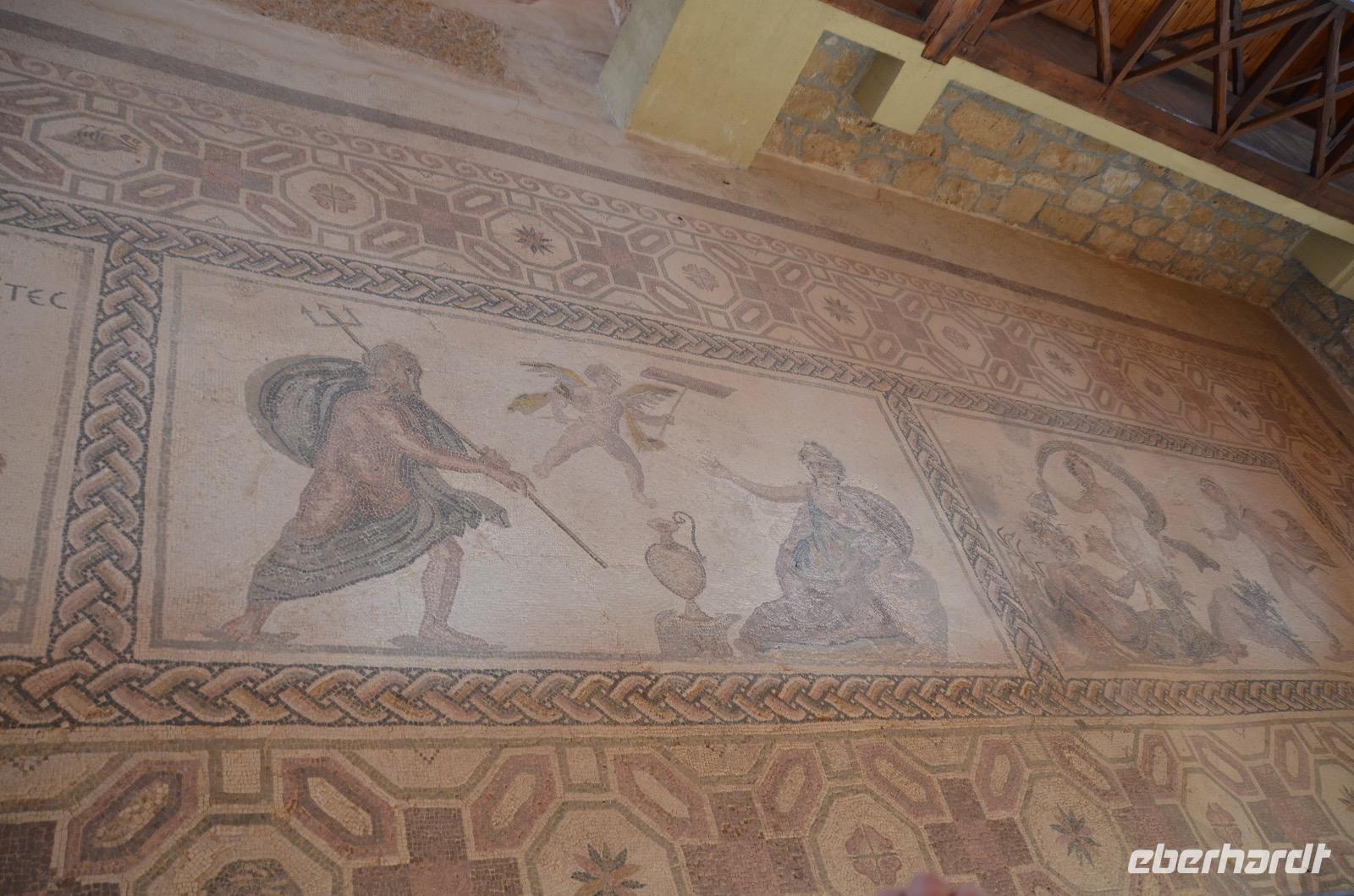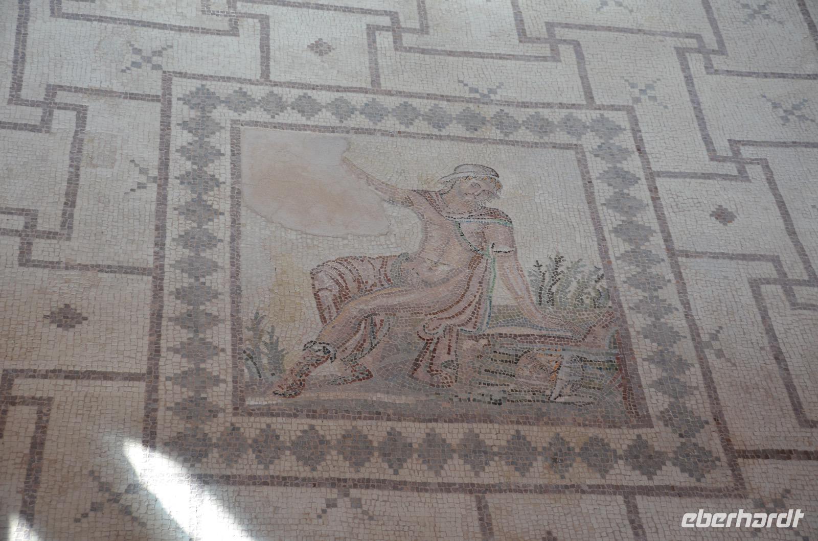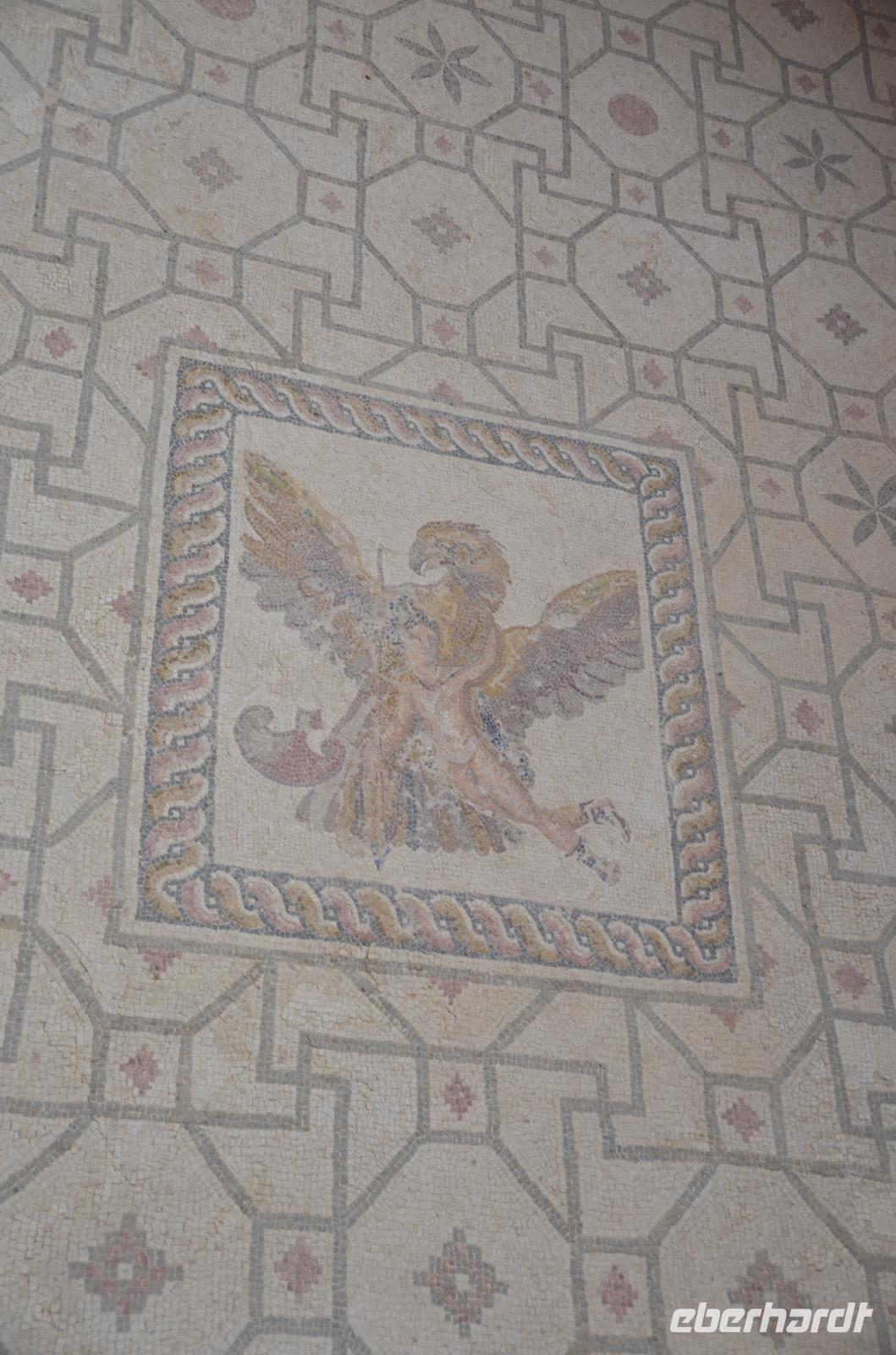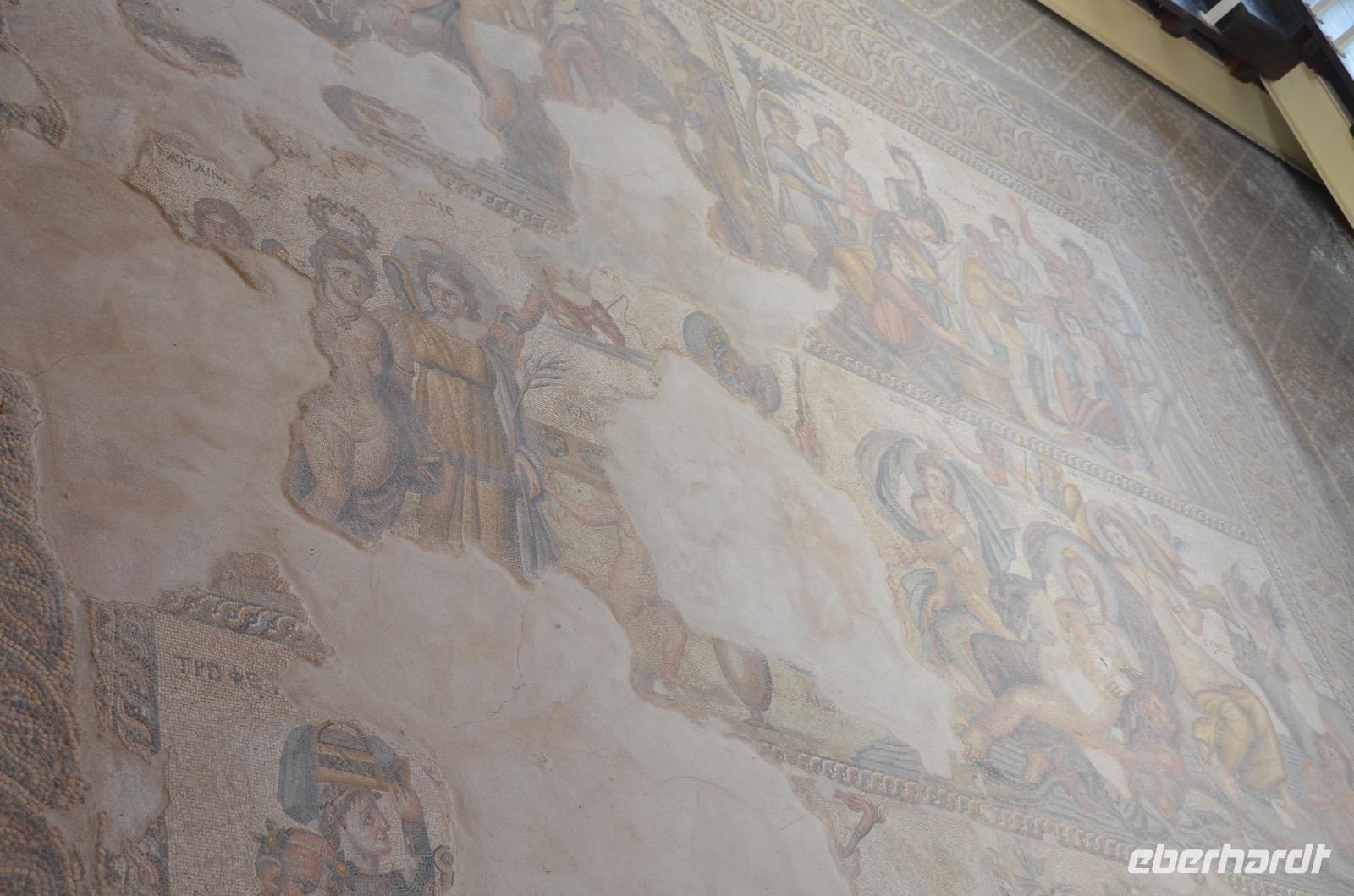 Zum Schluss schauten wir uns die Überreste einer riesigen Villa mit Badekomplex an. Einige der Bodenmosaike waren noch zu erkennen. Eines der Mosaike stammt aus dem 4. Jahrhundert nach Christus und man sagt, dass hier das erste Mal das Wort Christus schriftlich festgehalten wurde.