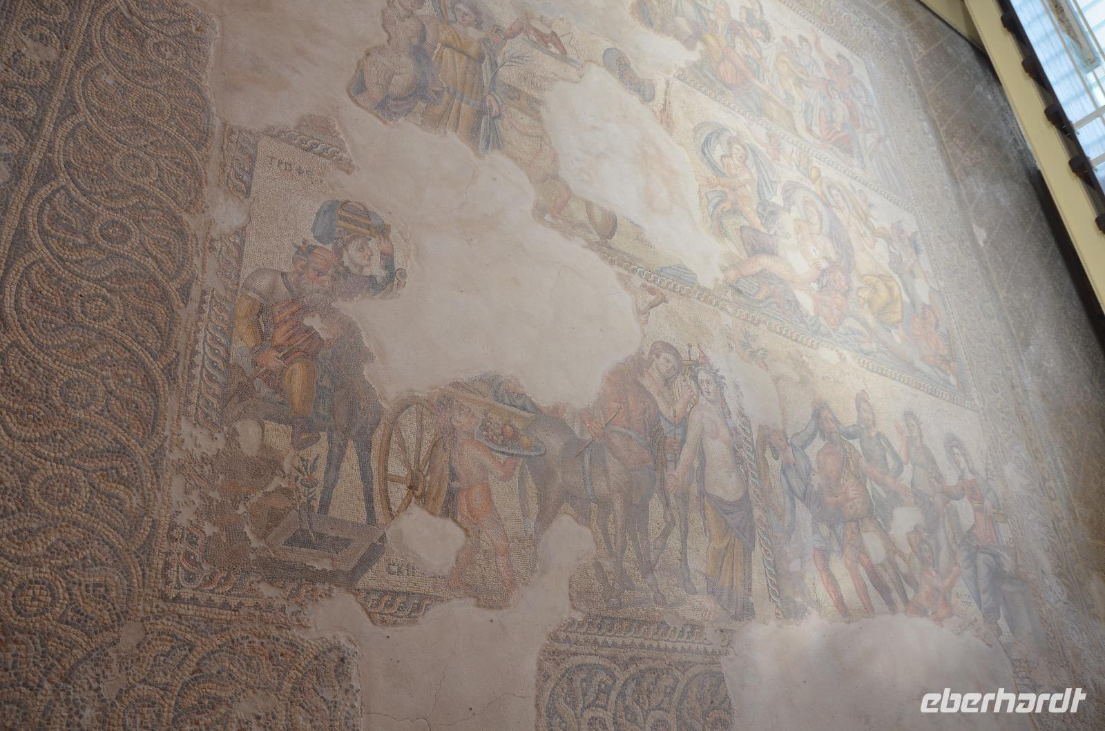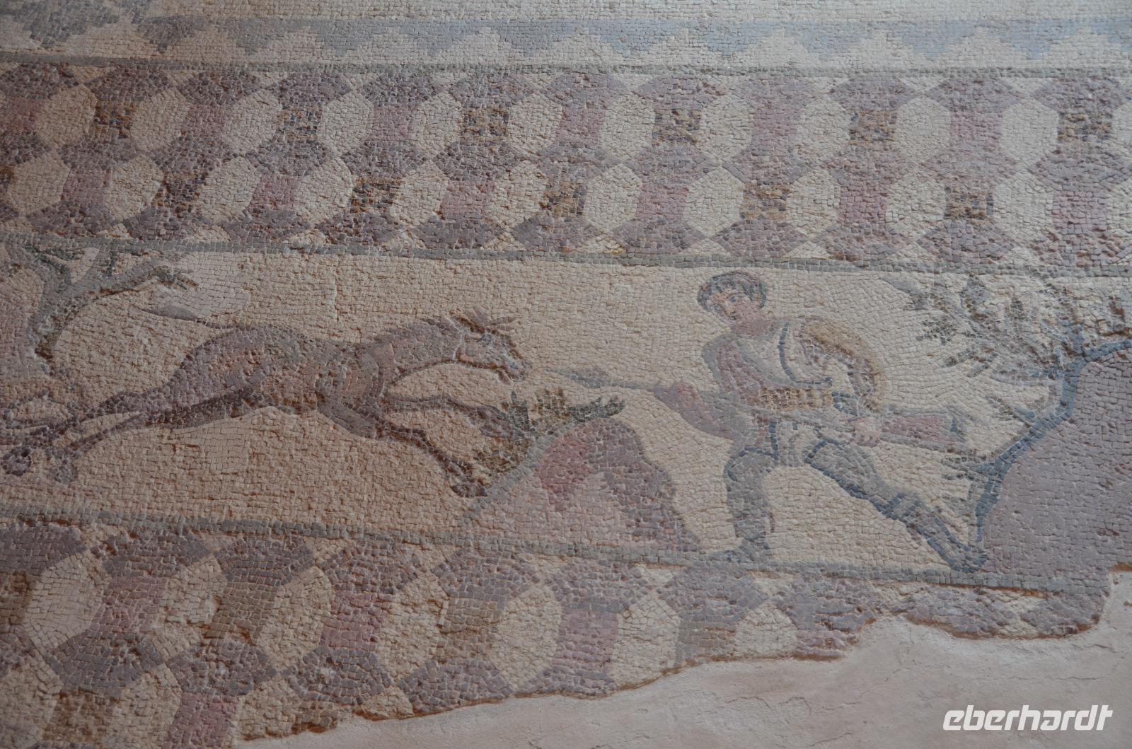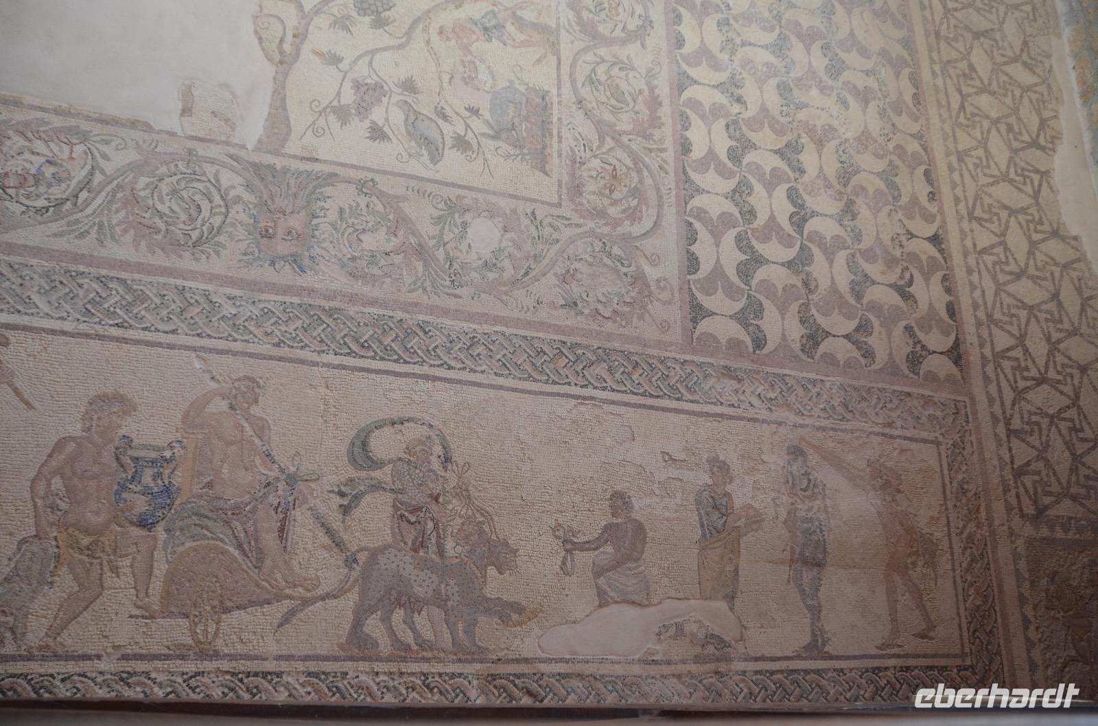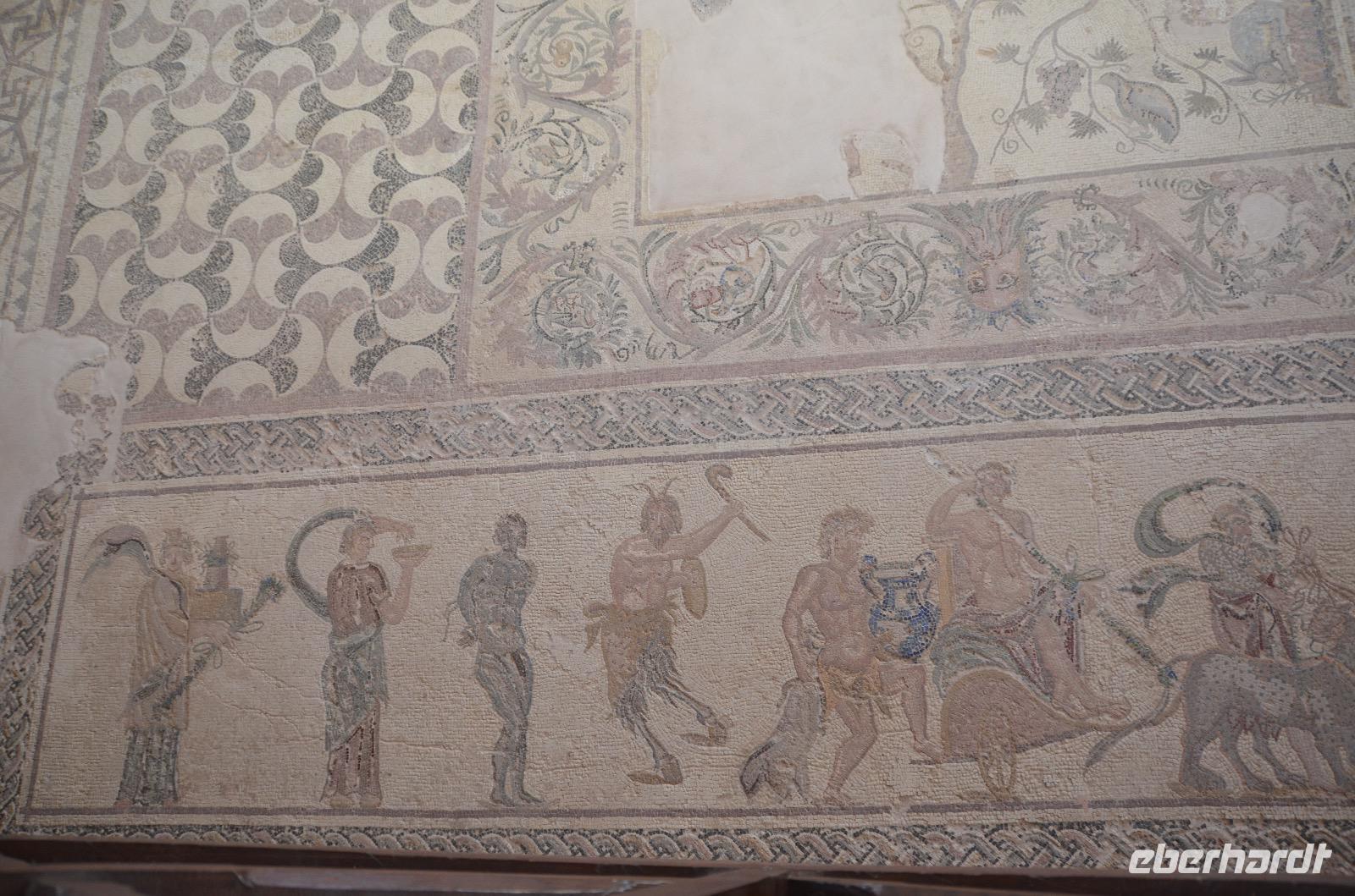 Zum Schluss schauten wir uns die Überreste einer riesigen Villa mit Badekomplex an. Einige der Bodenmosaike waren noch zu erkennen. Eines der Mosaike stammt aus dem 4. Jahrhundert nach Christus und man sagt, dass hier das erste Mal das Wort Christus schriftlich festgehalten wurde.