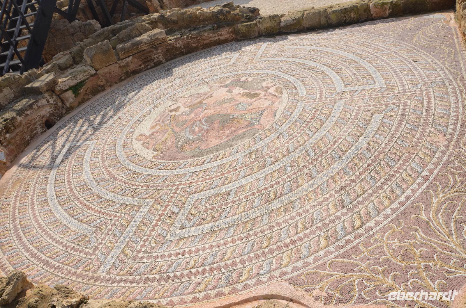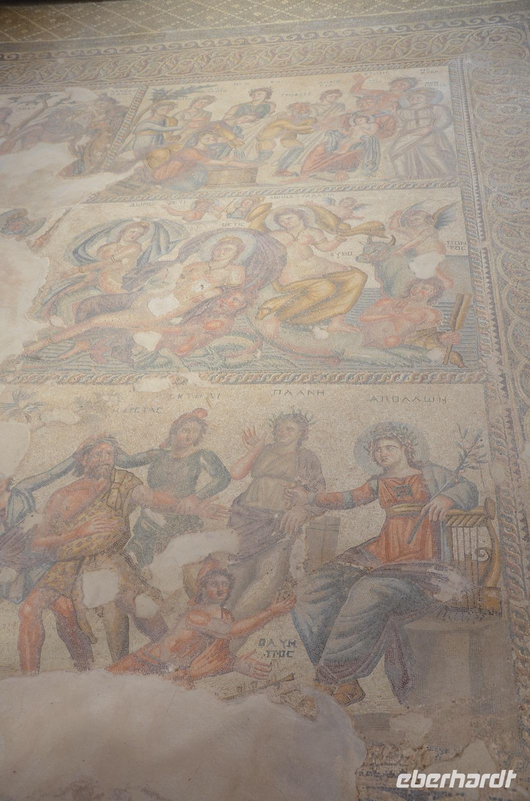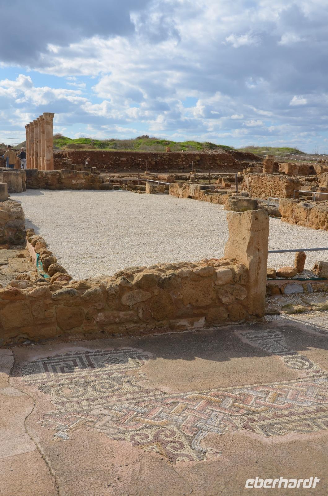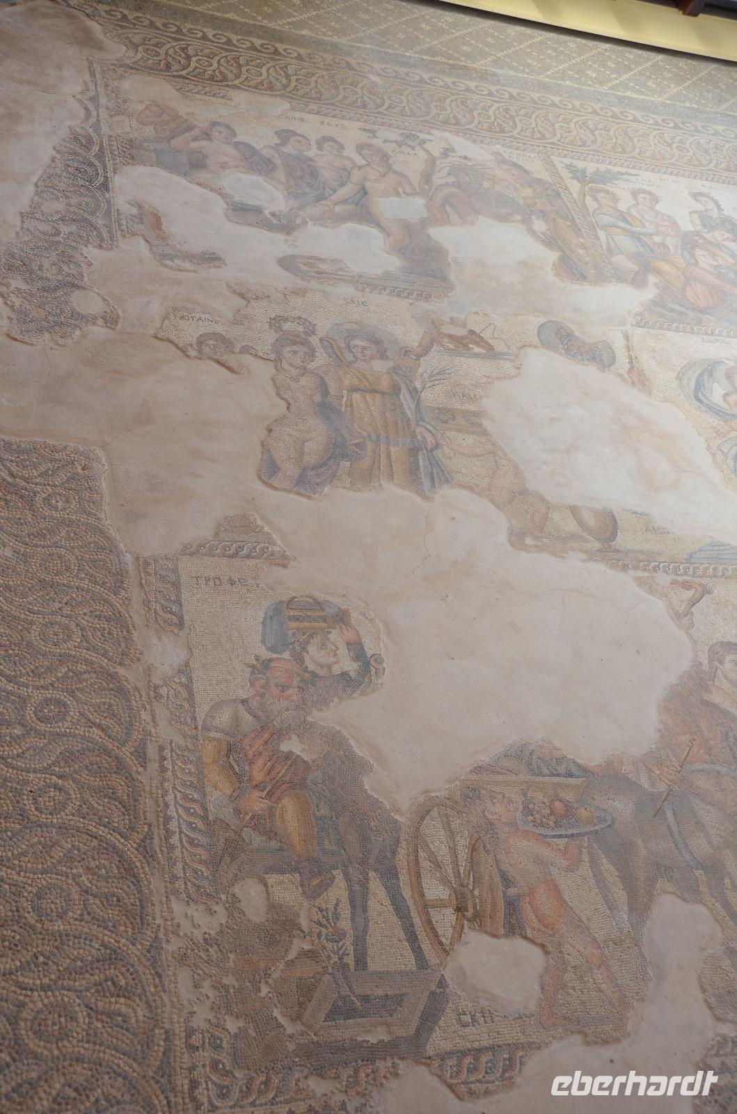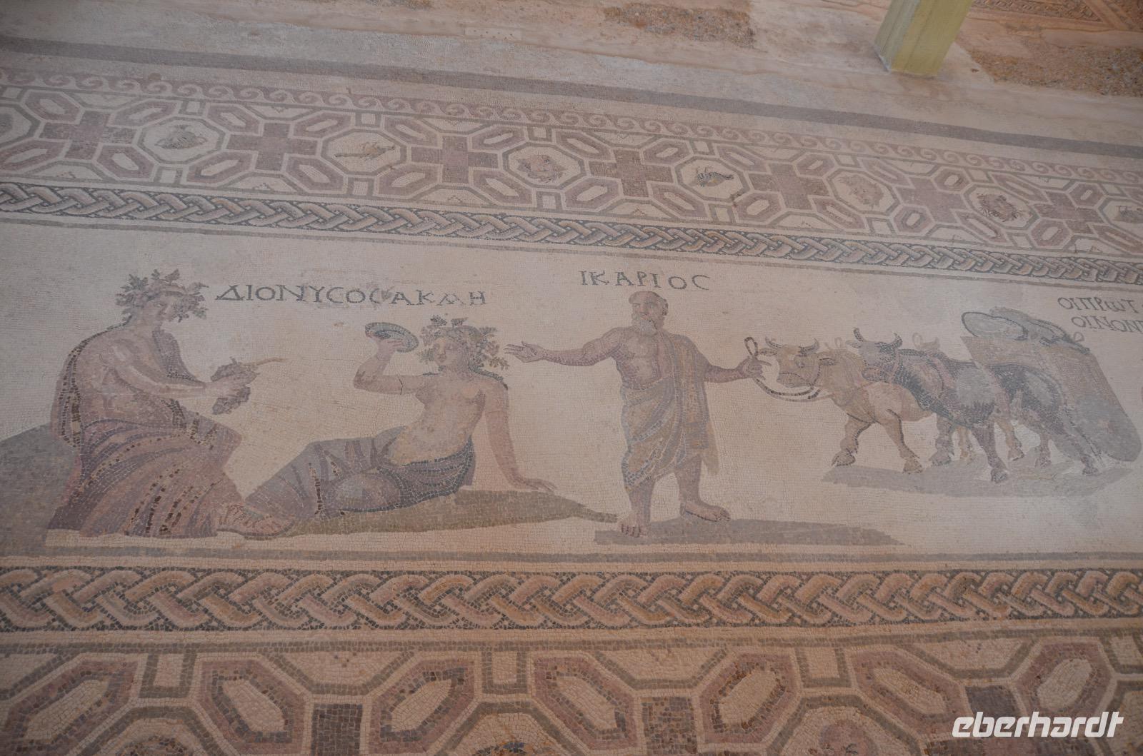 Bei herrlichem Sonnenschein erkundeten wir weiter das archäologische Gelände und ließen es uns nicht nehmen, auch noch das Haus des Aion zu besuchen. Das große Bodenmosaik stammt aus dem 4. Jahrhundert nach Christus, was man an den vielen unterschiedlichen Farben der Steine und somit den ausgedrückten Emotionen in dem Bild erkennen kann. Man vermutet, dass der Raum später als Synagoge genutzt wurde.