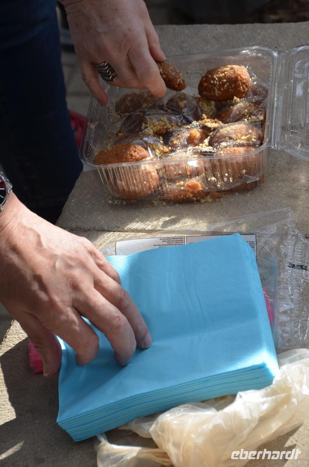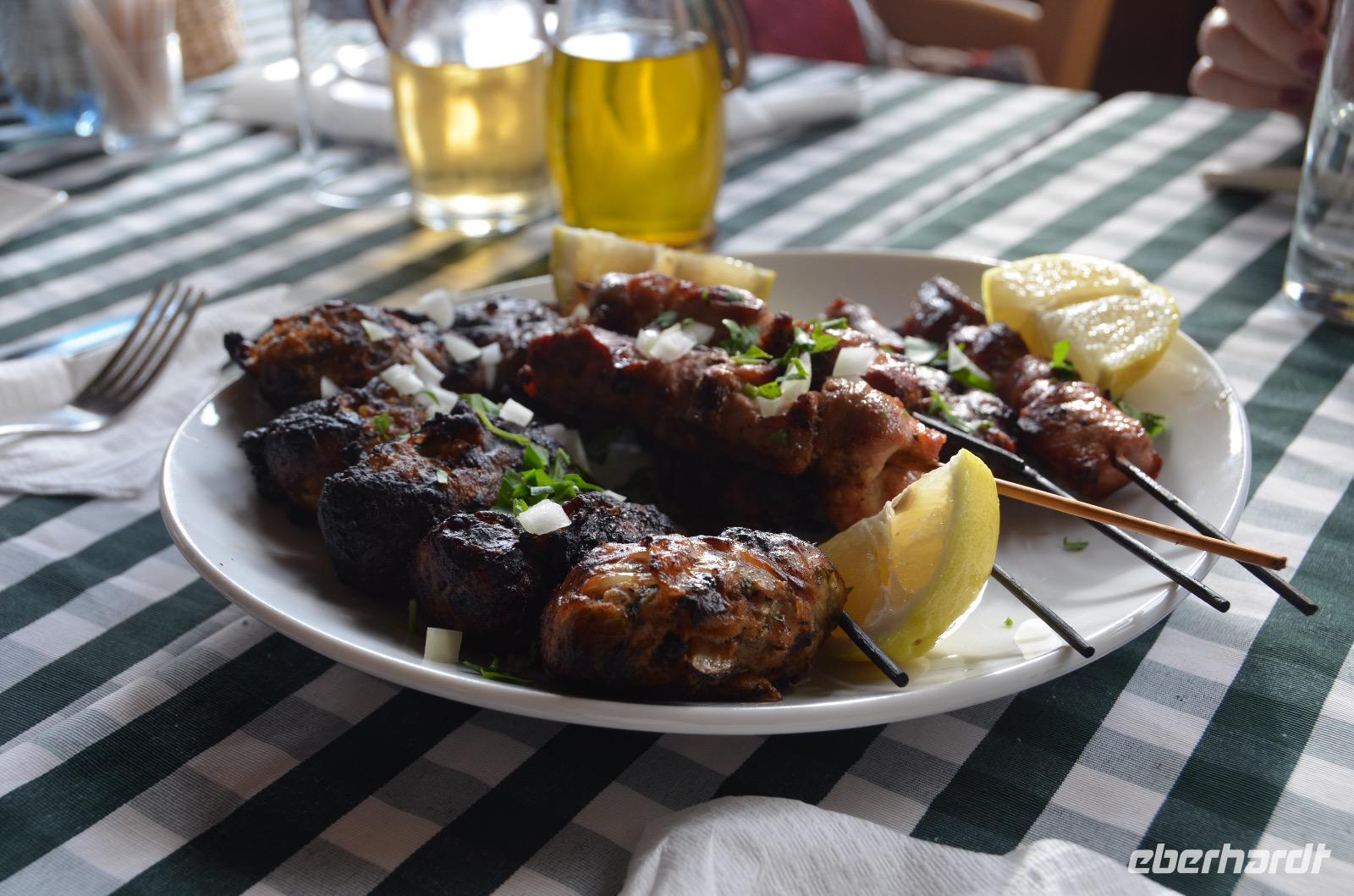 Im angrenzenden Souvenirshop deckten wir uns mit Mitbringseln und typischen Süßigkeiten ein, bevor es für uns zum Mittagessen ging. Es gab Souvlaki, griechischen Salat und Pitabrot. Ein typisches Gericht auf Zypern. Zum Nachtisch bekamen wir Grießkuchen mit Orangengeschmack.