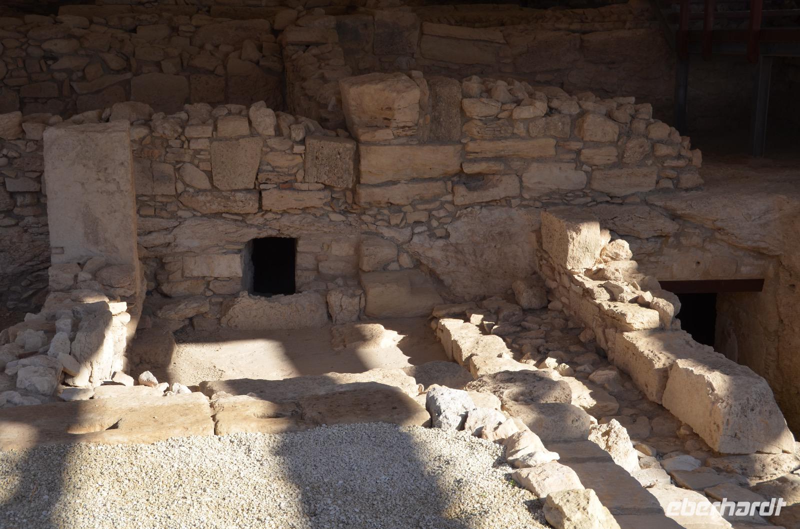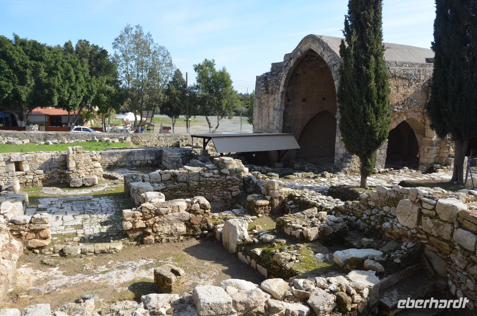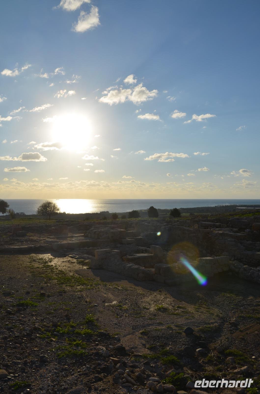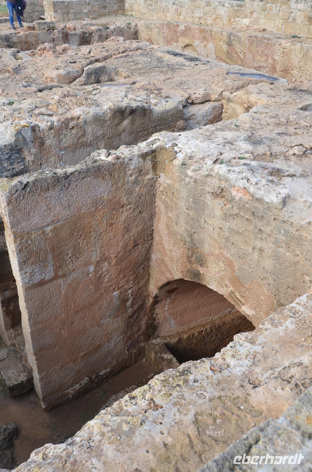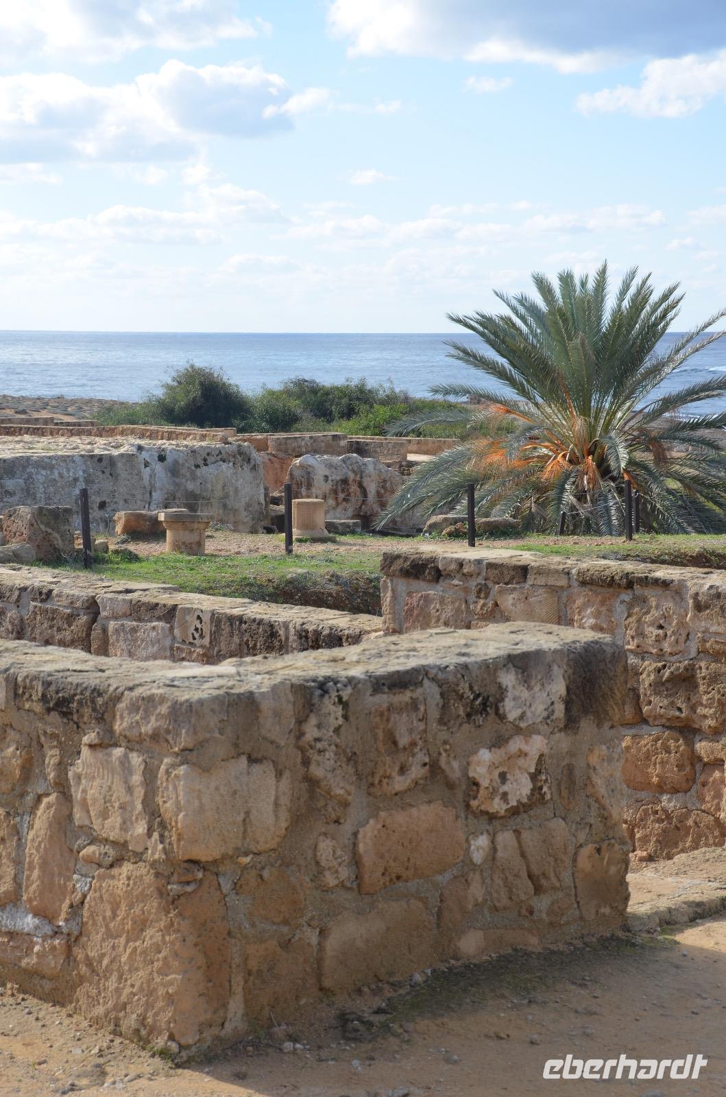 Wir spazierten zu den Resten des Tempels der Aphrodite. Das tat sehr gut nach dem reichhaltigen Essen. 1600 Jahre v. Chr. befand sich an dieser Stelle Altpaphos. Der einstige Tempel an dieser Stelle diente nicht nur als religiöses, sondern auch als Verwaltungszentrum. Wir schlenderten die Ausgrabungsstelle entlang und besuchten die kleinen Ausstellungsräume.