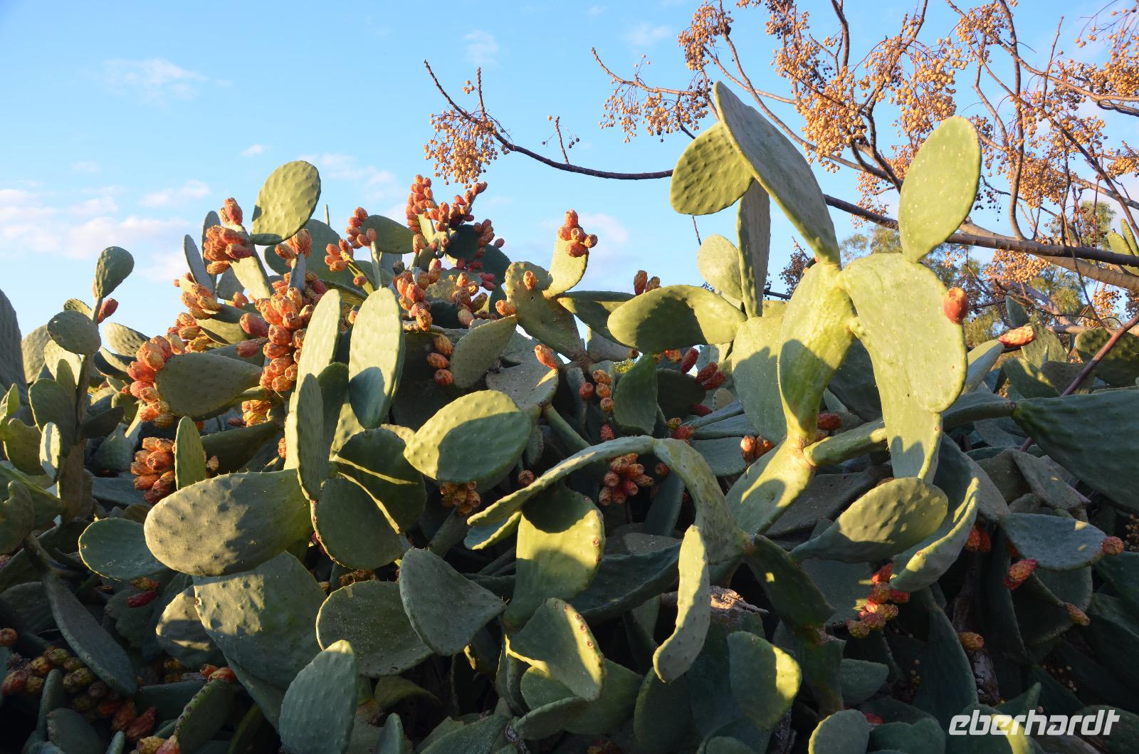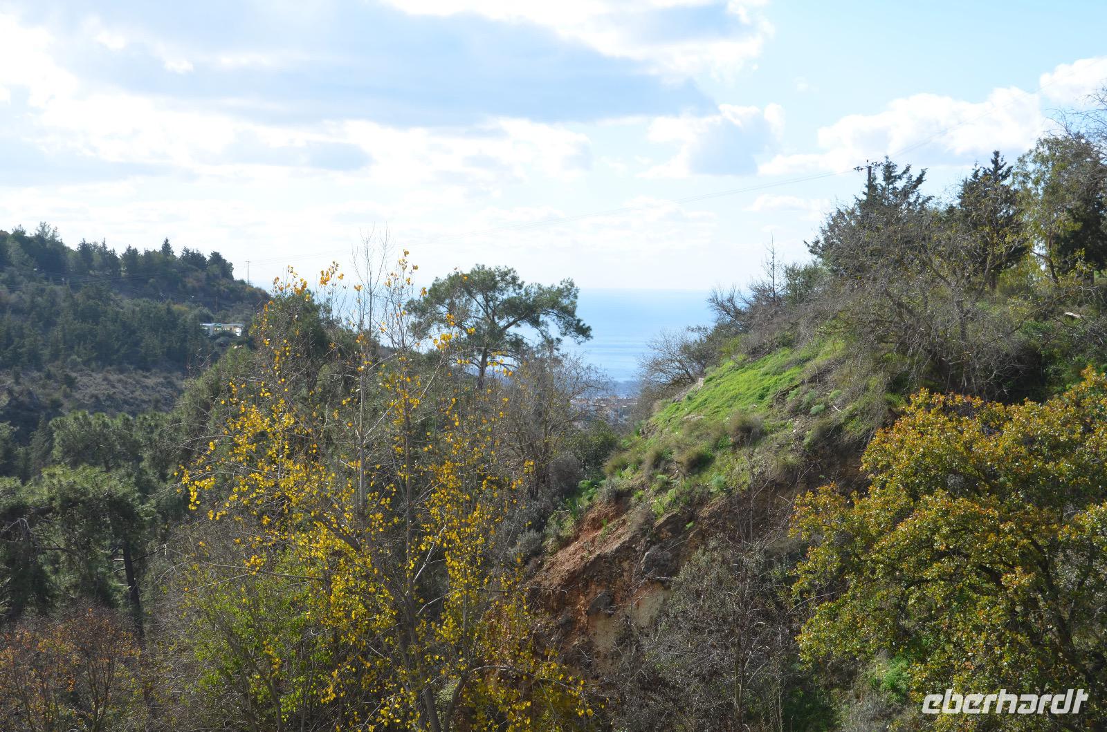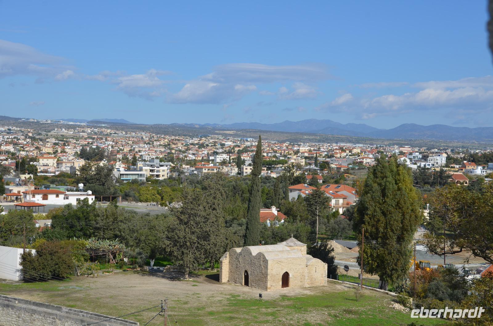Auf unserem Weg weiter nach Paphos entdeckten wir tragende Mandarinen- und Avocadobäume. Wie die grünen und blühenden Pflanzen sowie bunten Obstbäume zu dieser regenreichen Zeit gar nicht erahnen lassen, herrscht auf Zypern eine starke Wasserknappheit. Um das Problem in den Griff zu bekommen, entstanden in den letzten Jahren 4 Entsalzungsanlagen sowie eine neue dreistufige Kläranlage für die Bewässerung in der Landwirtschaft. Daneben werden vor allem in den Sommermonaten Sparmaßnahmen, wie nur 2 Mal in der Woche Leitungswasser, ergriffen. Für diesen Zeitraum sieht man auf den meisten Dächer die blauen Wassertanks.