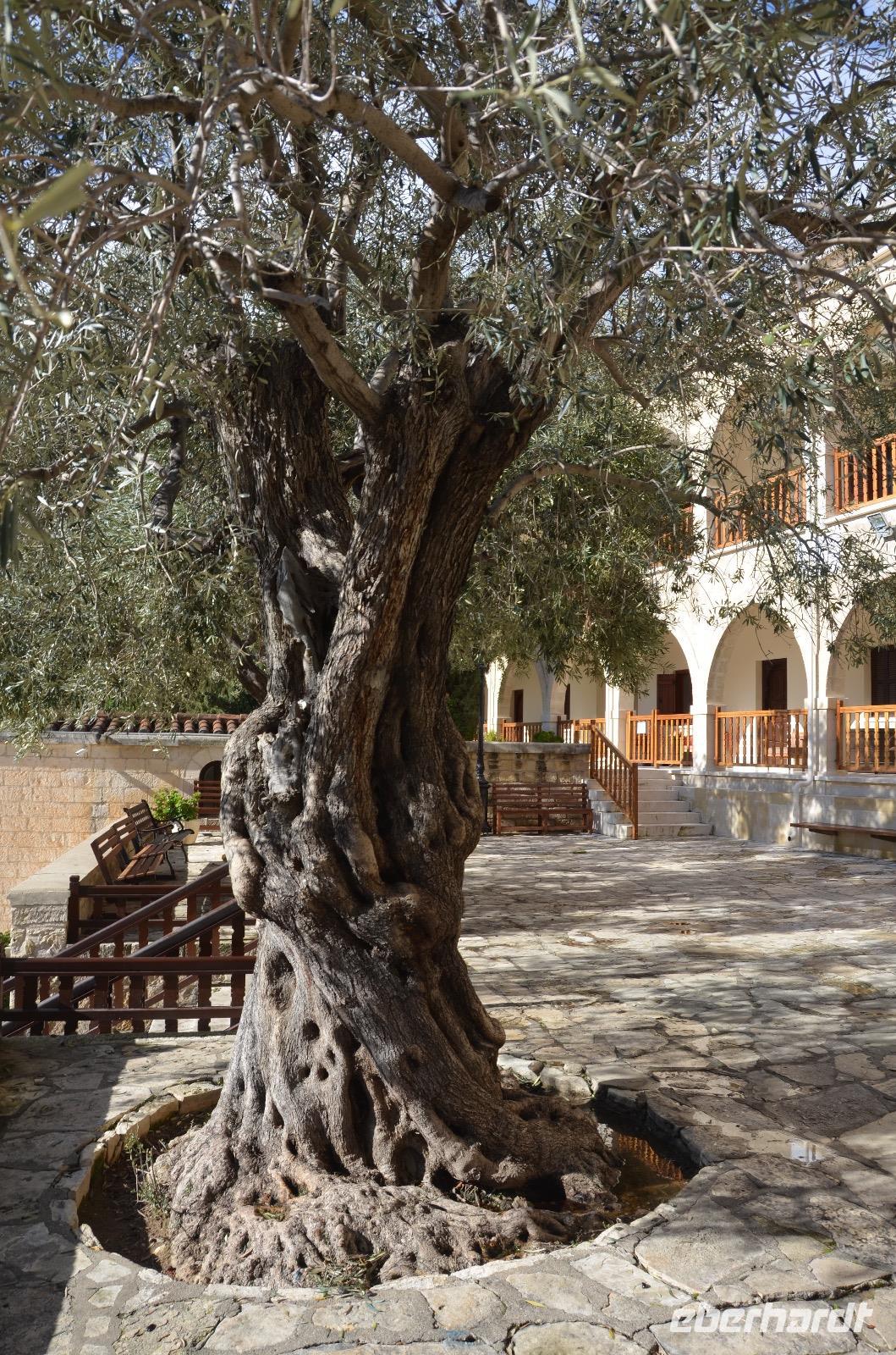 Heute ging es für uns gen Westen. Auf der Fahrt kamen wir an vielen der neu entstanden Luxusvillen sowie Hochhäusern vorbei, von welchen in den nächsten Jahren noch mehrere entstehen sollen. Auf den naturgeprägten Strecken, entdeckten wir einige Johannisbrotbäume, deren Schoten für viele Leckereien, wie Sirup, Marmelade und überzogene Nüssen genutzt werden. Auch an den Reben der weißen Tafeltraube kamen wir vorbei. Diese werden im Juli geerntet und vor allem zu Rosinen verarbeitet. Die Blätter der Pflanze nutzt man für die mit Reis und Gehacktem gefüllten Weinblätter. Aber unübersehbar sind die Olivenhaine an den Straßenseiten. Die Olive hat eine bedeutende Rolle in Zypern. Man serviert sie zu jeder Mahlzeit und gekocht wird mit Olivenöl. Die meisten Zyprioten besitzen mindestens einen eigenen Olivenbaum.