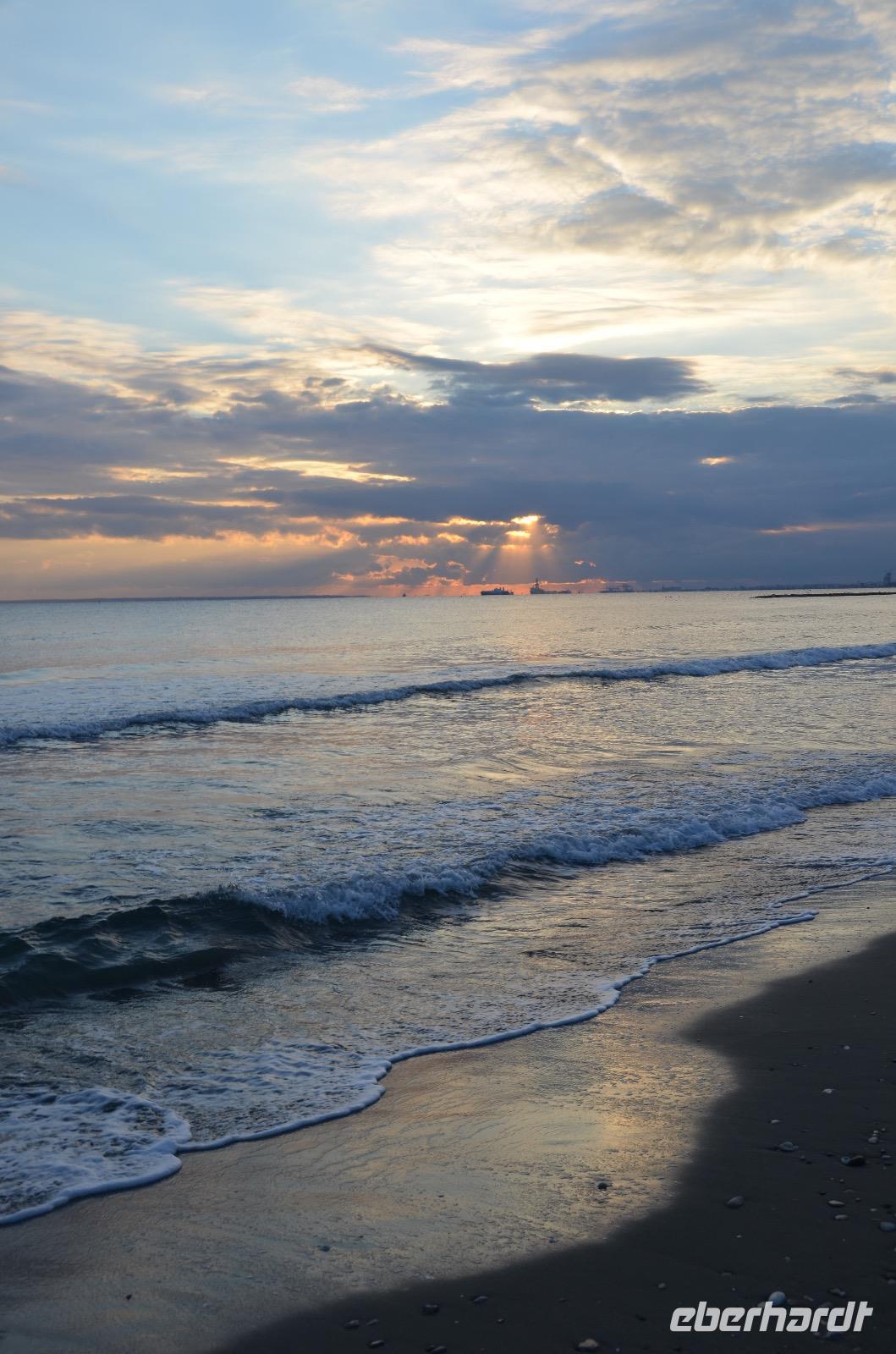 Bei einem kurzen Gang durch die Anlage, entdeckten wir die ersten Annehmlichkeiten, die das 4-Sterne-Hotel zu bieten hat, wie den Wellnessbereich mit Innenpool, die saftig grüne Gartenanlage mit Palmen, Liegen und Außenpool sowie der Weg zur Strandpromenade. Bevor die Zimmer bezugsfertig waren, hatten wir die Möglichkeit während eines ersten Spaziergangs am Meer entlang, die Umgebung zu erkunden. Der Tag stand allen zur freien Verfügung, um im Hotel zu entspannen oder unterwegs ein paar schöne Fotomotive zu entdecken. Bei einem gemeinsamen Abendessen ließen wir den ersten Tag zusammen ausklingen.
