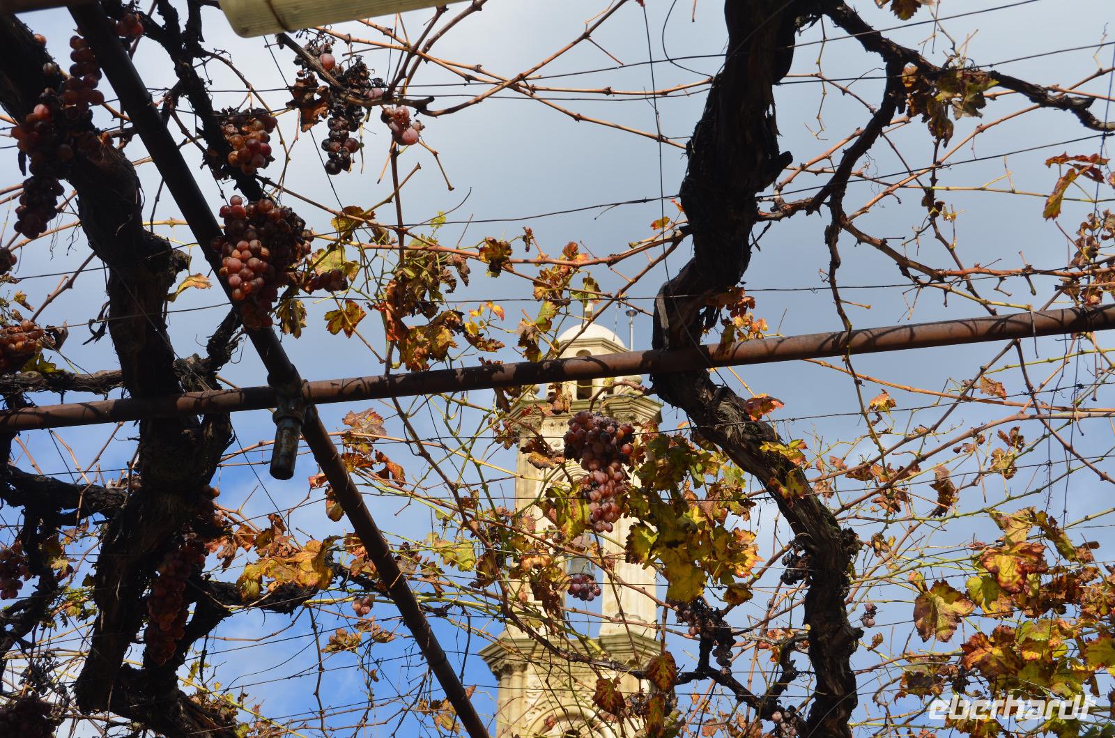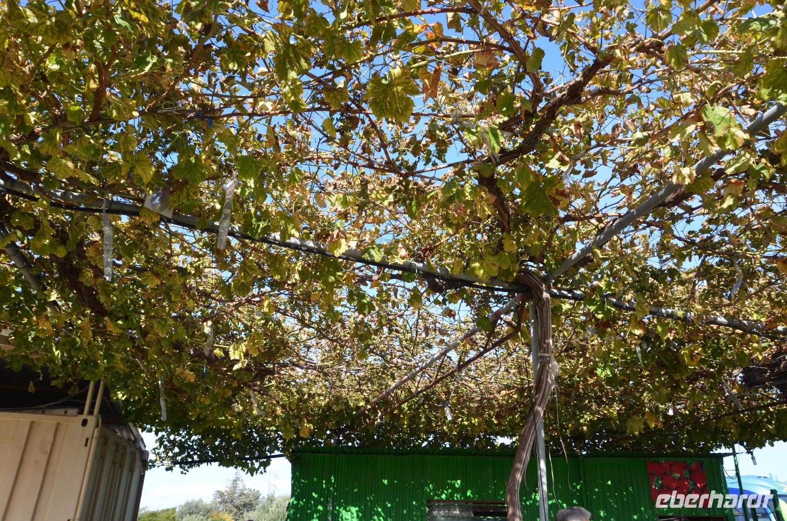 Auf der Fahrt ging es durch die zypriotischen Weinberge. Hier werden zu 80% rote Trauben angebaut, 10% Weiße und die restlichen 10% verteilen sich auf ausländische Sorten, wie Riesling und Chardonnay. Auf der Insel gibt es aufgrund der Wasserknappheit keine künstliche Bewässerung für die Reben. Die Wurzeln reichen 10 - 20 Meter in den Erdboden, um an das Wasser zu kommen.
