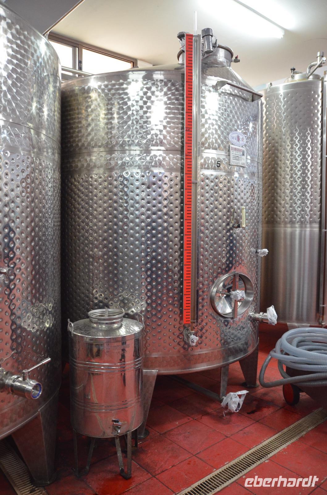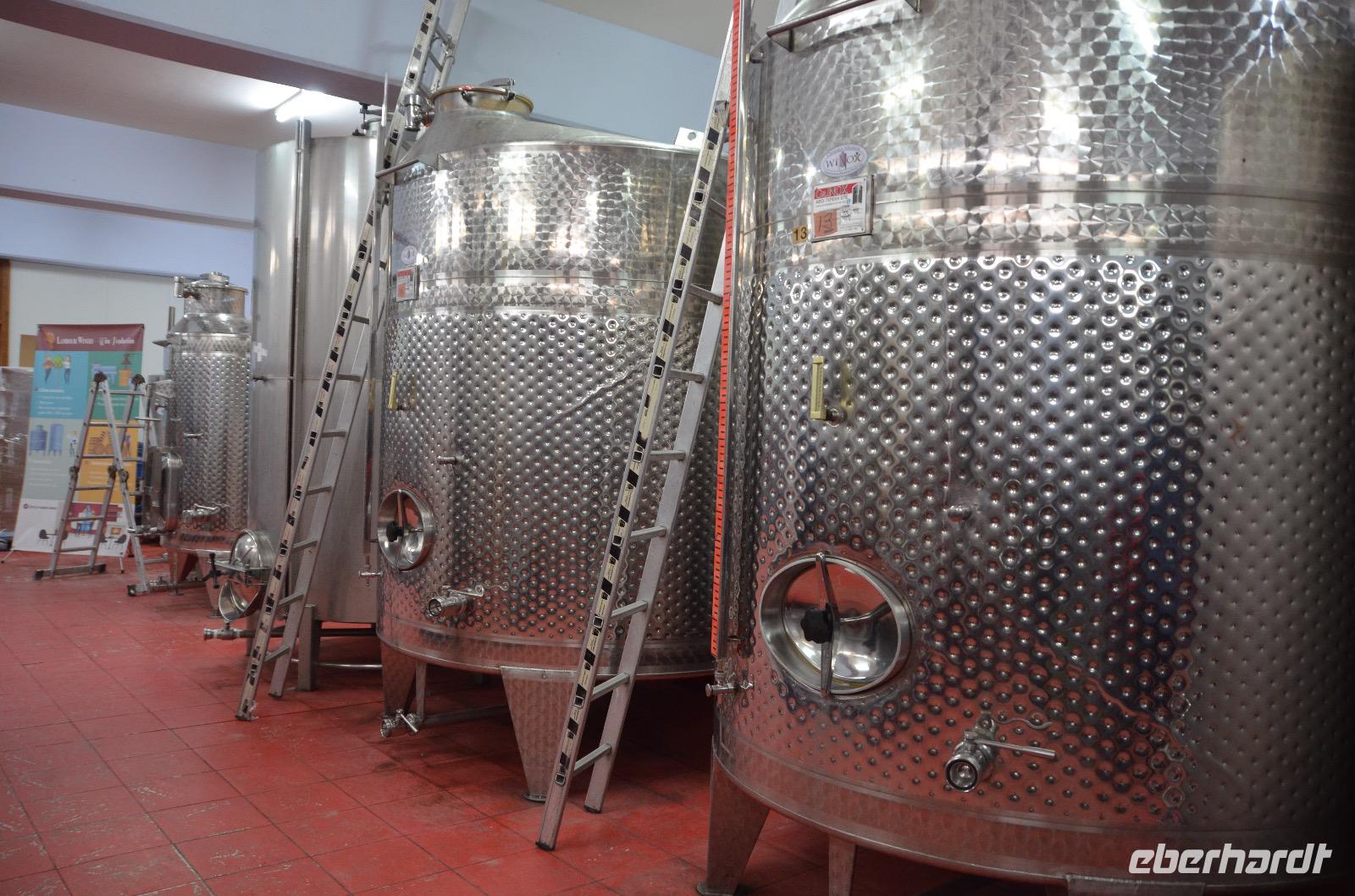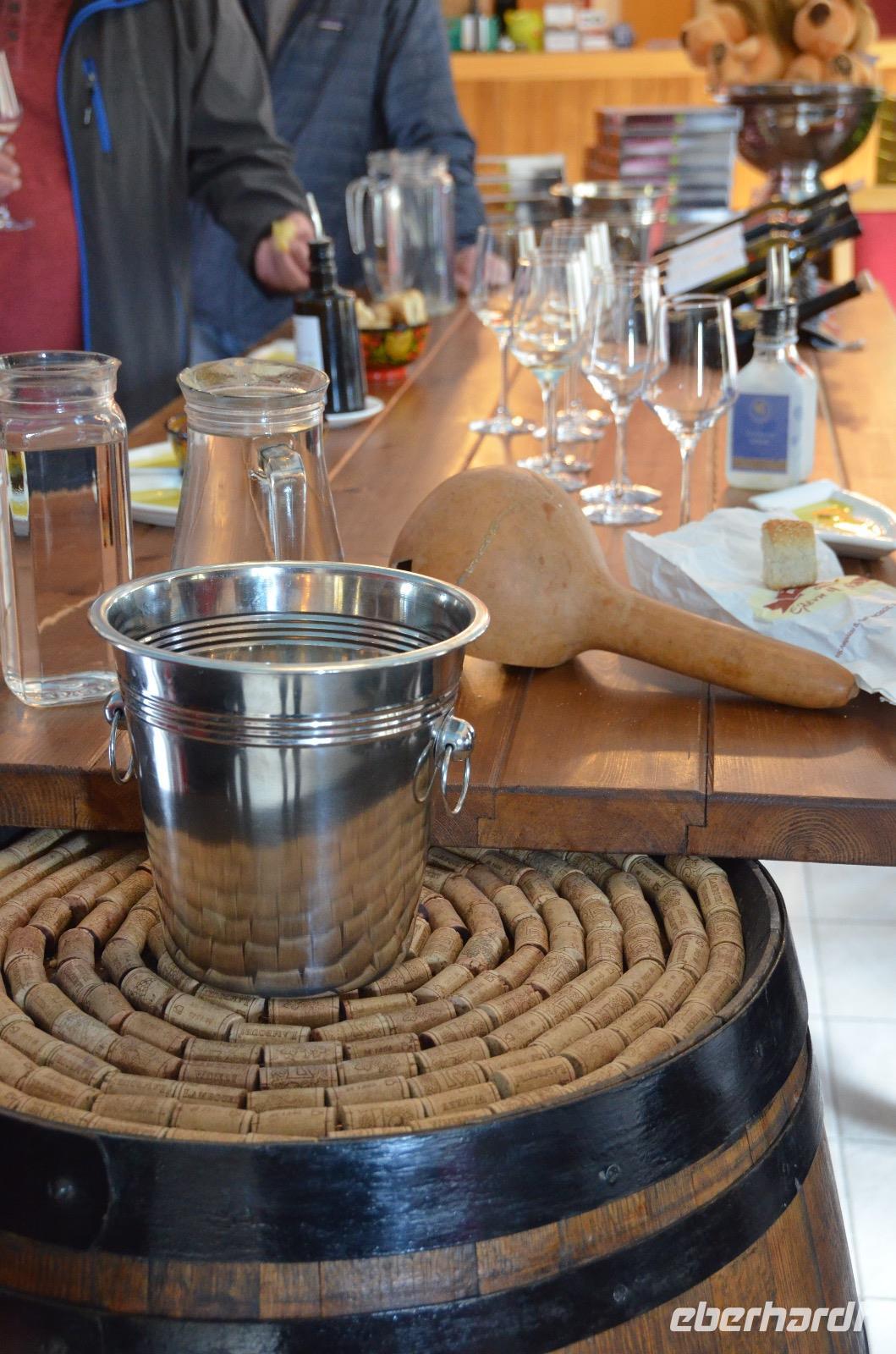 Nach wenigen Fahrminuten erreichten wir die Winzerei Lambouri. Hier wurden wir zuerst in die kalten Kellerräume geführt, wo wir die Maschinen für die Weinherstellung bestaunen konnten. Wir entdeckten bereits die herrlich geformten kleinen Flaschen, die für den Commandaria vorgesehen waren. In der oberen Etage waren wir herzlich eingeladen, um einige der Weine zu probieren. Dazu wurde uns Brot und Olivenöl serviert. Der Besitzer Roland stammt aus Deutschland und hat vor einigen Jahren das 350 Jahre alte Weingut und somit das Älteste auf Zypern, übernommen. Jedes Jahr werden hier 150.000 Flaschen Wein hergestellt. Als ersten Wein probierte die Gruppe einen trockenen Weißen mit 2%. Diesen trinkt man vor allem zu leichten Speisen wie Salat und Spaghetti. Der nächste war ein 13,5%iger Rosé, Summer Blush. Die nächsten Zwei waren Rotweine, erst der liebliche und dann der trockene. Zum Schluss bekamen wir auch den ältesten Markenwein der Welt zu probieren. Der Commandaria wird aus vollreifen Trauben gewonnen. Diese müssen 3 Wochen trocknen, dann werden sie gepresst und 5 Jahre lang in Eiche gelagert, ohne Zuckerzusatz. Der Süßwein hat 14,5% und wird auf Zypern oft als Dessert serviert.