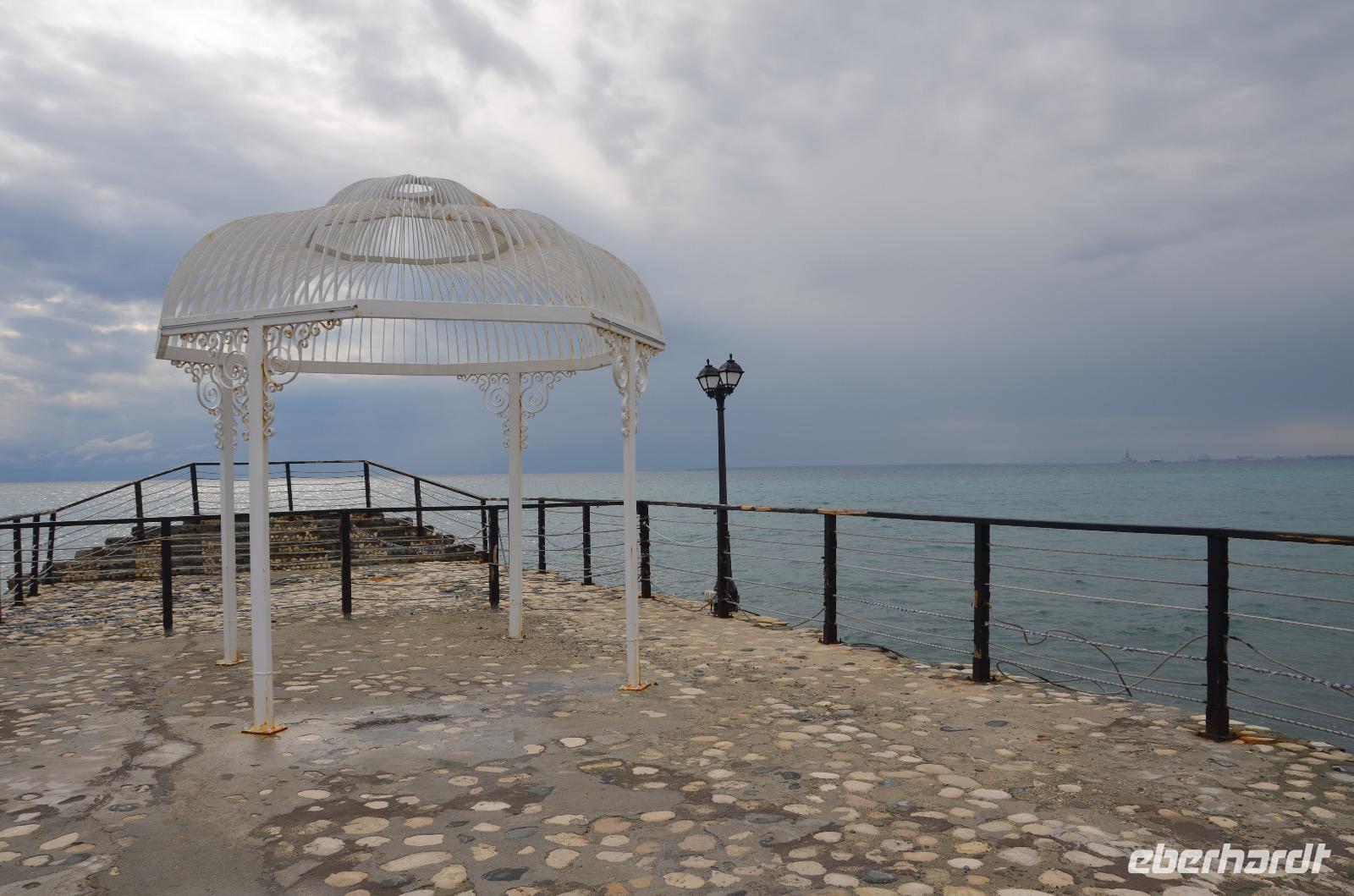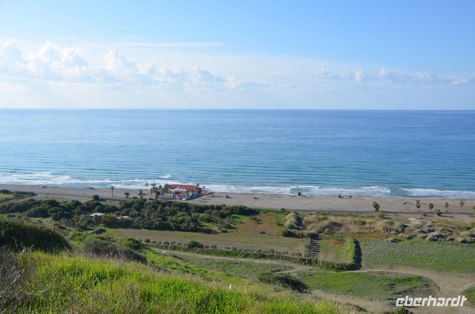 Von dem Aussichtspunkt hatten wir einen Blick auf den englischen Militärstützpunkt sowie dessen Flughafen. Zur Zeit haben die Engländer ein Recht auf 3 km ins Meer. Sie wollen es aber auf 50 km erhöhen, was vor allem mit dem Erdöl- und Erdgasvorkommen vor Zypern zu tun hat.
