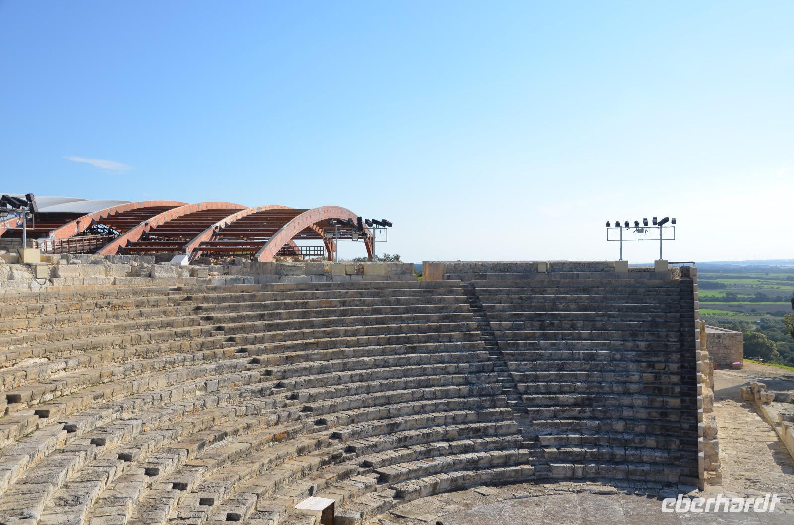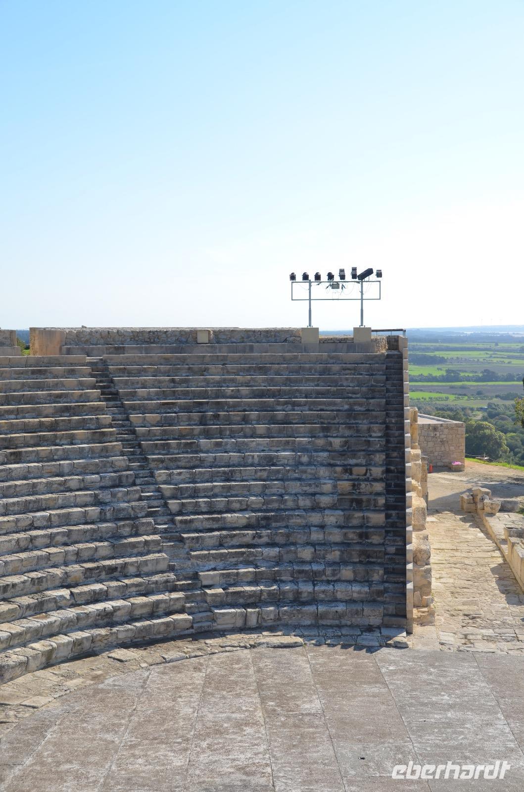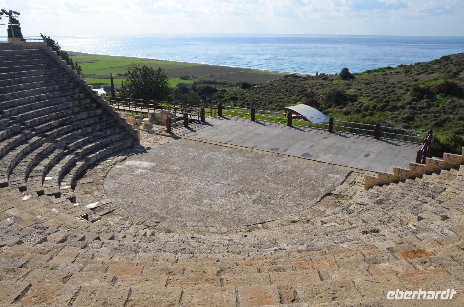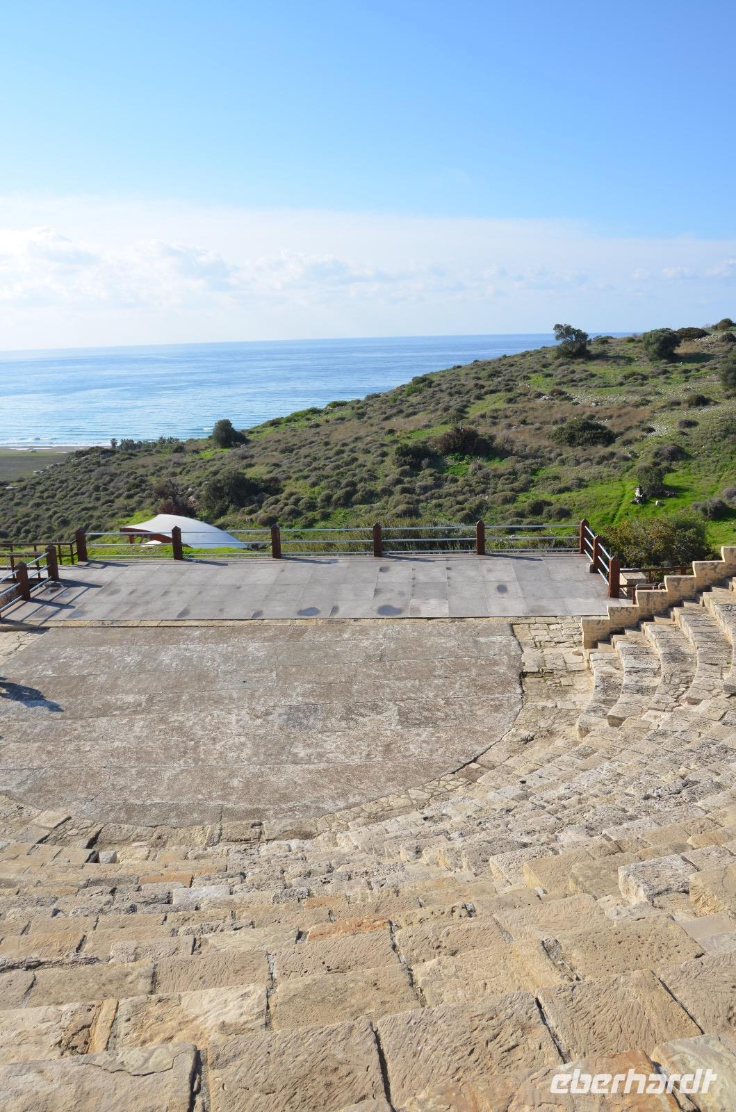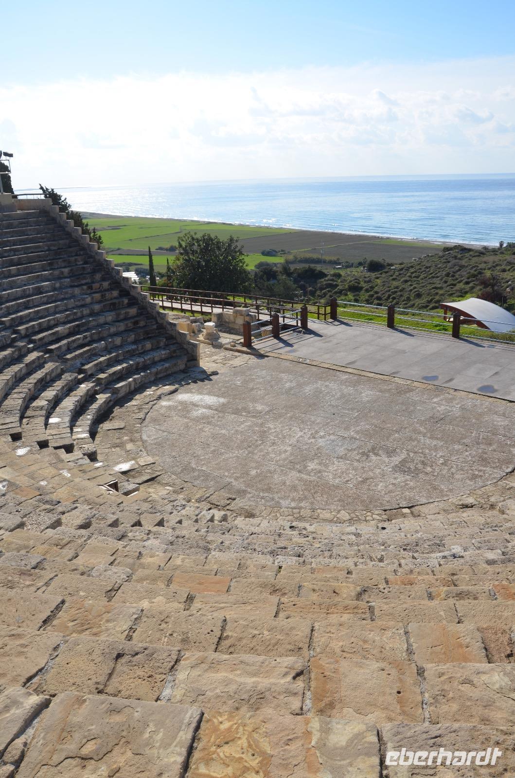 Das Highlight der Besichtigung von Kourion stellte das aus dem 2. Jahrhundert v. Chr. stammende Amphitheater dar. Es war beeindruckend groß und gut erhalten. Man hatte einen traumhaften Blick aufs Meer, was früher nicht der Ästhetik, sondern dem Schutz galt, um eventuelle Angreifer schneller zu entdecken. Das Theater hat Platz für 3560 Zuschauer. Auch das Kabuff sowie der Ausgang für die Tiere war noch erhalten. Einige ließen es sich nicht nehmen, einen Blick hinein zu werfen.