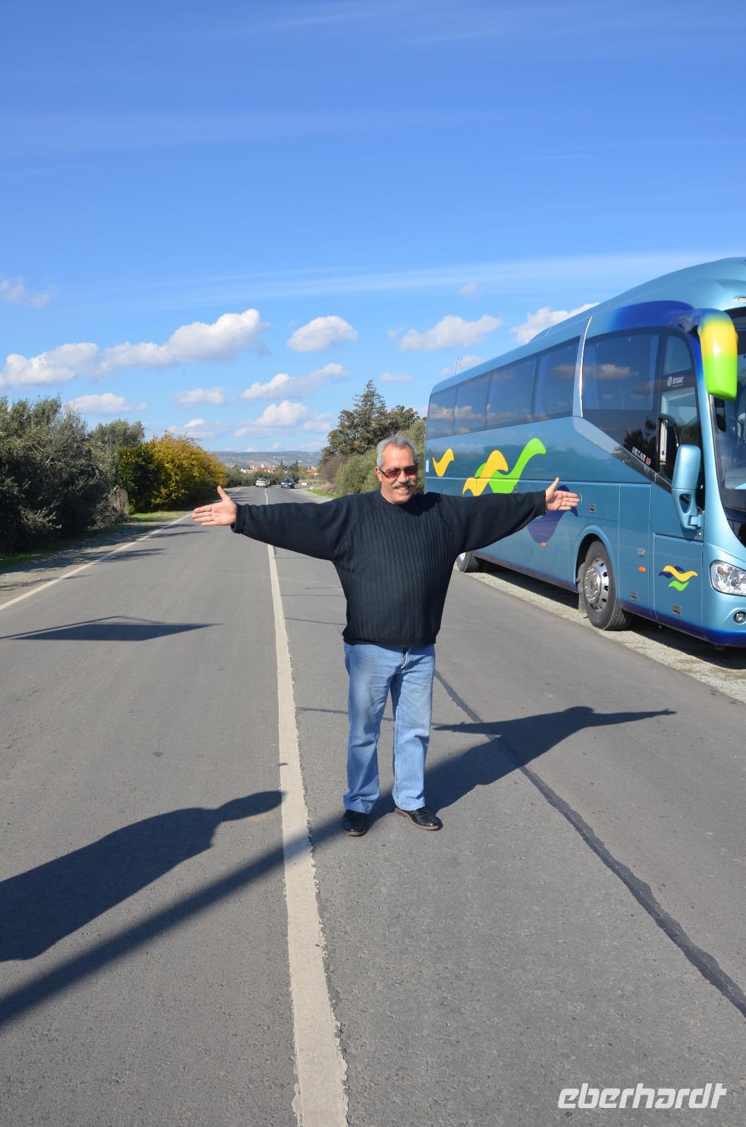 Unser Tag begann wieder früh, da es viel zu entdecken gab. Auf der Fahrt ins Bergland bekamen wir einen Minisprachkurs von Antonis: Kalimera = Guten Tag/Morgen, Kalinichta = Gute Nacht, Efcharisto = Danke, Ne = Ja, Ochi = Nein. Anschließend erzählte uns unser Reiseleiter ein paar Anekdoten aus seinem Leben, vor allem von seiner riesigen Hochzeit. Zwei Rituale in Zypern sind dabei die Mitgift in Form von Geld sowie ein Hochzeitskuchen mit Mandeln und Pistazien.